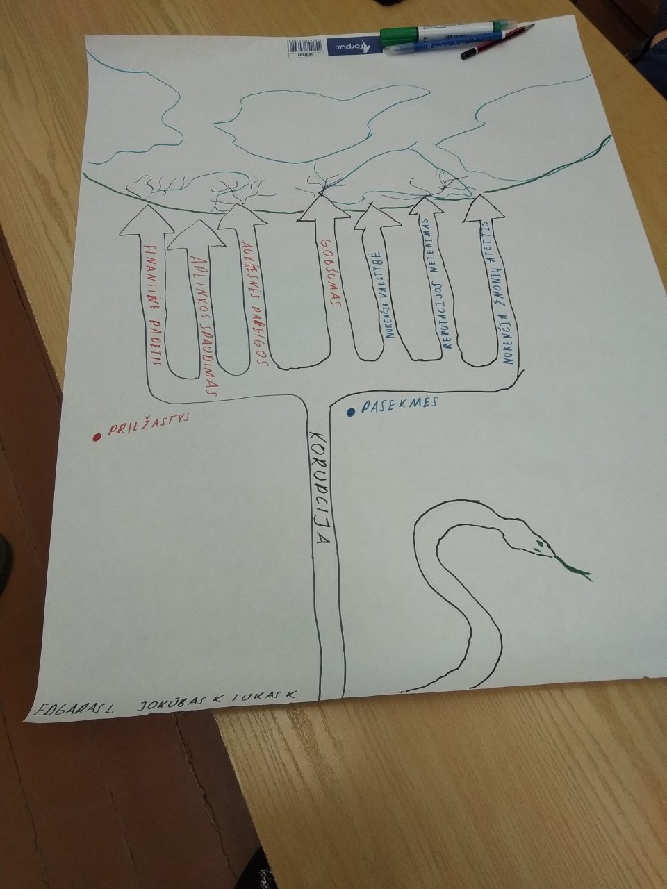 Kad įtvirtintų gautas žinias, gimnazistai ruošė plakatus.