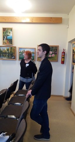 Kita jaunimo dalis patraukė į Pakruojo kultūros centrą. Direktorė Renata Budrienė jaunimą pakvietė susėsti ratu ir papasakojo apie savo kolektyvo veiklą, darbus, pasiruošimą renginiams, vykdomus projektus. Džiugu, kad puoselėjama etninė kultūra, yra susibūrusių mėgėjų kolektyvų. Diskutuota, kad, norint dirbti kultūrininko darbą, reikia būti kūrybingam, kantriam, mokėti bendrauti. Vėliau apžiūrėtos įvairios patalpos, paroda.