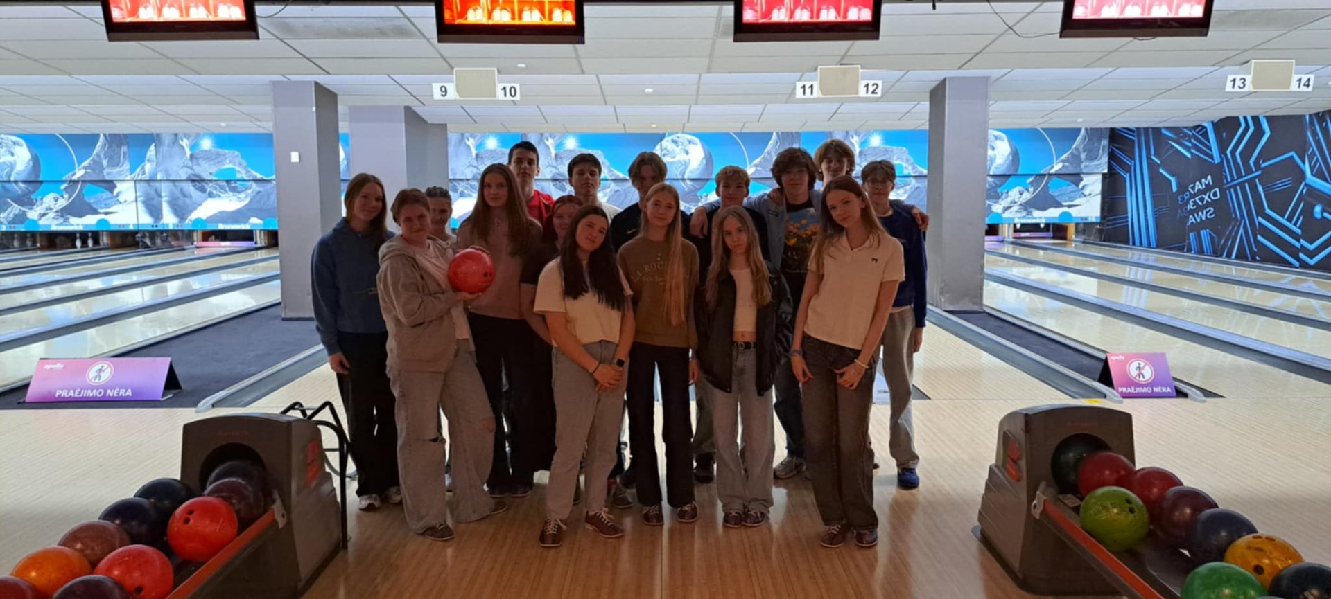 I a klasės gimnazistai – ne tik protingi, bet ir neįtikėtinai taiklūs! Už puikius I pusmečio rezultatus šie „moksliukai“ gavo ne šiaip kokį lipduką ar padėkos raštą… JIE IŠRIEDĖJO Į ŠIAULIŲ „AKROPOLĮ“! O ką ten veikė? Tik ne mankštinosi ar sprendė uždavinius – žaidė boulingą kaip tikri čempionai!