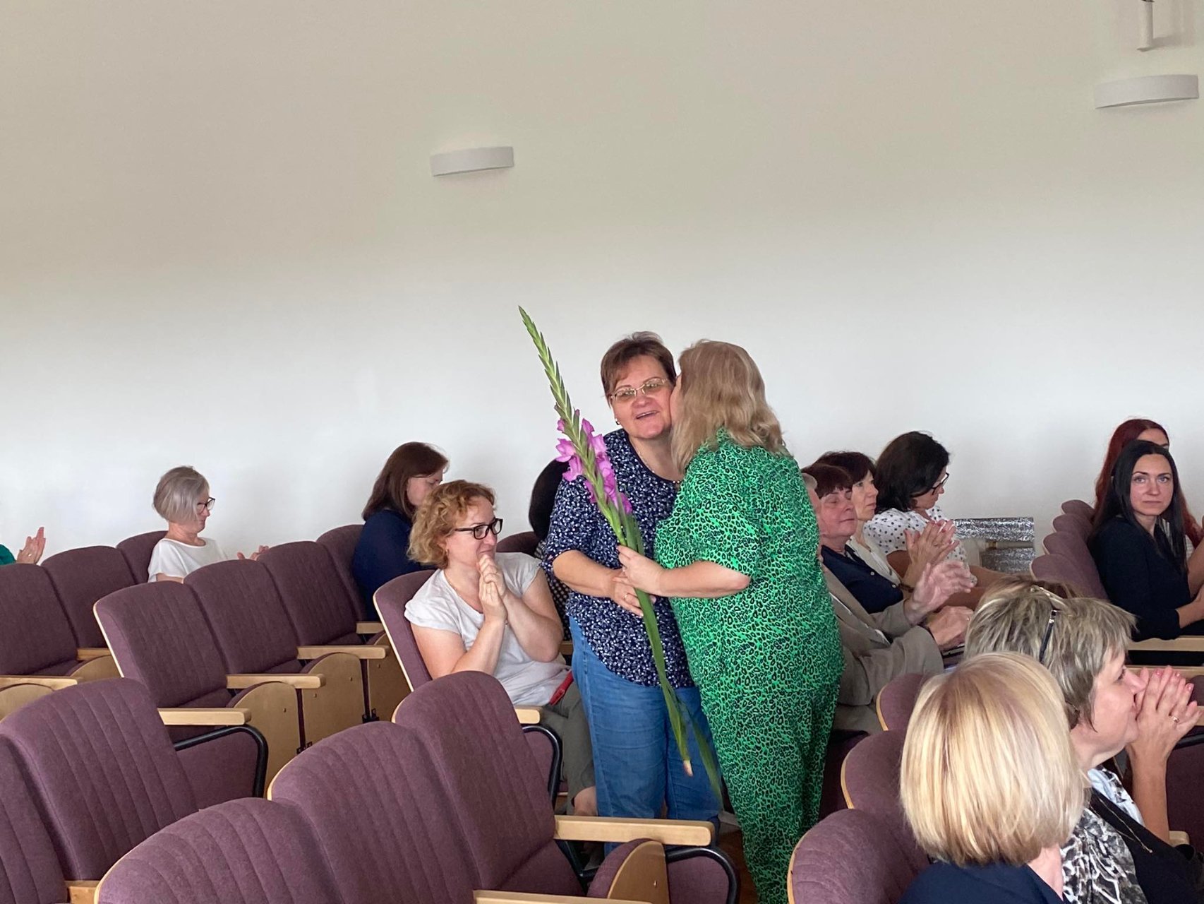 Rugpjūčio 30 dieną dar vasaros spalvų fone gimnazijos mokytojai, kupini jėgų ir įkvėpimo, pasiryžę vėl vesti į gyvenimą kitus, kartu su mokiniais augti ir džiaugtis, susirinko į mokytojų tarybos posėdį prieš naujuosius mokslo metus. Pradžioje direktoriaus pavaduotoja ugdymui Rasa Bertulienė pristatė darbotvarkę. Po to žodį tarė gimnazijos direktorė Asta Valuntienė, kuri pasidžiaugė visais sugrįžusiais į didelį būrį, viltingai nusiteikusiais, besišypsančiais, nes taip svarbu pajusti širdžių šilumą, matyti, girdėti vieniems kitus. Gimnazijos bendruomenės telkimo grupė jubiliejaus proga pasveikino fizinio ugdymo mokytoją Rimvydą Rimkų, taip pat pedagogą šiltai apkabino metodinės grupės nariai, nuoširdžiai apie jo gyvenimo kelią papasakojo kolegė, prancūzų kalbos mokytoja Inga Ušinskaitė. Be to, tęsiamos tradicijos – kardelio žiedas pražydo mokytojų Gražinos Gasiūnienės, Simona Čemoškaitės, Inesos Tamulionytės-Poškauskienės, sulaukusių jubiliejinio darbo stažo, rankose, direktorė įteikė atminimo dovanėles. Pristatyti ir pasveikinti nauji kolegos – etikos mokytoja Eglė Lebedienė ir Rokas Venckus, kuris mūsų gimnazistams atskleis filosofijos pasaulio subtilybes. Beje, Roko nebuvo, tačiau jį, kaip paprastą, nuoširdų ir kultūringą žmogų, apibūdino buvusi auklėtoja, prancūzų mokytoja Inga Ušinskaitė. Posėdis tęsėsi - direktoriaus pavaduotoja ugdymui Rasa Augustinaitienè aptarè PUPP ir egzaminų rezultatus, pateikė lyginamąją statistiką, direktoriaus pavaduotoja ugdymui Rasa Bertulienė pristatė ugdymo planą, gvildeno kitus klausimus.