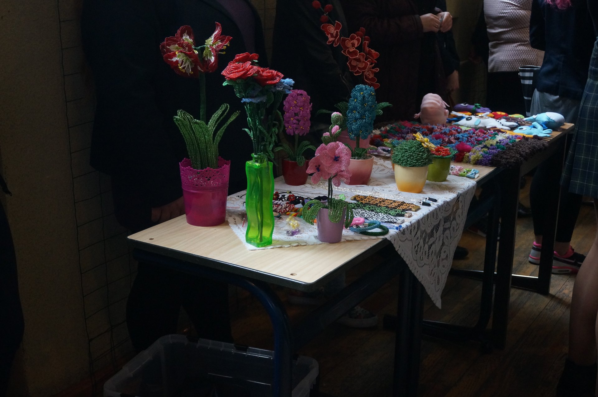 Po diskusijos vyko jaunųjų verslininkų mugė. Joje dalyvavo 8 rajono ugdymo įstaigų komandos, sukūrusios įmones ir pristačiusios savo produktus bei idėjas. Mūsų gimnazijos komanda „Verk & Velk“ (mokytojos I. Ušinskaitė ir I. Jankauskienė) pristatė nuostabius darbelius, vertus iš karoliukų, spalvingus žaisliukus, pagamintus iš veltinio, plaukų papuošalus. Jaunąsias verslininkes atlydėjo ir joms padėjo šauni palaikymo komanda. Dėkojame Žavintai Laikūnaitei, Viktorijai Matuzevičiūtei, Justinai Povilionytei ir Akvilei Šukytei už gražius darbelius.