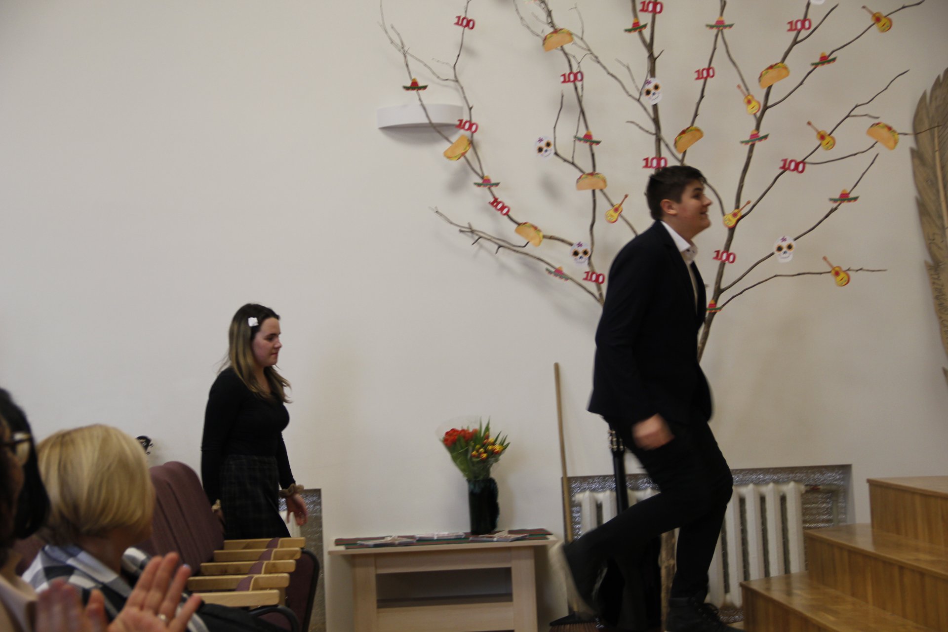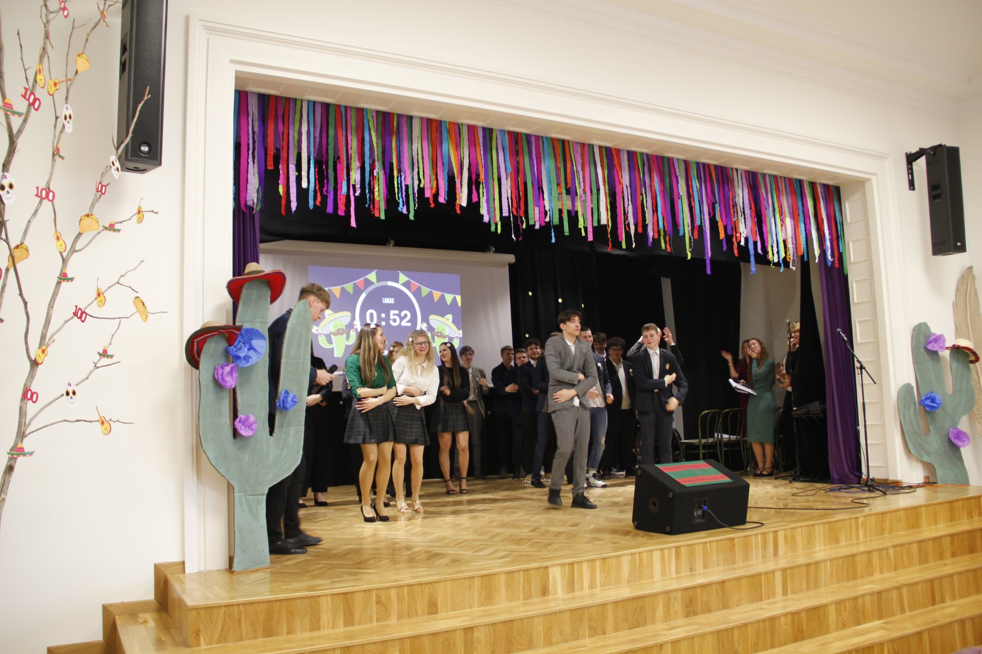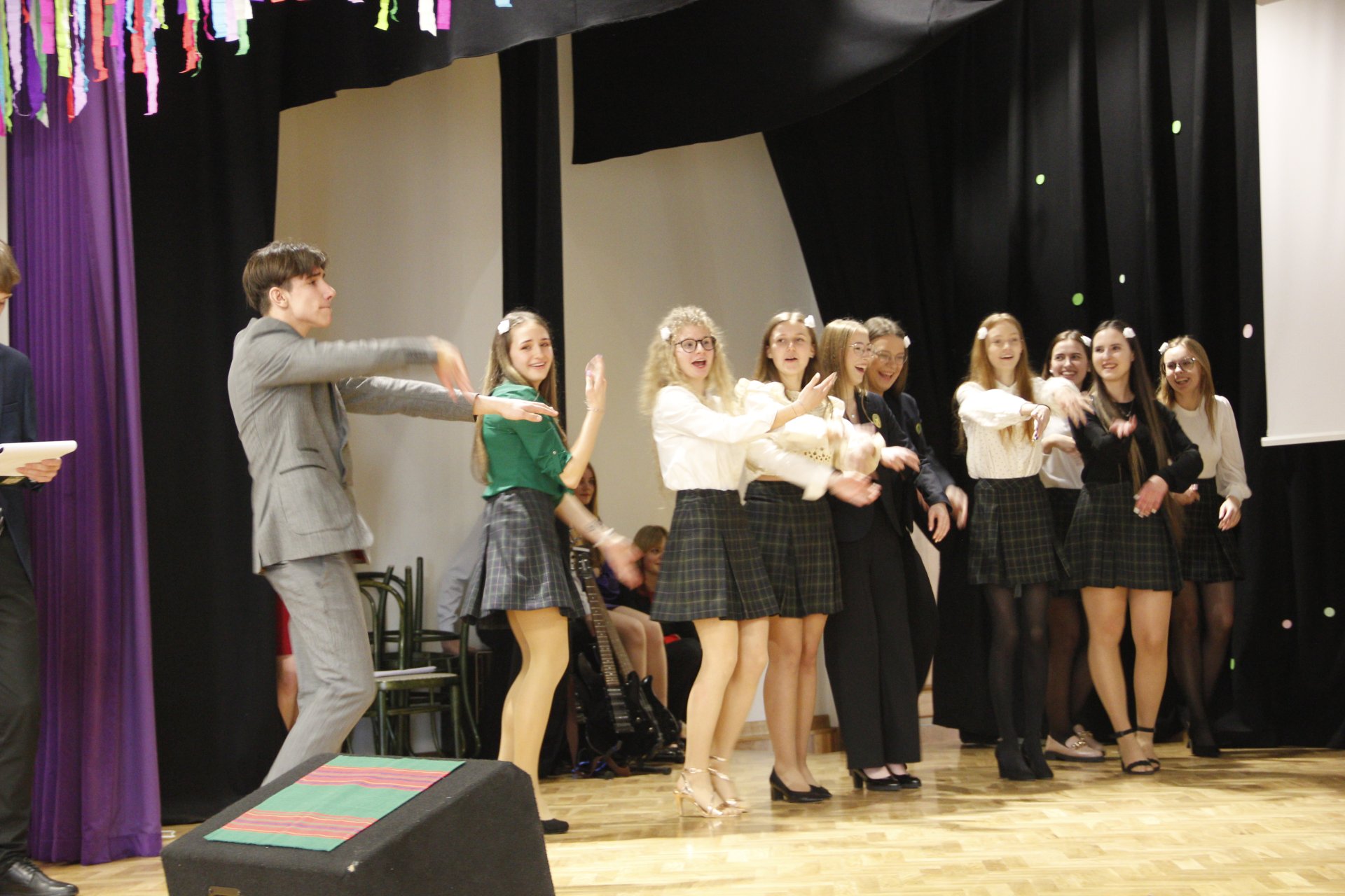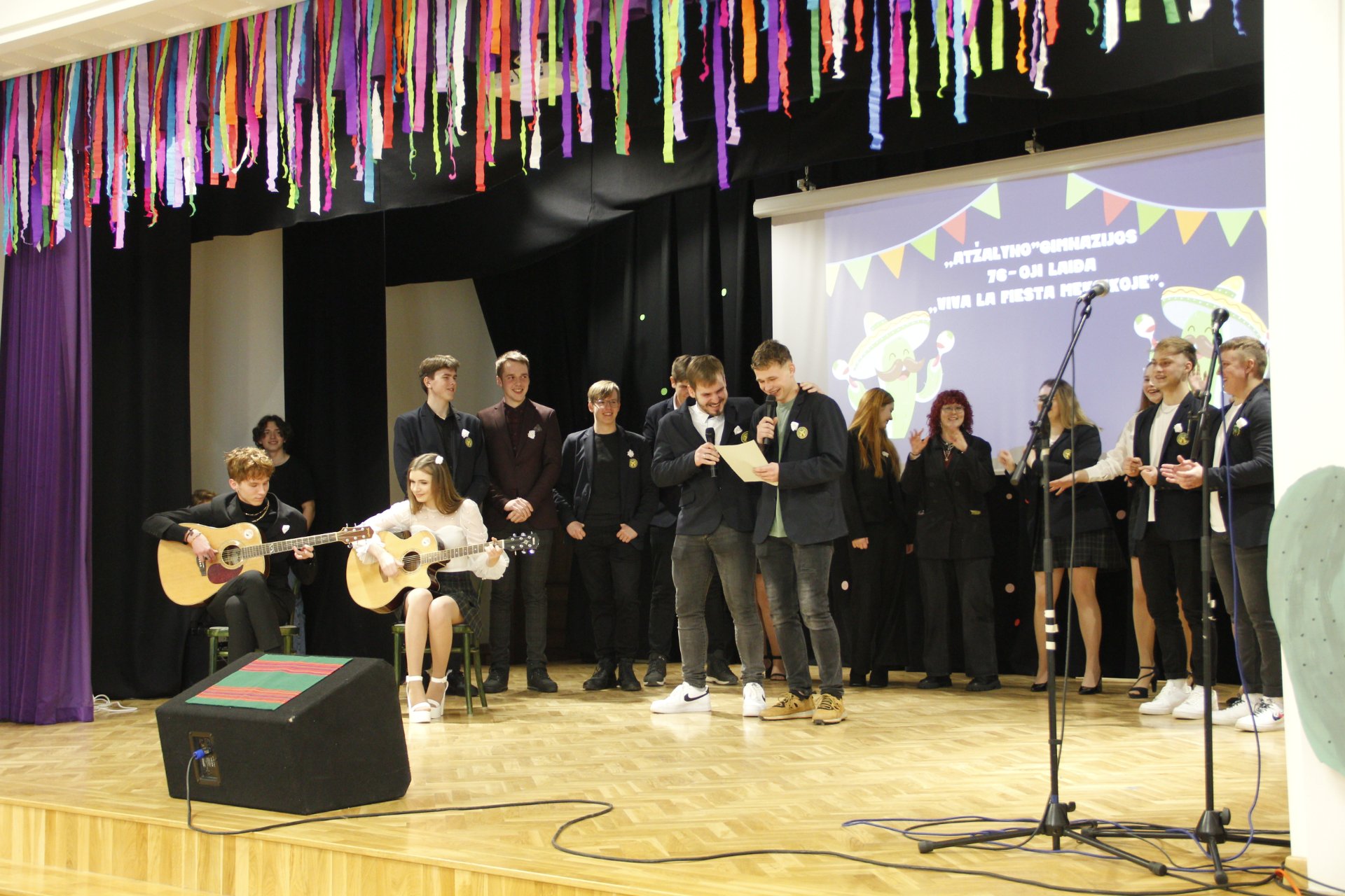 Po pamokų aidint karštiems plojimams į aktų salę žengė ketvirtokai ir jų kuratorė Inesa Tamulionytė-Poškauskienė. Po vedėjų pasveikinimo renginio pradžioje kūrinį dovanojo ukulėlių ansamblis „Fireflies“. Jautrų sveikinimo žodį tarė gimnazijos direktorė Asta Valuntienė, kuri teigė, kad nuo Šimtadienio iki egzaminų lieka labai mažai laiko, o dar labai daug reikia nuveikti. Gimnazijos vadovė teigė tikinti abiturientais, linkėjo, kad jie pirmiausia įrodytų sau, kad per ketverius metus suvokė nemažai gyvenimo tiesų, išmoko įvairių dalykų, kurių prireiks lekiant rytojaus keliais. Taip pat į ketvirtokus kreipėsi gimnazijos mokinių prezidentė Greta Gudaitė sakydama, kad Šimtadienis yra ypatingas laikas, kai prisimename praeitį ir žvelgiame į ateitį, todėl ji linkėjo gražių prisiminimų ir sėkmingos kelionės. Vėliau ketvirtokų kuratorės Inesos Tamulionytės-Poškauskienės laukė viktorina, kuri parodė, kiek gerai kuratorė pažįsta savo auklėtinius. Po gana neblogų atsakymų ji dėkojo ketvirtokų tėveliams už buvimą šalia, linkėjo dar neatsipalaiduoti, nes bus dar sunkių akimirkų, dėkojo mokytojams už kantrybę ir džiaugėsi visomis išgyventomis akimirkomis kartu su auklėtiniais, kuriems linkėjo nebijoti iššūkių, kurie ne tik užgrūdina, bet ir veda į priekį. Tada atėjo laikas pasirodyti ir patiems abiturientams. Pirmoji į sceną lipo IV c klasė. Vaikinams ir merginoms reikėjo pašokti „Macarena“. Po abiturientų pasirodymo per salę nuvilnijo grupės „Miražas“ atliekamo kūrinio garsai. Po to scenoje išvydome IV b klasę, kuriai reikėjo sukurti pasirodymą pagal grupės „Antikvariniai Kašpirovskio dantys“ dainą „Į Venesuelą“. Užduotis buvo įveikta ir jos atlikimas visiems sukėlė daug gerų emocijų. Galiausiai atėjo laikas pasirodyti ir IV a klasei. Jos laukė labai įdomi užduotis - sukurti ir padainuoti serenadą savo kuratorei, tačiau tam buvo dar viena sąlyga - kūrinį atlieka vaikinai, o merginos palaiko juos šokdamos. Toks ketvirtokų pasirodymas neliko nepastebėtas, jis sulaukė didelio palaikymo. Renginiui įsibėgėjus, į sceną lipo ukulėlių ansamblis, o po jų - IV a klasės gimnazistė Aleksandra, kuri atliko dainą pritardama gitara. Po šių pasirodymų prasidėjo savanorių užduotys. Pirmos užduoties sąlyga buvo tokia, kad iš duotų medžiagų vaikinai turi sukurti svajonių merginos modelį, o merginos - vaikino. Po modelių pristatymo žiūrovams buvo organizuota viktorina apie Meksiką. Jai pasibaigus dainą atliko grupė „Code A“. Tada trys savanorės merginos gavo „skanią“ užduotį. Joms teko ragauti organizatorių sumaišytų kokteilių ir atspėti jų sudėtį. Trečia užduotis buvo susijusi su KET klausimais, o paskutinis išbandymas pareikalavo rankų miklumo ir taiklumo – savanoriams reikėjo ant kaktuso užmesti žiedus. Sėkmingas buvo jau antras bandymas, bet visi vaikinai užmetė vienodą skaičių žiedų ir įrodė, kad laimėjo draugystė. Renginiui artėjant į pabaigą, buvo išdalyti pusatestačiai, kurie dar ilgai primins Šimtadienio šventę. Atėjo laikas žodį tarti ir patiems abiturientams. Nuoširdžiai padėkota „Atžalyno“ gimnazijos direktorei Astai Valuntienei, direktoriaus pavaduotojoms ugdymui Rasai Augustinaitienei ir Rasai Bertulienei už vadovavimą ir paramą, kuri leidžia augti bei tobulėti, choreografijos mokytojai, trečiokų kuratorei Audronei Geležinytei-Šniukienei už kūrybingumą, profesionalumą, nepakartojamą renginį, kuratorei Inesai Tamulionytei-Poškauskienei už palaikymą, dėmesį, meilę, tėveliams ir mokytojams už pastangas, pasiaukojimą, įkvėpimą. Džiaugiamės turiningu renginiu, kuriame skambėjo muzikos garsai, todėl nepaprastai dėkingi ir muzikos mokytojai Vaivai Klupšienei. Šventę baigė grupė „Miražas“, kuri atliko dainą „Dabar geriausi mūsų vakarai“. Manau, kad šis kūrinys buvo pasirinkta ne veltui, tai tarsi priminimas abiturientams ir visiems, kad turime mėgautis viskuo tol, kol galime.