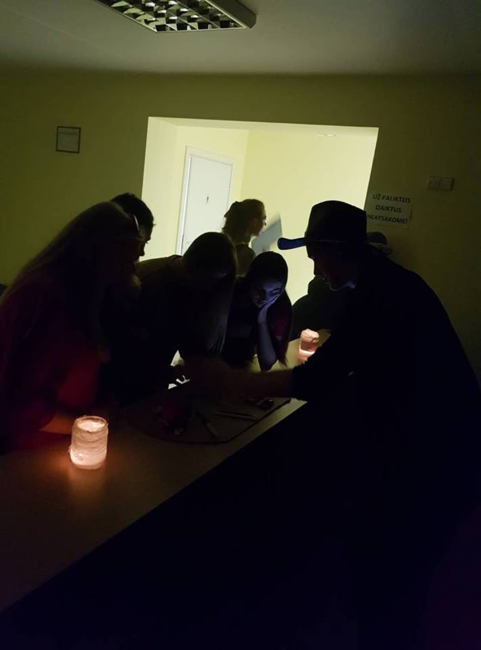 Spalio 19-ąją gimnazijoje vyko Šiurpnaktis (Helovinas), kurį organizavo kandidatė į mokinių prezidentus Kamilė Augėnaitė su savo suburta komanda. Vakare gimnazistai į mokyklą atėjo pasipuošę: kai kurie paisė aprangos kodo juoda - raudona, kiti vilkėjo šiurpius kostiumus, veidą slėpė po kauke. Renginio organizatoriai buvo sugalvoję įdomios veiklos: vyko geriausio kostiumo rinkimai, jaunimas žiūrėjo siaubo filmą, įvairūs užsiėmimai laukė žaidimų kambaryje, o tie, kurie norėjo parungtyniauti ir laimėti prizų, galėjo dalyvauti orientacinėse varžybose. Paskui visi smagiai šoko ir šnekučiavosi diskotekoje. Bilietas į renginį – trys saldainiai, kuriuos vedėjai padovanojo budėjusiems mokytojams, norėdami atsidėkoti už jų ištvermę. Helovinas gimnazijoje vyko po ilgos pertraukos, tad tikimasi, kad į tokią šventę gimnazistai susirinks kasmet. Visada smagu ieškoti ir rasti tokios veiklos, kuri stiprintų mokinių bendruomeniškumą.