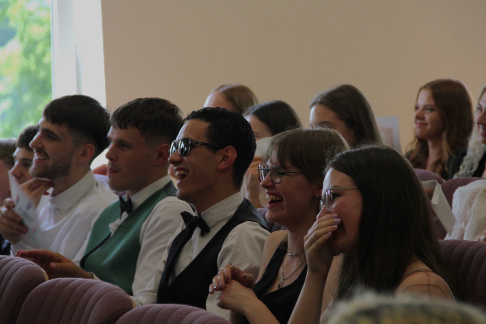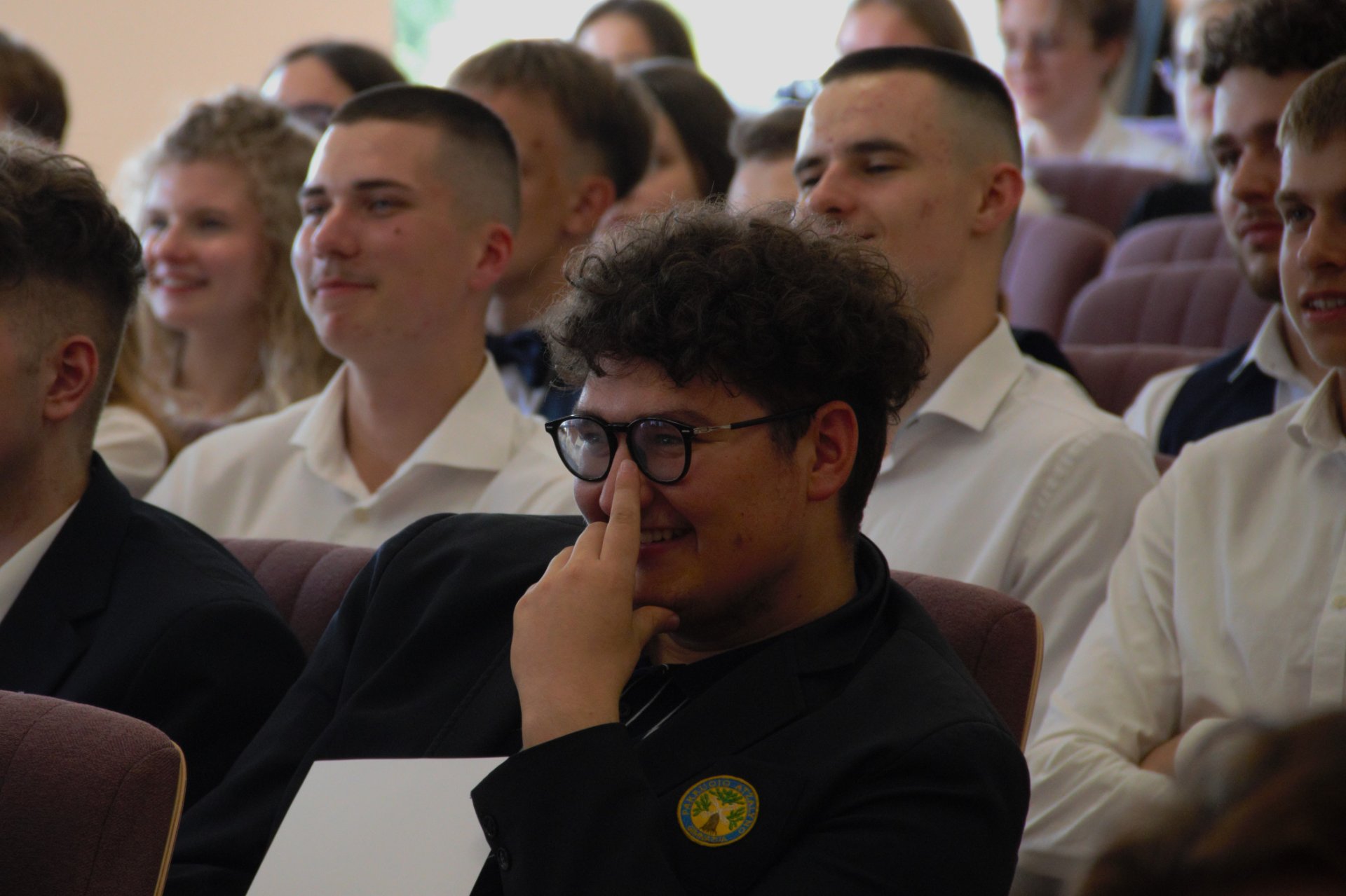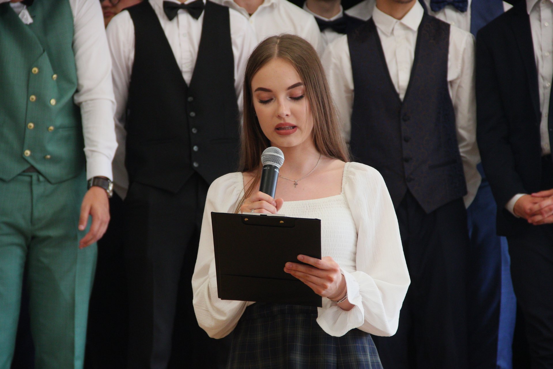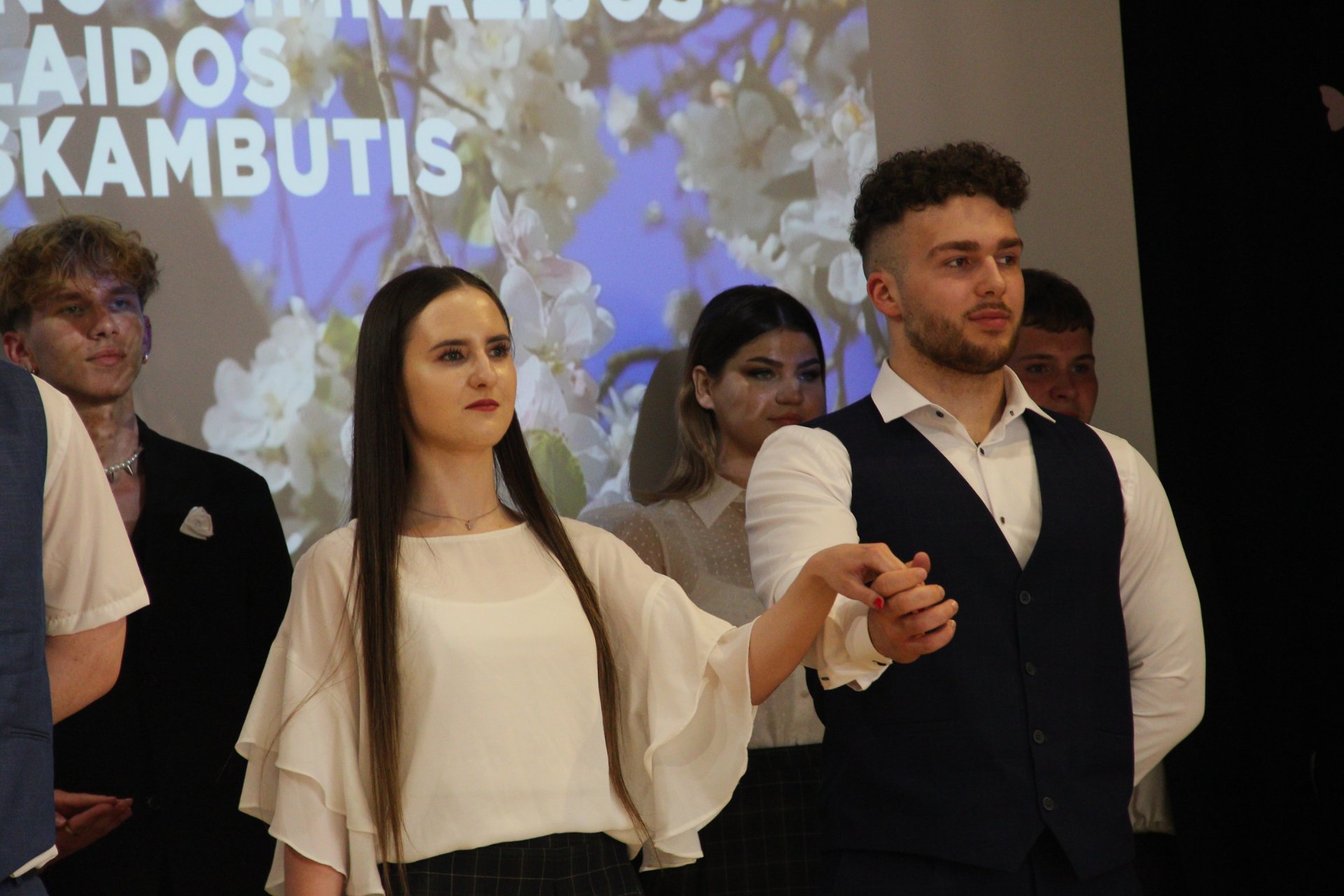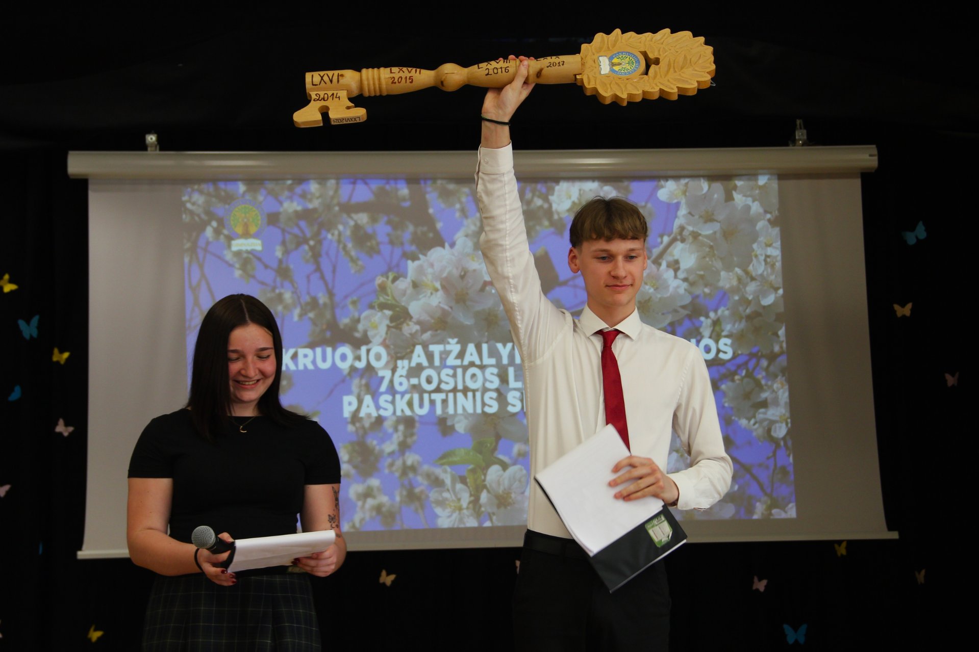 Renginyje šios emocijos tik dar kartą sustiprėjo, kai ketvirtokams kūrinius atliko grupės „Code A“, „Miražas“, Juozo Pakalnio menų mokyklos vaikinų ansamblis ir merginų tercetas. Direktorė Asta Valuntienė nuoširdžiai didžiavosi abiturientais, linkėjo jiems drąsiai priimti sprendimus, sėkmingai laikyti brandos ir gyvenimo egzaminus. Jautriai sveikino ir pirmosios 76-osios laidos abiturientų mokytojos bei auklėtojos. Sujaudino abituriento Vincento Leko atliktas kūrinys fortepijonu ir ketvirtokų valso šokis. Direktoriaus pavaduotoja ugdymui Rasa Augustinaitienė padėkojo abiturientams už aktyvią veiklą, puikius olimpiadų, konkursų rezultatus ir direktorė įteikė padėkos raštus. Trečiokų kurtas vaizdo įrašas priminė abiturientams jų svarbias, gražias ir juokingas gyvenimo akimirkas, kurios ilgai dar išliks jų širdyse. Abiturientai taip pat tarė savo žodį, padėkojo visiems mokyklos darbuotojams, mokytojams, kuratorei, tėveliams ir perdavė raktą trečiokams. Mielieji 76-osios laidos abiturientai, Jūs šioje gimnazijoje palikote pėdsaką, kurio mes nepamiršime. Gaila, bet Paskutinis skambutis Jus pakvietė į platųjį pasaulį, tegul jame bus įdomu ir smagu.
