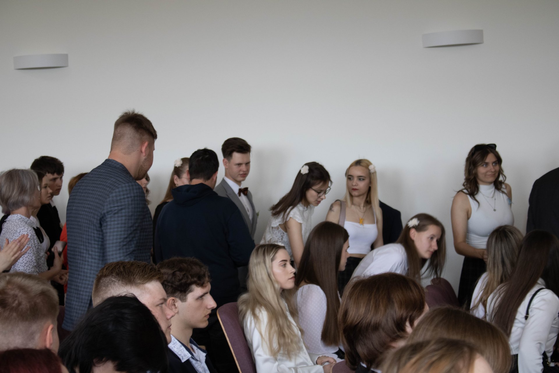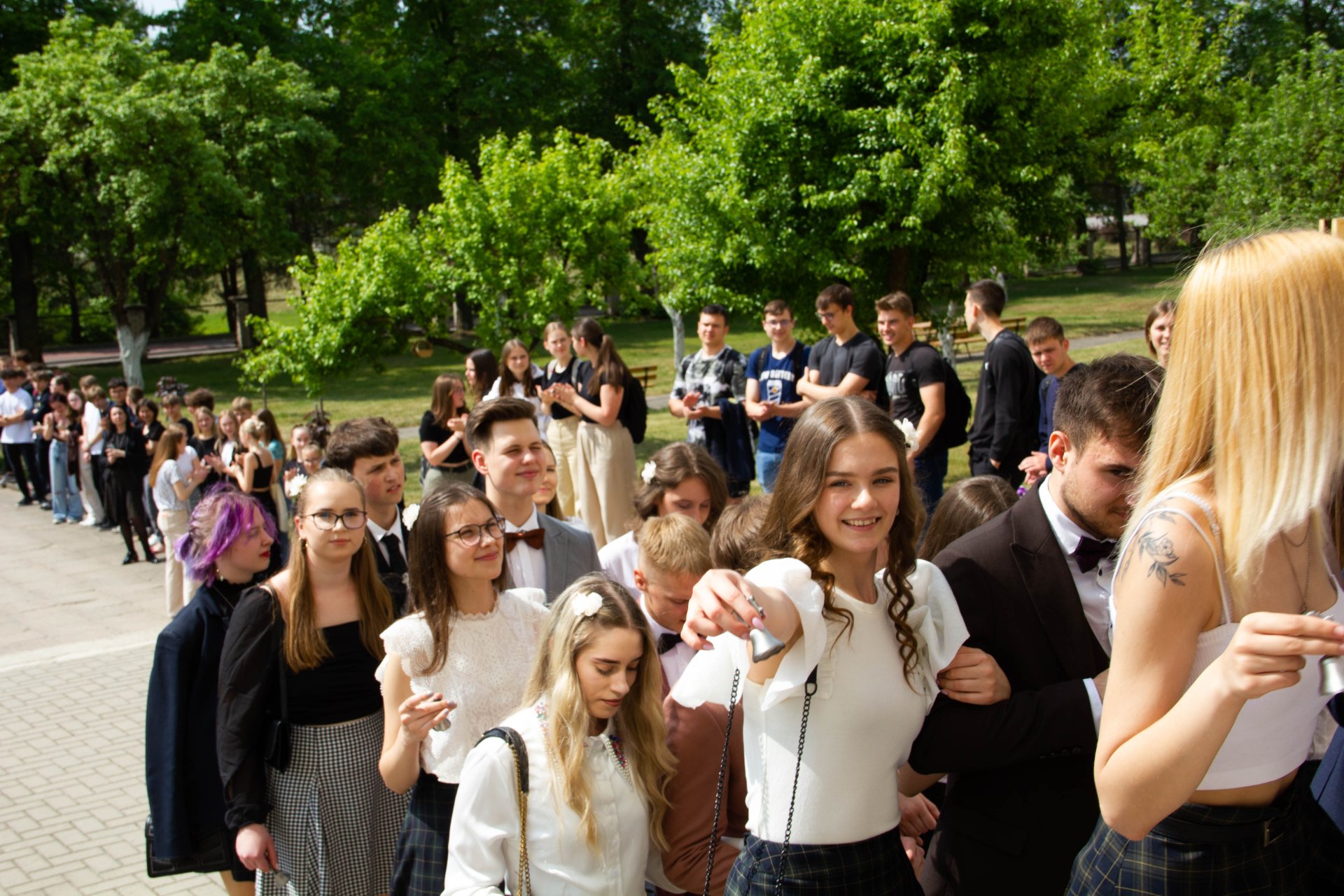 75 gimnazijos laidai nuskambėjo Paskutinis skambutis Aktų salėje Paskutinio skambučio šventė buvo jautri ir nuoširdi. Renginį tradiciškai organizavo trečiokai gimnazistai. Abiturientams širdis graudino mokinių muzikiniai pasirodymai. Kūrinius atliko vokalinis tercetas (Evelina, Gabrielė ir Jokūbas), Martyna ir grupė „Antiq“, dvi skambias dainas dovanojo vaikinų ansamblis, taip pat ukulėlių vokalinis ansamblis „Fireflies“, girdėjome Evelinos atliekamą kūrinį „Smuiko stygos“, o jai smuiku pritarė abiturientas Jokūbas, ketvirtokai žavingai sukosi valso sūkury. Trečiokas Vincentas skaitė savo kūrybos eilėraštį ir kvietė neliūdėti, juk pavasaris, apie jaunystės šėlsmą ketvirtokų gyvenime buvo ir trečiokų sukurtas filmukas. Padrąsinantys ir sugraudinantys, viltingi ir jautrūs žodžiai skambėjo iš gimnazijos direktorės Astos Valuntienės, buvusio direktoriaus Kęstučio Razumo, direktoriaus pavaduotojos ugdymui Rasos Augustinaitienės (beje, patiems aktyviausiems ji įteikė padėkos raštus), mokinių prezidentės Gretos Gudaitės, abiturientų pirmųjų mokytojų ir buvusių auklėtojų lūpų, taip pat padėkos ir atsisveikinimo žodį tarė ir patys abiturientai. Tylos minute prisimintas ir pagerbtas buvusio auklėtojo, mokytojo Juozo Vėdaro atminimas. Be to, šventėje dalyvavo ir sporto centro direktorė Aušra Dvelienė, kuri tarė sveikinimo žodį ir įteikė padėkos raštus geriausių sporto rezultatų pasiekusiems abiturientams.