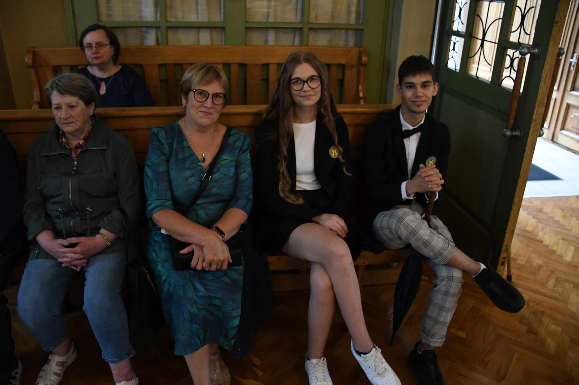 Po šv. Mišių gražus abiturientų būrys pasuko gimnazijos link, kur vyko iškilminga brandos atestatų įteikimo šventė. Sveikinimo žodį tarė gimnazijos direktorė Asta Valuntienė. Vadovė pasidžiaugė brandžiais abiturientais, pasiruošusiais savarankiško gyvenimo kelionei, dėkojo mokytojams, auklėtojoms, tėveliams. Direktorė pasveikino abiturientes Agnę Milaknytę (IV a kl.), Gerdą Bertulytę (IV b kl.) ir  Gabiją Grinaitę (IV b kl.), kurios už lietuvių kalbos ir literatūros VBE gavo 100-ukus. Renginyje dalyvavo Pakruojo rajono savivaldybės meras Saulius Margis, Pakruojo švietimo skyriaus vedėja Irena Mažulienė, Seimo narys Antanas Matulas, Pakruojo rajono savivaldybės tarybos narė, Seimo nario Antano Matulo padėjėja Erika Kižienė, Pakruojo seniūnas Svajūnas Miknevičius, gimnazijos mokinių prezidentė Greta Gudaitė. Abiturientams linkėta nebijoti iššūkių, tikėti savimi, baigus studijas grįžti į gimtąjį kraštą ir gerais darbais jį garsinti. Seimo narys Antanas Matulas kiekvienam abiturientui dovanojo po Lietuvos Respublikos Konstitucijos knygelę.