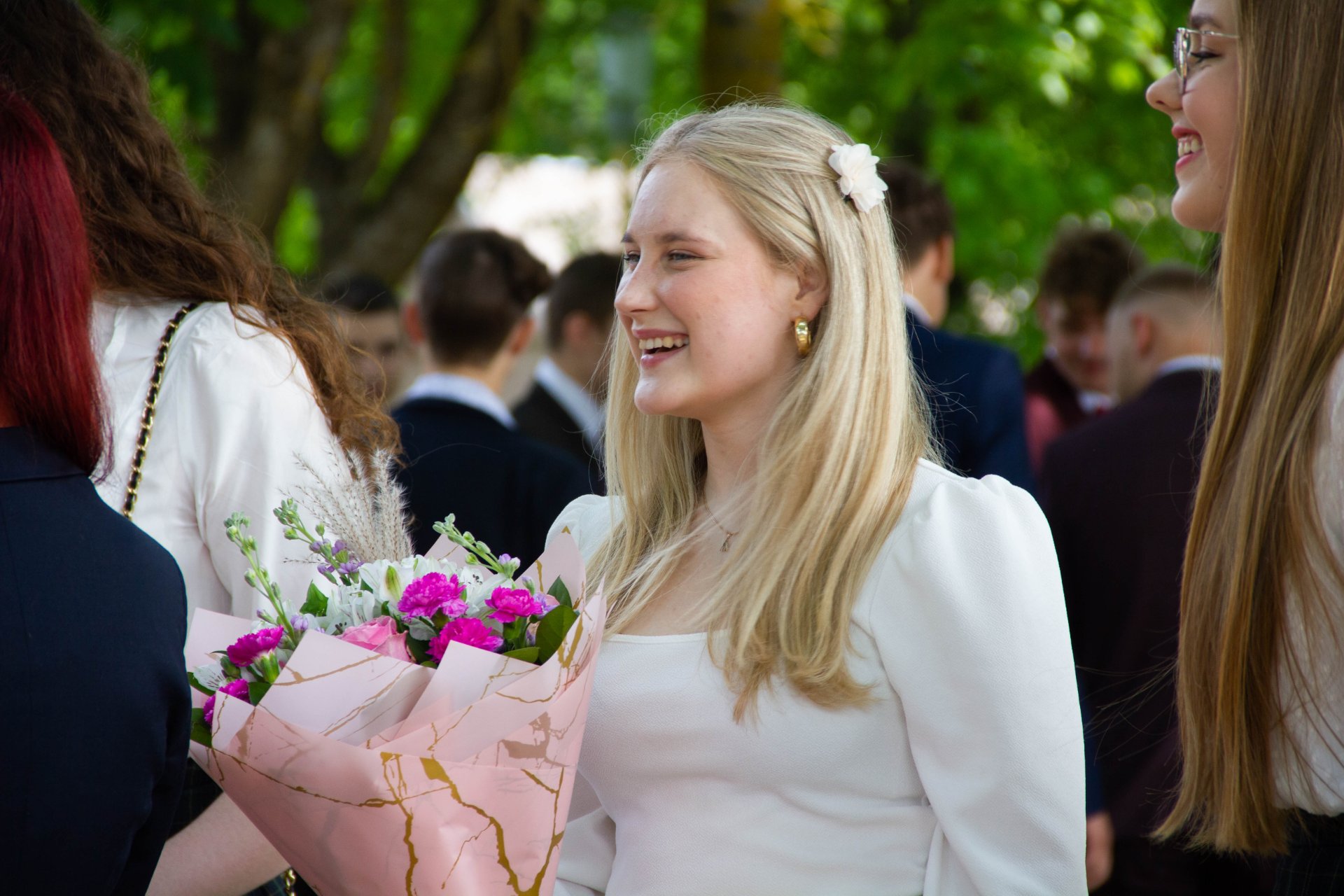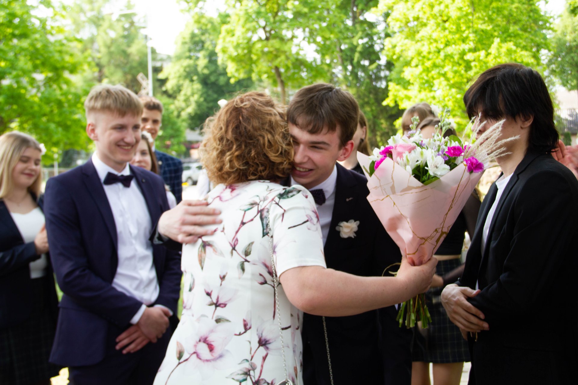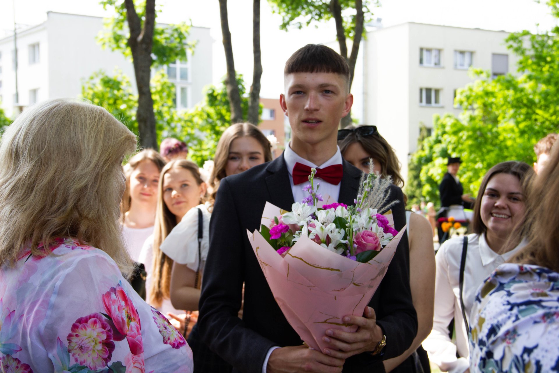 75 gimnazijos laidai nuskambėjo Paskutinis skambutis Aktų salėje Paskutinio skambučio šventė buvo jautri ir nuoširdi. Renginį tradiciškai organizavo trečiokai gimnazistai. Abiturientams širdis graudino mokinių muzikiniai pasirodymai. Kūrinius atliko vokalinis tercetas (Evelina, Gabrielė ir Jokūbas), Martyna ir grupė „Antiq“, dvi skambias dainas dovanojo vaikinų ansamblis, taip pat ukulėlių vokalinis ansamblis „Fireflies“, girdėjome Evelinos atliekamą kūrinį „Smuiko stygos“, o jai smuiku pritarė abiturientas Jokūbas, ketvirtokai žavingai sukosi valso sūkury. Trečiokas Vincentas skaitė savo kūrybos eilėraštį ir kvietė neliūdėti, juk pavasaris, apie jaunystės šėlsmą ketvirtokų gyvenime buvo ir trečiokų sukurtas filmukas. Padrąsinantys ir sugraudinantys, viltingi ir jautrūs žodžiai skambėjo iš gimnazijos direktorės Astos Valuntienės, buvusio direktoriaus Kęstučio Razumo, direktoriaus pavaduotojos ugdymui Rasos Augustinaitienės (beje, patiems aktyviausiems ji įteikė padėkos raštus), mokinių prezidentės Gretos Gudaitės, abiturientų pirmųjų mokytojų ir buvusių auklėtojų lūpų, taip pat padėkos ir atsisveikinimo žodį tarė ir patys abiturientai. Tylos minute prisimintas ir pagerbtas buvusio auklėtojo, mokytojo Juozo Vėdaro atminimas. Be to, šventėje dalyvavo ir sporto centro direktorė Aušra Dvelienė, kuri tarė sveikinimo žodį ir įteikė padėkos raštus geriausių sporto rezultatų pasiekusiems abiturientams.