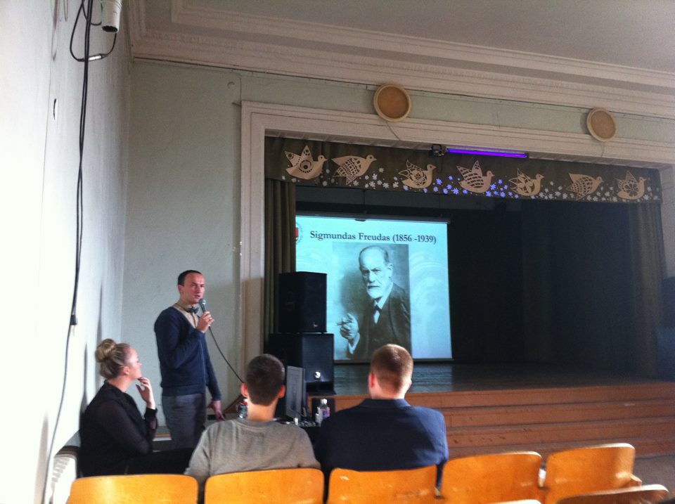 Lapkričio 10 d. Pakruojo „Atžalyno“ gimnazijos abiturientai turėjo galimybę dalyvauti netradicinėje lietuvių kalbos ir literatūros pamokoje, kuri vyko aktų salėje. Atvykęs VU KHF dėstytojas, Kauno jėzuitų gimnazijos lietuvių kalbos mokytojas metodininkas Mindaugas Grigaitis skaitė paskaitą ,,Psichoanalitinis žvilgsnis į Vinco Mykolaičio – Putino romaną „Altorių šešėly“. Lektorius, remdamasis S. Freudo ir K. G. Jungo teorijomis, analizavo Liudo Vasario charakterio raidą ir gyvenimo kelią, nurodė kryptį, kaip psichologine analize grįsta romano interpretacija gali būti panaudota kuriant egzamino rašinį.
