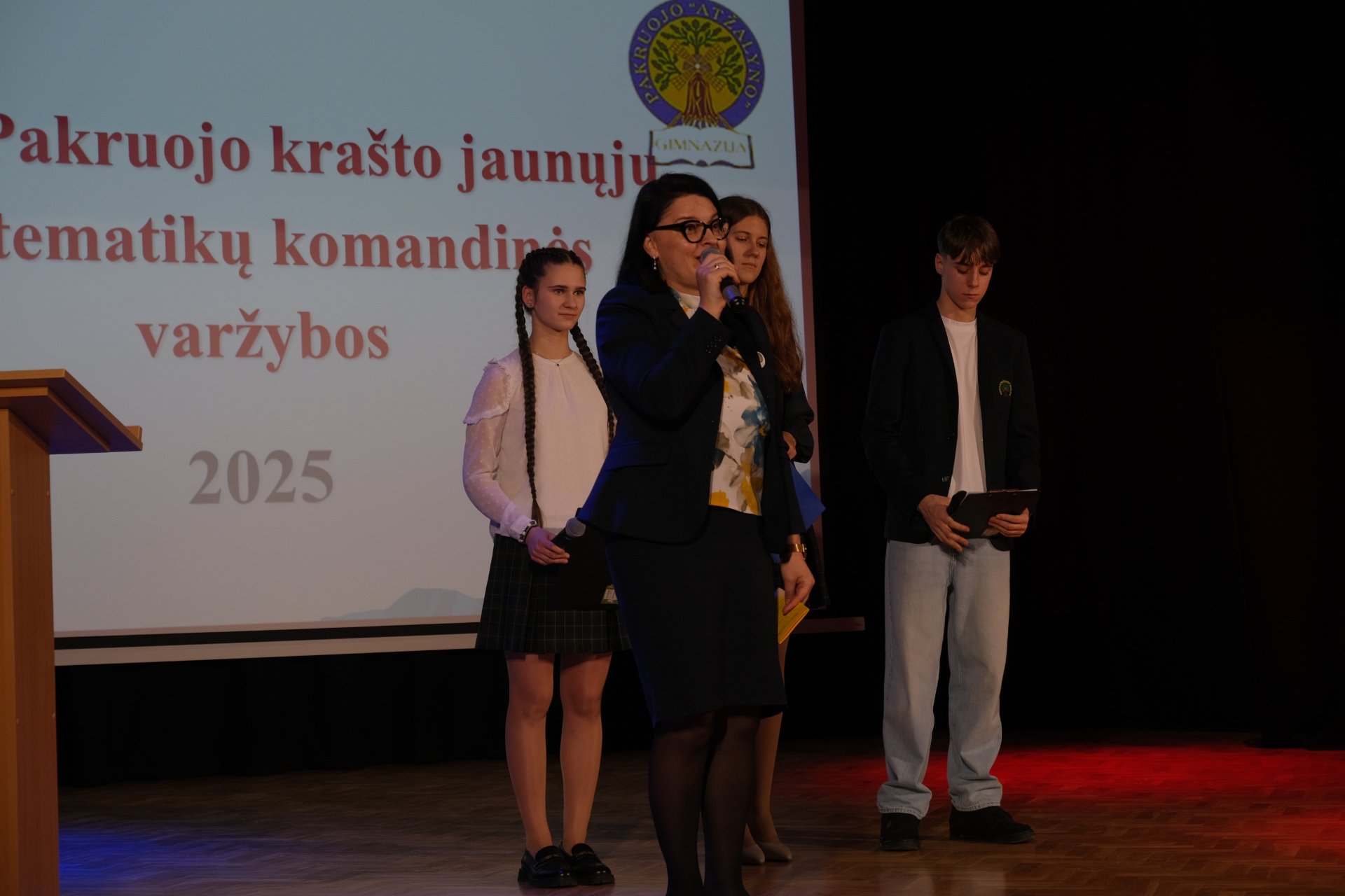 Kovo 27-ąją įvyko laukiamiausias ir didžiausias savaitės renginys MADI 2025. Jo pagrindinė dalis – XXIII Pakruojo krašto jaunųjų matematikų komandinės varžybos, kuriose susirungė 23 komandos iš Panevėžio Juozo Balčikonio, Utenos Adolfo Šapokos, Biržų „Saulės“, Vilniaus jėzuitų, Panevėžio Kazimiero Paltaroko, Pasvalio Petro Vileišio, Joniškio ,,Aušros“, Anykščių Jono Biliūno, Klaipėdos ,,Ąžuolyno“, Alytaus šv. Benedikto, Jotvingių, Adolfo Ramanausko-Vanago, Šiaulių Stasio Šalkauskio ir Pakruojo „Atžalyno“ gimnazijų. Užduotis varžyboms parengė ir komandų darbų vertinimo komisijoms vadovavo Vilniaus universiteto MIF Matematikos instituto direktorius prof. dr. D. Šiaučiūnas ir doc. dr. A. Apynis. Komandas sveikino gimnazijos direktorė Asta Valuntienė. Sėkmės linkėjo Pakruojo švietimo skyriaus vedėja Irena Mažulienė bei Pakruojo suaugusiųjų ir jaunimo švietimo centro direktorė Rima Juozapavičienė.