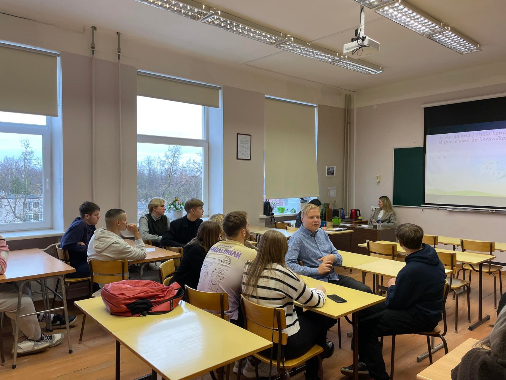 „RM baldai“ baldų gamintojas ROBERTAS ŠPAKIS jauniems žmonės papasakojo, kaip kartu su draugu pradėjo kurti baldų verslą ir kaip sekasi dabar. Be to, atsakė į klausimus, iš kur gauna medžiagų baldams gaminti, kokių įvykių nutinka kasdienybėje, kaip ieško išeičių. Mokiniams buvo daug negirdėtos informacijos.