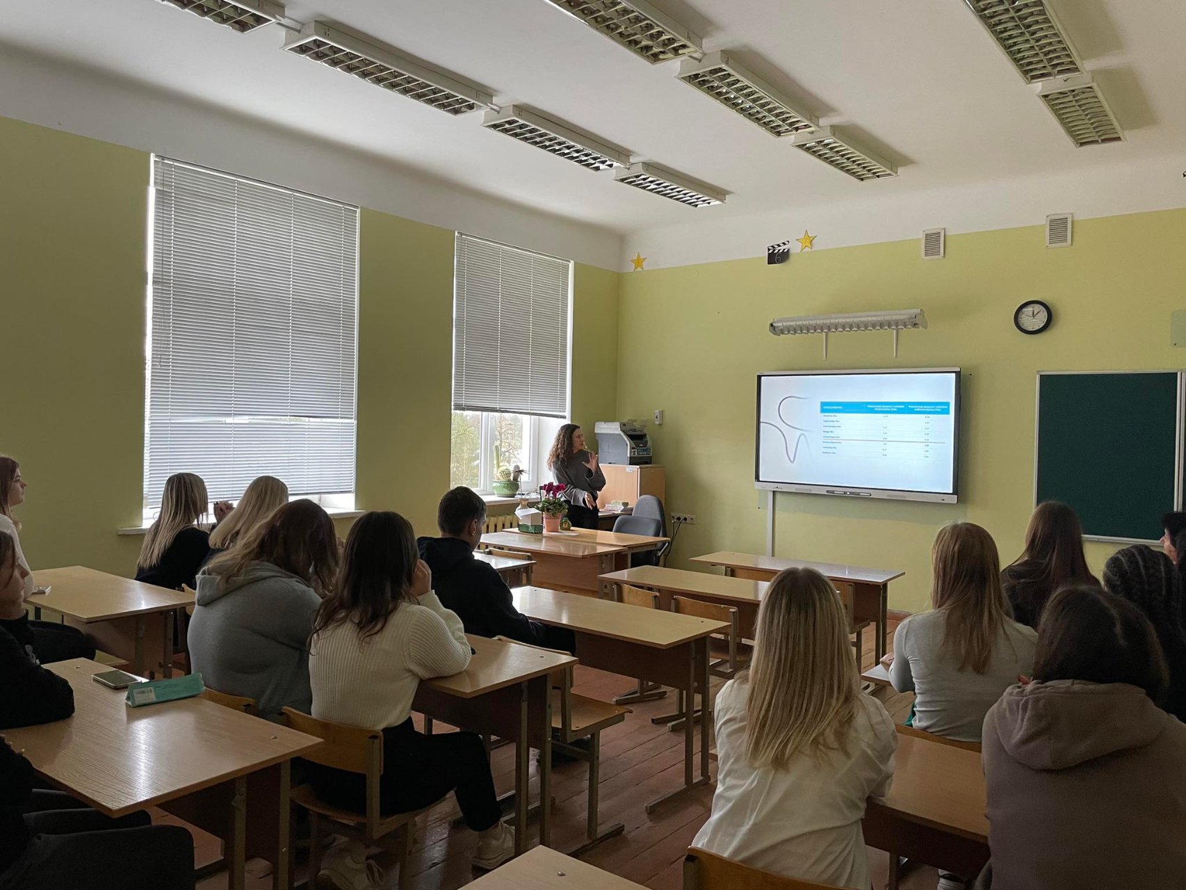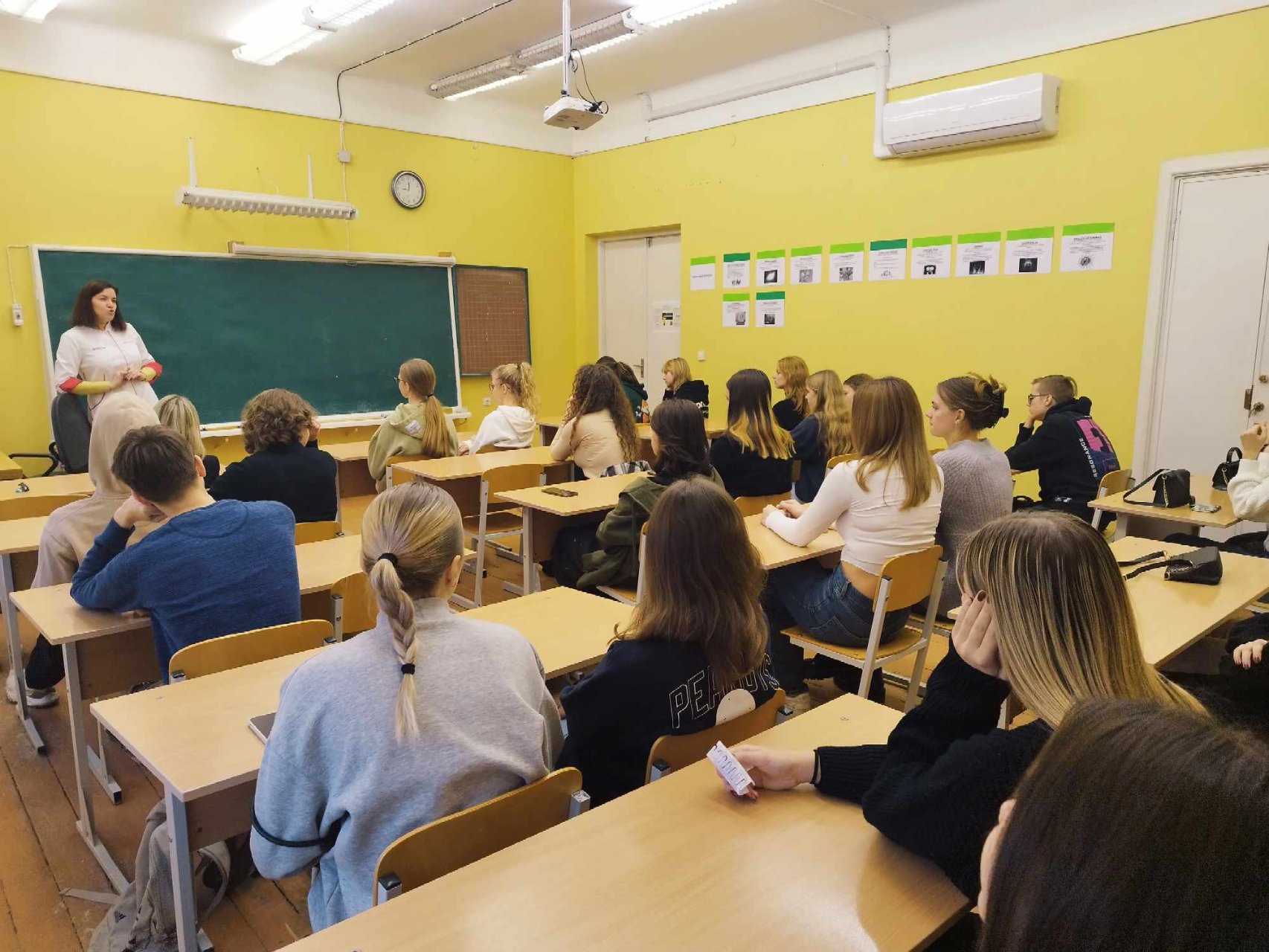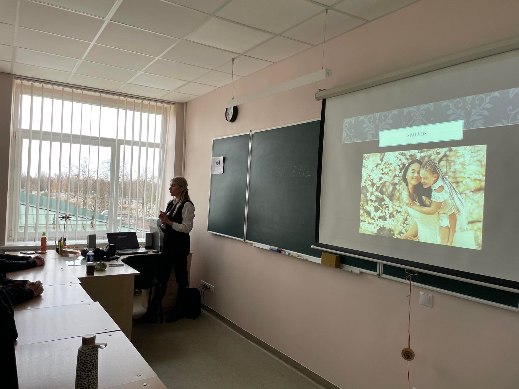 Daug naudingų patarimų, kaip prižiūrėti veido odą, mokiniai išgirdo iš grožio salono „Mademoiselle“, įsikūrusio Šiauliuose, kosmetologės MARTYNOS PAKALNYTĖS-PAUKŠTĖS. Ji papasakojo apie savo specialybę, kur ją galima įgyti, darbo pobūdį. Be to, buvo galima praktiškai išbandyti kosmetikos priemones, stebėti rodomas procedūros, klausytis apie odos priežiūrą.