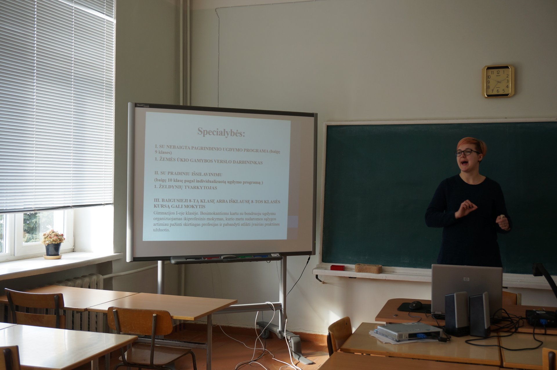 Dėstytojos pristatė specialybes, kurias galima įgyti jų ugdymo įstaigoje, papasakojo apie neformalųjį švietimą, gyvenimą bendrabutyje, priėmimo sąlygas, supažindino su galimybėmis studijas tęsti užsienyje.
