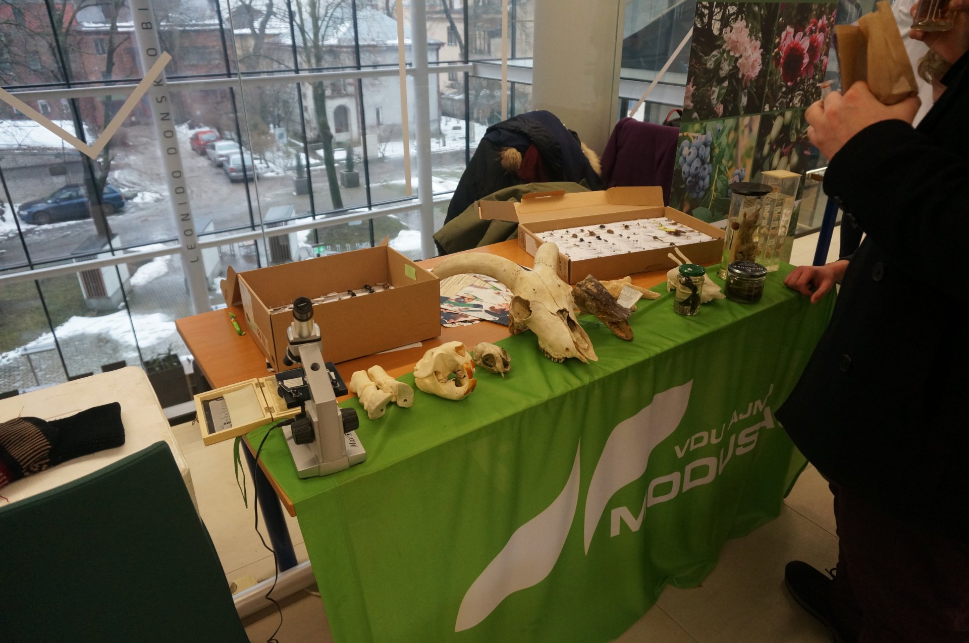 Po apsilankymo VGTU važiavome į Vilniaus universiteto studentų miestelį Saulėtekio alėjoje, kur Komunikacijos ir rinkodaros skyriaus ryšių su mokyklomis koordinatorė Ineta Gabrieliūnaitė papasakojo apie studijas ir stojimo sąlygas Vilniaus universitete. Po šio susitikimo Mokslinės komunikacijos ir informacijos centre susipažinome su modernios bibliotekos aplinka, sužinojome apie daugiafunkcinę knygų išdavimo ir grąžinimo tvarką. Taip pat koordinatorės lydimi apsilankėme Gyvybės mokslų veiksmo laboratorijoje, kur iš arti galėjome stebėti būsimųjų mokslininkų darbą.