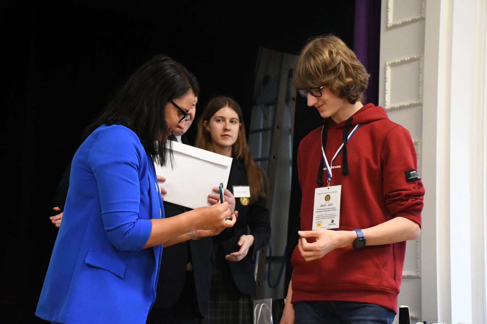 Per šią savaitę gimnazistams buvo suteikta galimybė kitomis akimis pažvelgti į matematiką. Kiekvienas galėjo dalyvauti originaliausios, didžiausios ir tiksliausios figūros, šmaikščiausio matematinio anekdoto, eilėraščio konkursuose, matematikos edukacijose „IQ iššūkis“ bei „Kūgis“, kurias vedė Kauno VII forto tvirtovės atstovai, bei diskusijoje „Matematika – mokslų karalienė ar tarnaitė?“ Savaitę baigėme kovo 31 dieną konkursu MADI – Pakruojo krašto jaunųjų matematikų XXI komandinėmis varžybomis. Labai tuo džiaugiamės, nes tradicija tapęs renginys po karantino padarytos pertraukos pagaliau vėl įvyko! Konkurse varžėsi 27 komandos iš 12 skirtingų Lietuvos miestų. Komandinėms užduotims išspręsti buvo skiriamos 2 valandos. Užduotis parengė Vilniaus universiteto docentas dr. A. Apynis ir Vilniaus universiteto Šiaulių akademijos profesorius dr. D. Šiaučiūnas. Atsipalaiduoti, smagiai praleisti laiką ir kuo greičiau sulaukti sprendinių rezultatų dalyviams padėjo viktorina „Platininių protų kovos“ ir matematinio imuniteto patikra. Viktoriną sudarė 6 turai, kurie patikrino mokinių loginį mąstymą, humoro jausmą ir aktyvumą bei skatino bendradarbiauti ir susipažinti su kitų mokyklų komandomis. Tuo metu mokytojams vyko seminaras „Iššūkiai kuriant aktyvų mokymo(-si) procesą mokant(-is) matematikos“, kurį vedė Klaipėdos „Ąžuolyno“ gimnazijos matematikos mokytoja eksperte Vilija Šileikienė. Šiltą sveikinimo žodį tarė gimnazijos direktorė Asta Valuntienė. Džiaugiamės renginyje sulaukę Pakruojo rajono savivaldybės mero Sauliaus Margio, Pakruojo švietimo skyriaus vedėjos Irenos Mažulienės, Pakruojo suaugusiųjų ir jaunimo švietimo centro direktorės Rimos Juozapavičienės, pagrindinio rėmėjo AB „Dolomitas“ generalinio direktoriaus Mindaugo Gudo. Šventėje skambėjo gimnazijos abiturientų Gustės Kazėnaitės (IV b kl.) ir Jokūbo Gaškos (IV b kl.) muzikos garsai. Nuoširdų ačiū tariame visiems, prisidėjusiems prie šios savaitės renginių. Tradicijos lemia kultūros išliekamumą bei vienybę. Puoselėkime tai ir susitikime kitais metais.