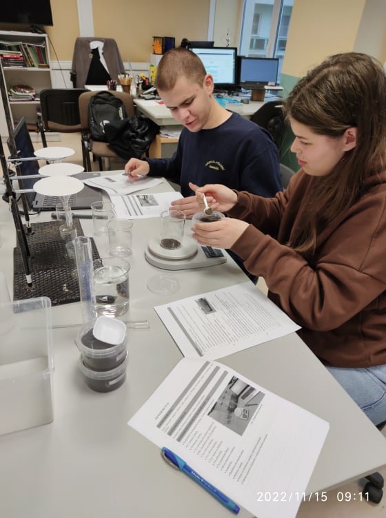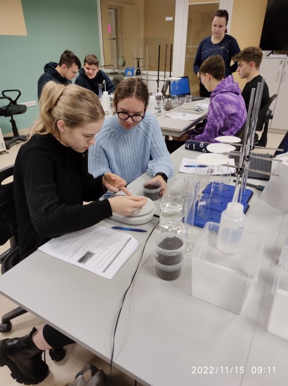 Lapkričio 15 d. grupelė pirmokų ir antrokų gimnazistų kartu su fizikos mokytoja Vida Imanavičiūte vyko į VU Šiaulių akademijos STEAM centro fizikos ir inžinerijos laboratoriją. Mokiniai atliko tiriamąjį darbą „Šiluminių ir elektrinių gamtos reiškinių tyrimas“. Atlikdami tyrimą bandėme nustatyti ir palyginti smėlio bei vandens savitąsias šilumas, taip pat matavome, koks yra elektros laidumas skirtingo dirvožemio vandenyje. Kiekviena veikla buvo didelė patirtis. Tirdami vandens elektros laidumą filtravome tris skirtingus dirvožemius, gautus filtratus matavome jutikliais, kurių rodmenys buvo pateikti kompiuteriuose. Atlikdami smėlio ir vandens tyrimą kaitinome smėlį, stebėjome jo ir vandens temperatūras, atlikome skaičiavimus.