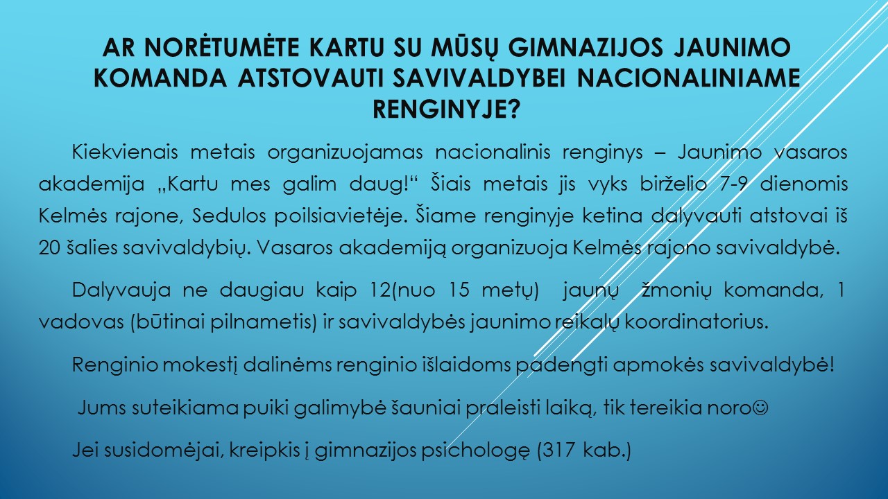 Taip pat sužinosite, kad gimnazijoje buvo sėkmingai organizuota Projektų diena.