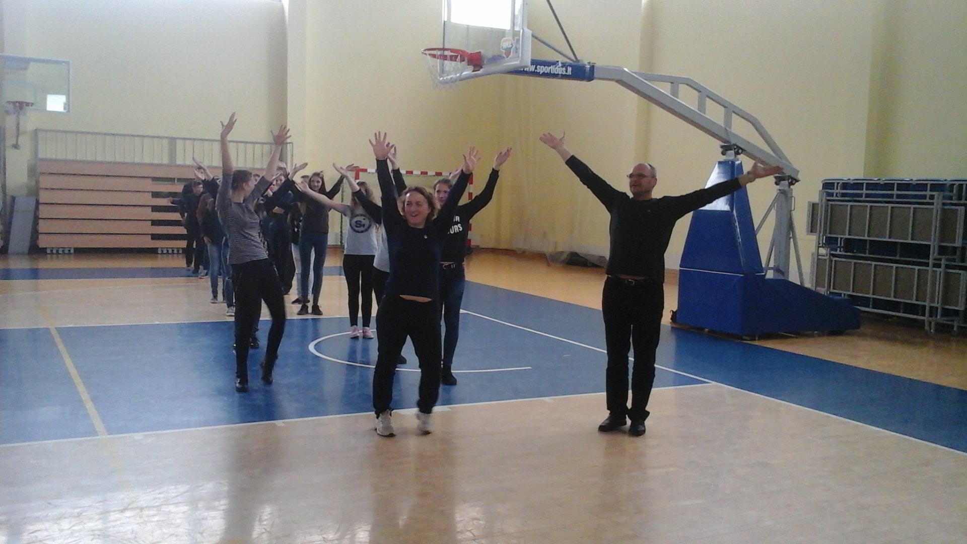 Spalio 1-ąją dieną per ilgąją pertrauką gimnazijos mokiniai ir mokytojai linksmai dalyvavo draugiškoje mankštoje „Judam kartu“. Tai – vienas iš Lietuvoje vykstančių Europos sporto savaitės akcijos renginių, kurie gimnazijoje vyksta visą savaitę.