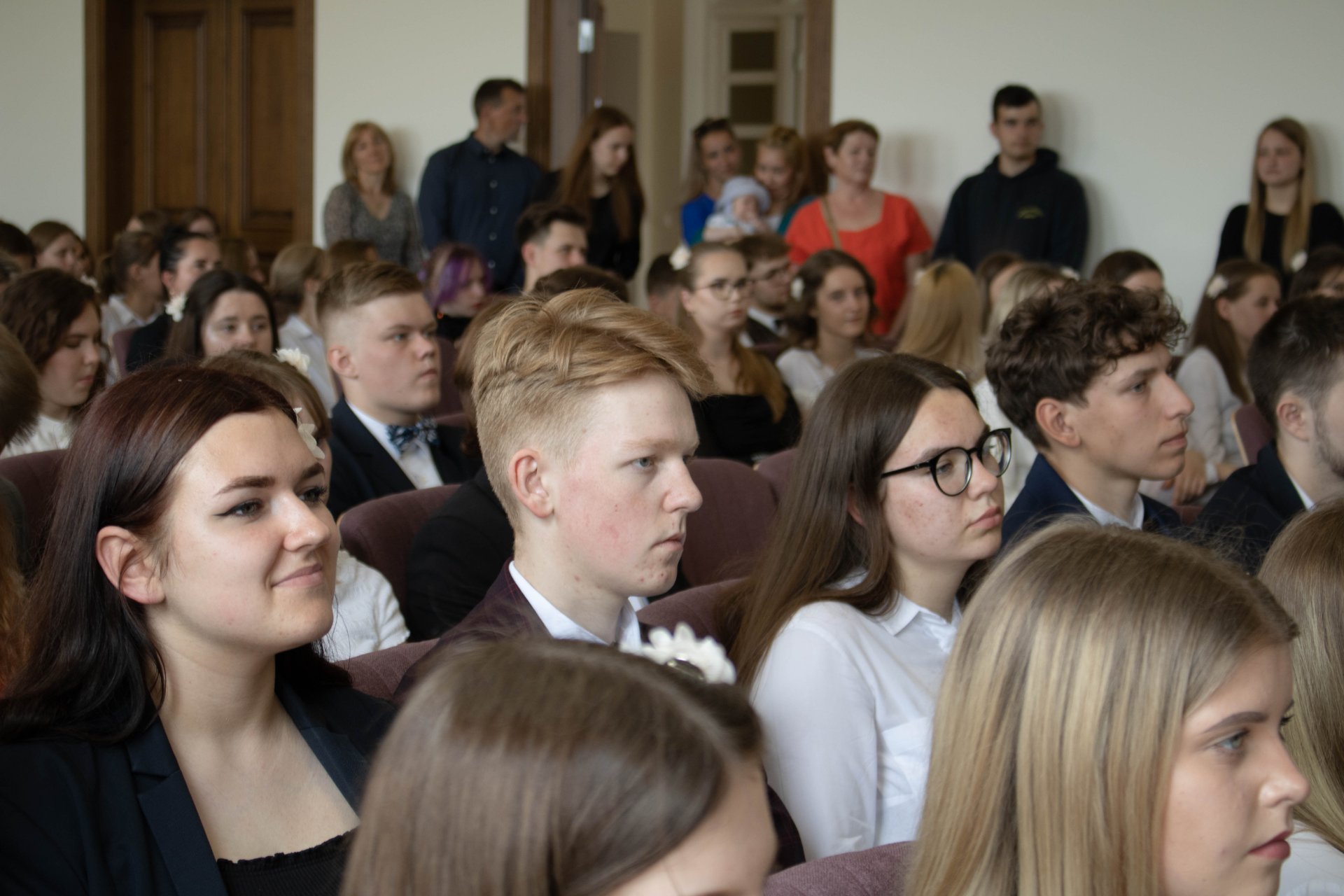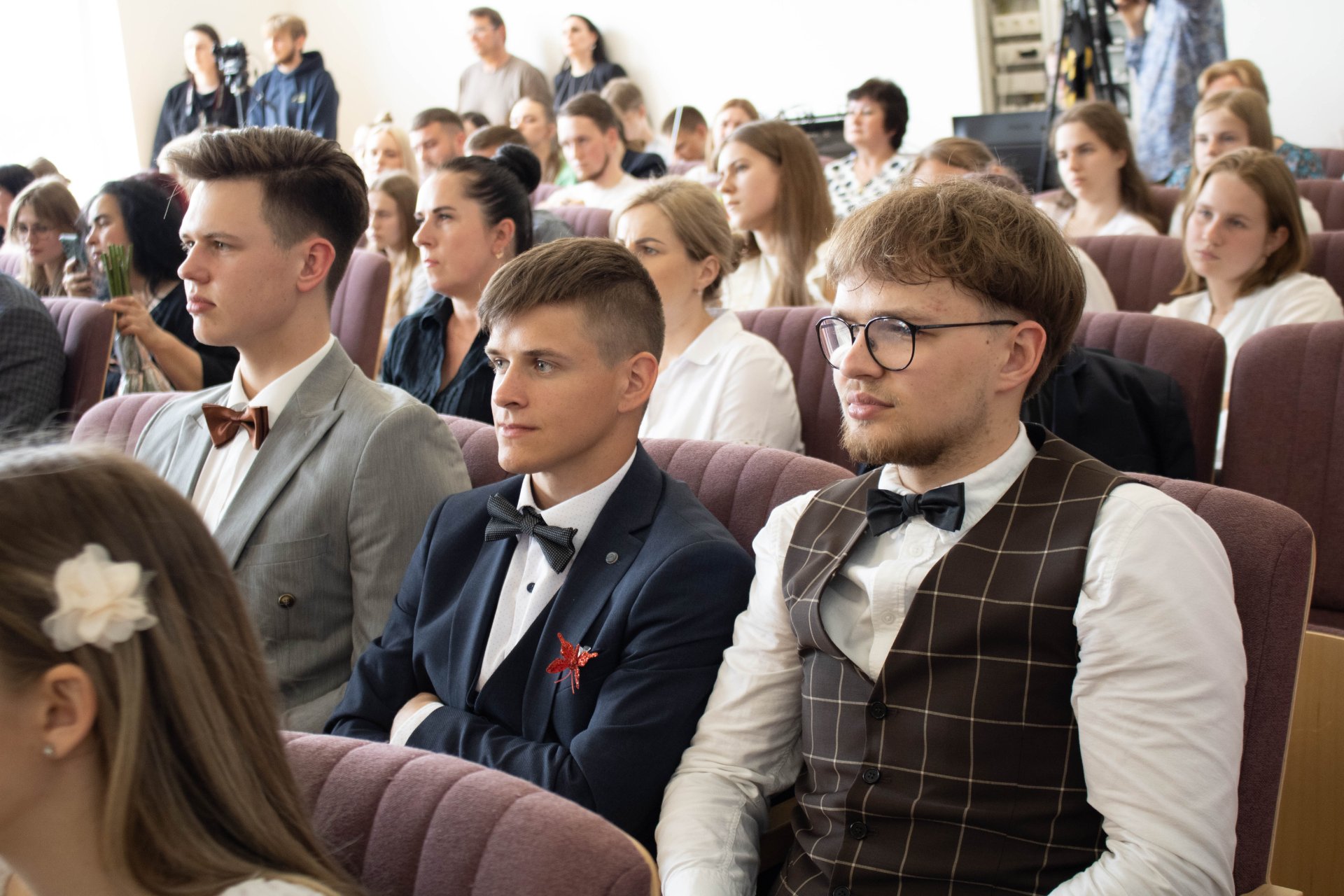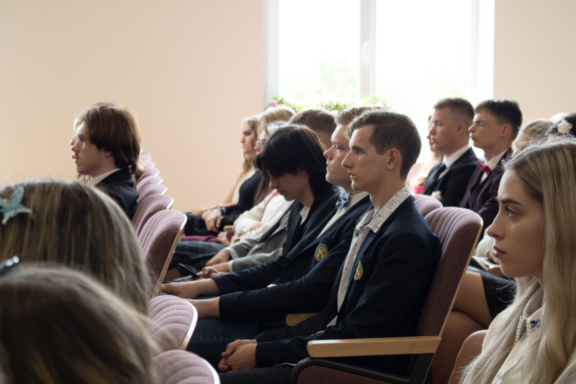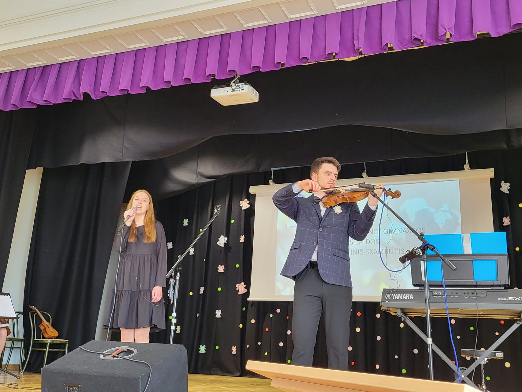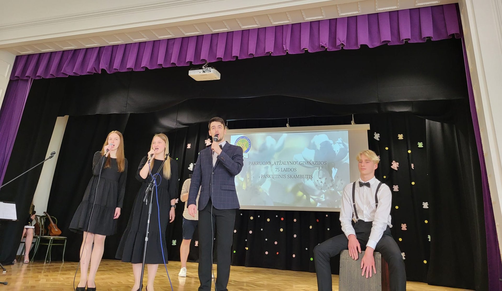 75 gimnazijos laidai nuskambėjo Paskutinis skambutis Aktų salėje Paskutinio skambučio šventė buvo jautri ir nuoširdi. Renginį tradiciškai organizavo trečiokai gimnazistai. Abiturientams širdis graudino mokinių muzikiniai pasirodymai. Kūrinius atliko vokalinis tercetas (Evelina, Gabrielė ir Jokūbas), Martyna ir grupė „Antiq“, dvi skambias dainas dovanojo vaikinų ansamblis, taip pat ukulėlių vokalinis ansamblis „Fireflies“, girdėjome Evelinos atliekamą kūrinį „Smuiko stygos“, o jai smuiku pritarė abiturientas Jokūbas, ketvirtokai žavingai sukosi valso sūkury. Trečiokas Vincentas skaitė savo kūrybos eilėraštį ir kvietė neliūdėti, juk pavasaris, apie jaunystės šėlsmą ketvirtokų gyvenime buvo ir trečiokų sukurtas filmukas. Padrąsinantys ir sugraudinantys, viltingi ir jautrūs žodžiai skambėjo iš gimnazijos direktorės Astos Valuntienės, buvusio direktoriaus Kęstučio Razumo, direktoriaus pavaduotojos ugdymui Rasos Augustinaitienės (beje, patiems aktyviausiems ji įteikė padėkos raštus), mokinių prezidentės Gretos Gudaitės, abiturientų pirmųjų mokytojų ir buvusių auklėtojų lūpų, taip pat padėkos ir atsisveikinimo žodį tarė ir patys abiturientai. Tylos minute prisimintas ir pagerbtas buvusio auklėtojo, mokytojo Juozo Vėdaro atminimas. Be to, šventėje dalyvavo ir sporto centro direktorė Aušra Dvelienė, kuri tarė sveikinimo žodį ir įteikė padėkos raštus geriausių sporto rezultatų pasiekusiems abiturientams.