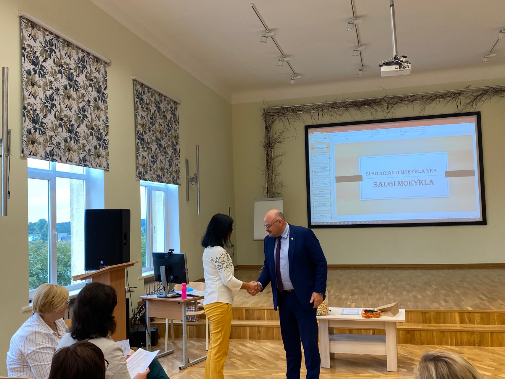 Be to, Pakruojo rajono savivaldybės meras Saulius Margis už ilgametį pedagoginį darbą nuoširdžiai dėkojo ir sėkmės naujajame gyvenimo etape linkėjo lietuvių kalbos ir literatūros mokytojai metodininkei Laimutei Lingevičienei ir anglų kalbos mokytojai metodininkei Vitalijai Balzarienei. Dovanos nuo kolegų, gėlės, apkabinimai, dalijimasis prisiminimais prie arbatos ar kavos puodelio... Jūs, Laimute ir Vitalija, juk niekur nedingstate. Jūs visada būsite šalia. O kitas etapas irgi turi savo žavesio... Apie jį papasakosite, kai susitiksime. Visiems nauja pradžia. Tegul ji būna gera.