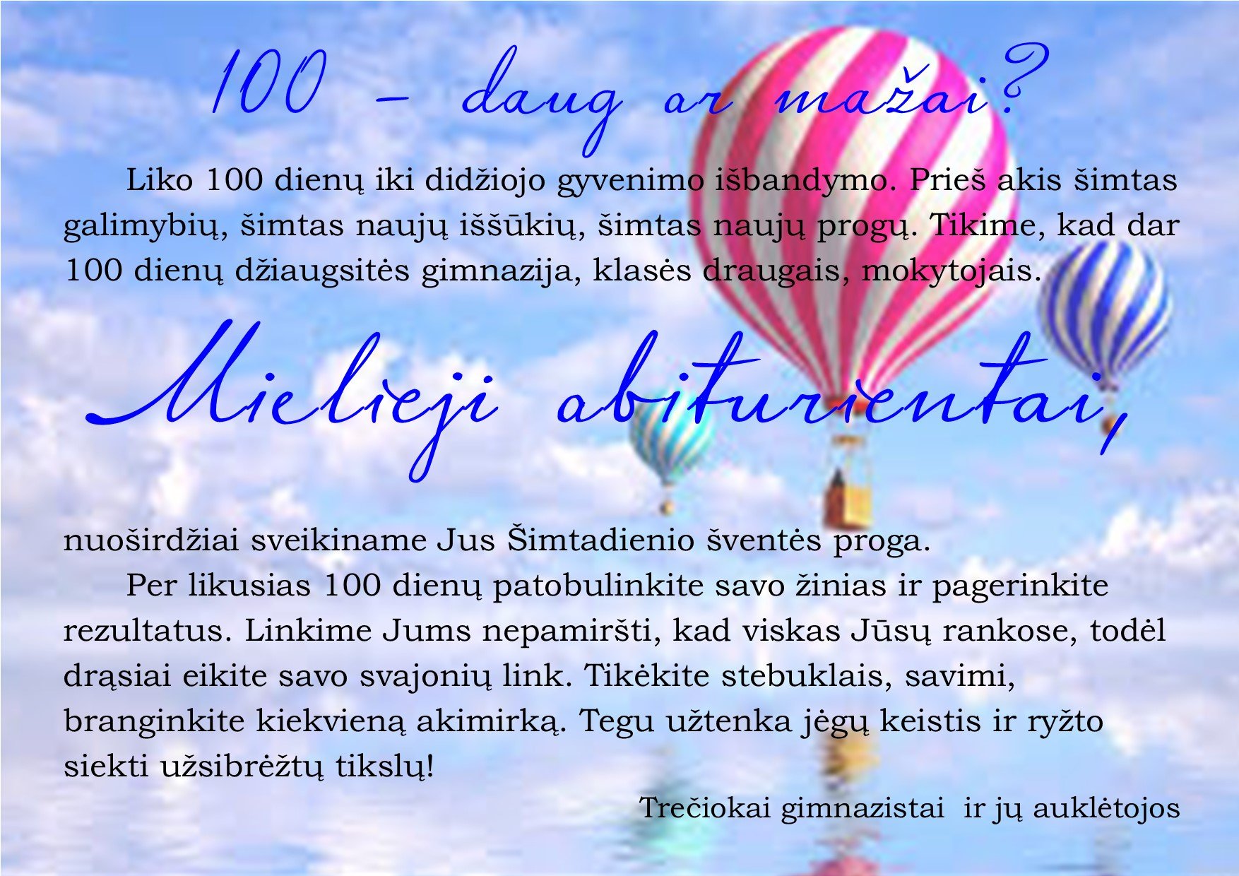 Maloniai kviečiame visus į Šimtadienio šventę.