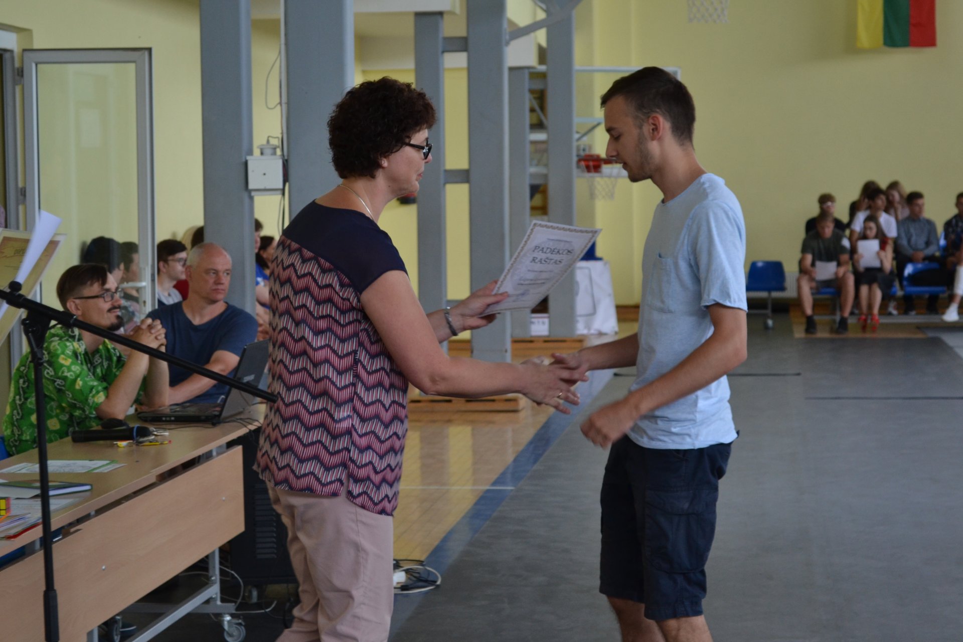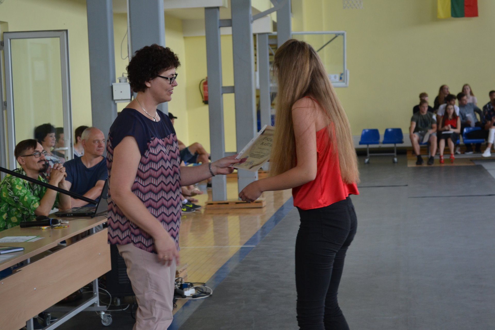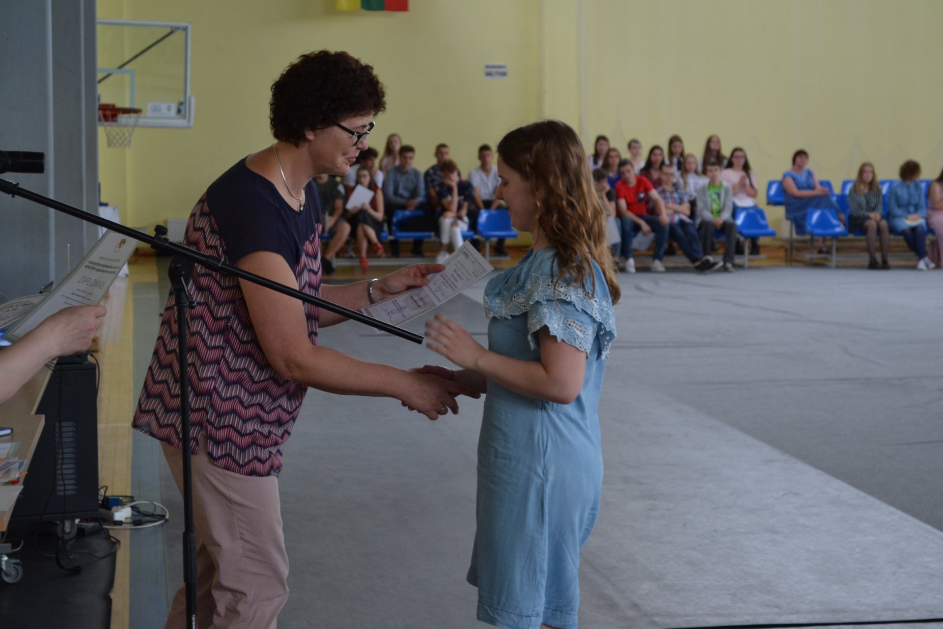 Saulėtą birželio 21-osios dieną direktoriaus pavaduotoja ugdymui Rasa Bertulienė, laikinai atliekanti direktoriaus funkcijas, mokslo metų baigimo proga sporto salėje susirinkusiems gimnazistams dėkojo už puikų mokymąsi, dalyvavimą konkursuose, renginiuose, olimpiadose, įteikė padėkos raštus. Linkėta nuostabių ir saugių atostogų. Visi išsiskirstė viltingai nusiteikę, kad po vasaros susitiks puikiai pailsėję ir pasiruošę įveikti naujus iššūkius.