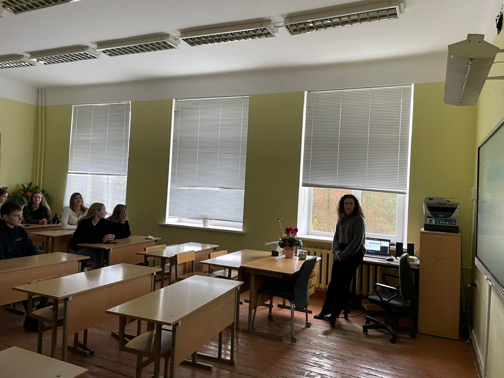 Daug naudingų patarimų, kaip prižiūrėti veido odą, mokiniai išgirdo iš grožio salono „Mademoiselle“, įsikūrusio Šiauliuose, kosmetologės MARTYNOS PAKALNYTĖS-PAUKŠTĖS. Ji papasakojo apie savo specialybę, kur ją galima įgyti, darbo pobūdį. Be to, buvo galima praktiškai išbandyti kosmetikos priemones, stebėti rodomas procedūros, klausytis apie odos priežiūrą.