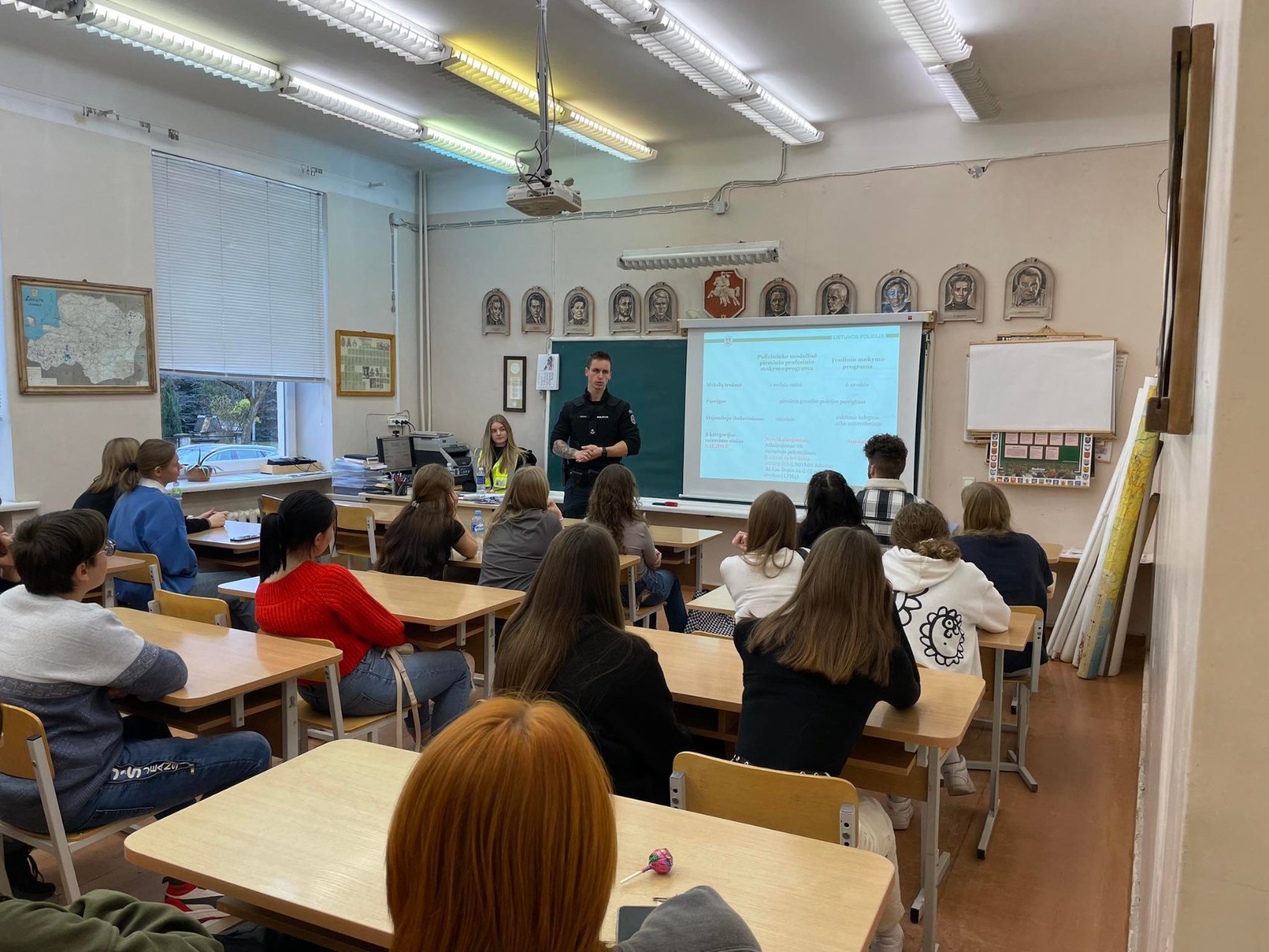 Lietuvos policijos Pakruojo policijos komisariato Veiklos skyriaus vyriausiasis tyrėjas DANIELIUS BUDRYS apie savo darbą kalbėdamas jautėsi užtikrintai ir drąsiai. Pareigūnas pasidalijo mintimis apie nelengvą kasdienybę, nes, anot jo, neaišku, kas laukia, su kokiais iššūkiais teks susidurti. Vyriausias tyrėjas Danielius pastebėjo, kad vis daugiau merginų nori tapti policininkėmis. Susitikimas buvo struktūruotas ir informatyvus.