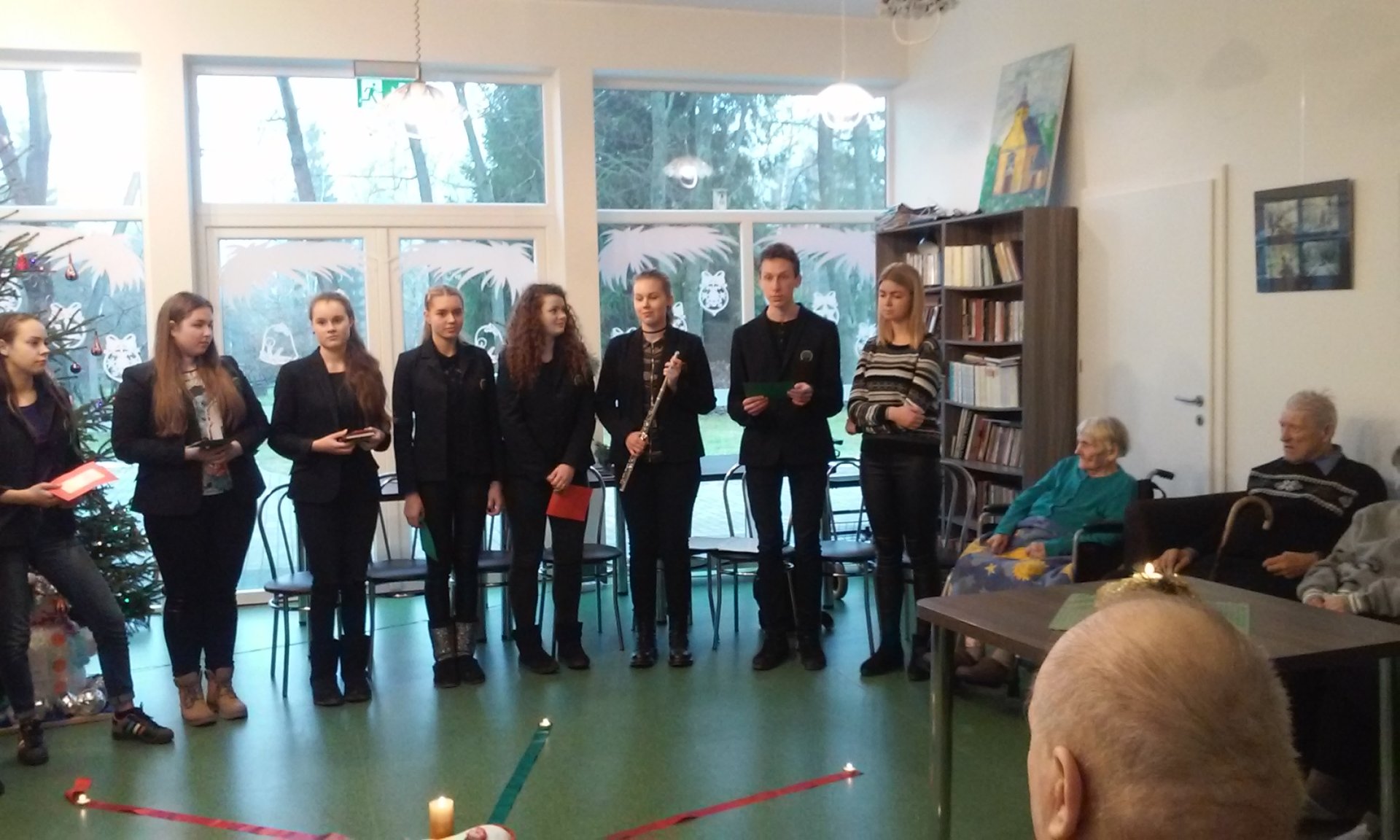 Turėjome galimybę senjorus palydėti į kambarius ir išsamiau pasikalbėti apie jų būtį bei buitį. Atrodė, kad jų lūpomis kalba gyvenimo patirtis, išgirdome daug išmintingų patarimų ir pamokymų. Seneliai labai maloniai mus priėmė ir buvo labai gera žinoti, kad bent kelias jų kasdienybės valandas nuskaidrino šviesi nuotaika.