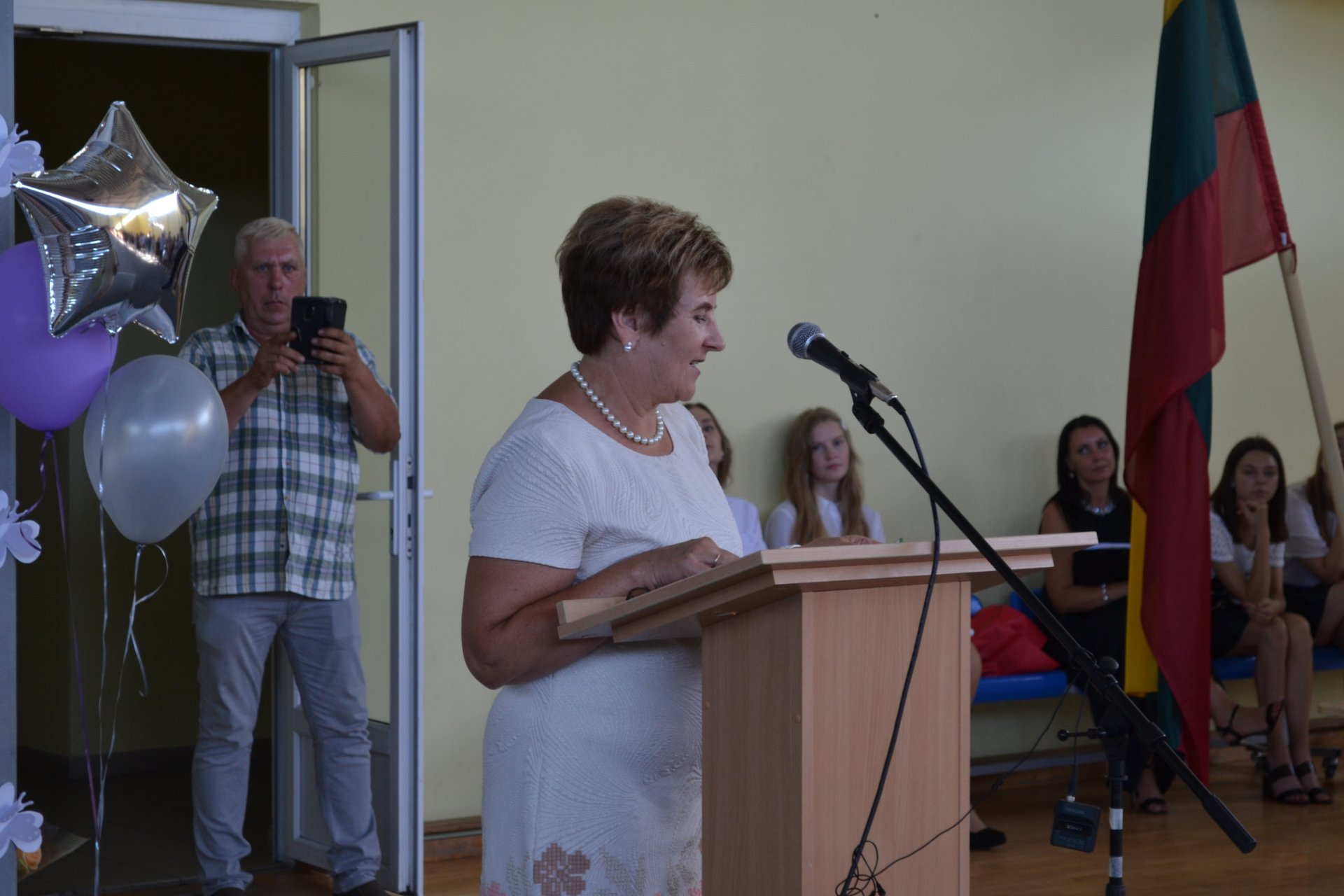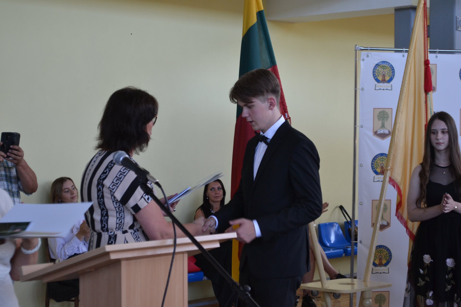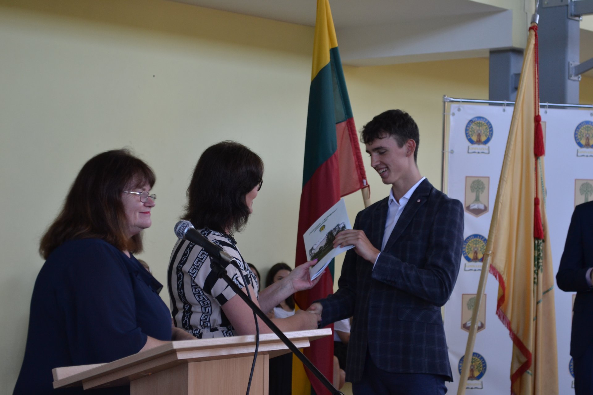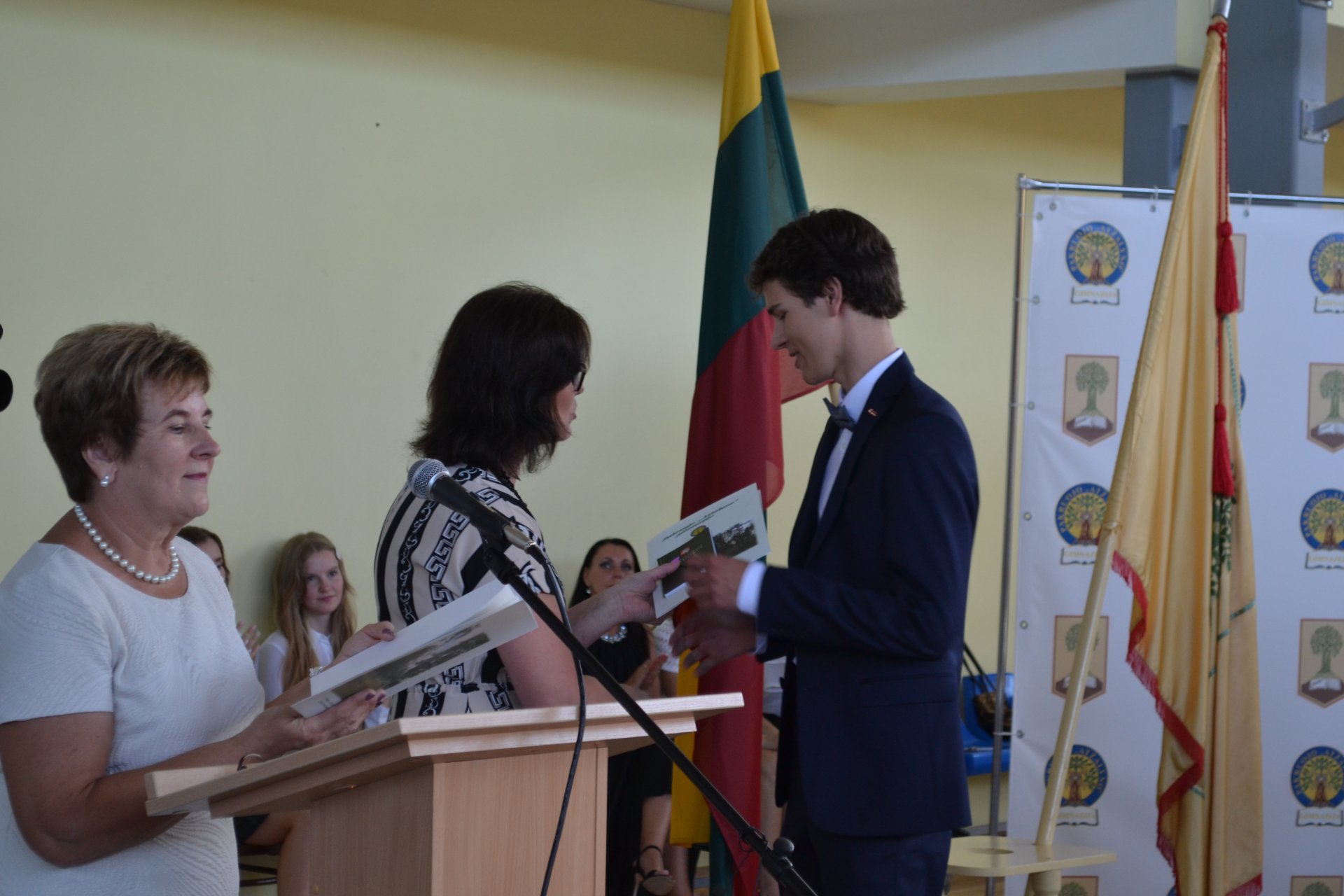 Pakruojo rajono savivaldybės tarybos narė, Seimo nario Antano Matulo padėjėja Erika Kižienė ne tik pasveikino abiturientus brandos atestatų įteikimo proga, bet ir perdavė Seimo nario Antano Matulo dovaną – kiekvienas abiturientas gavo Lietuvos Respublikos Konstitucijos knygelę.