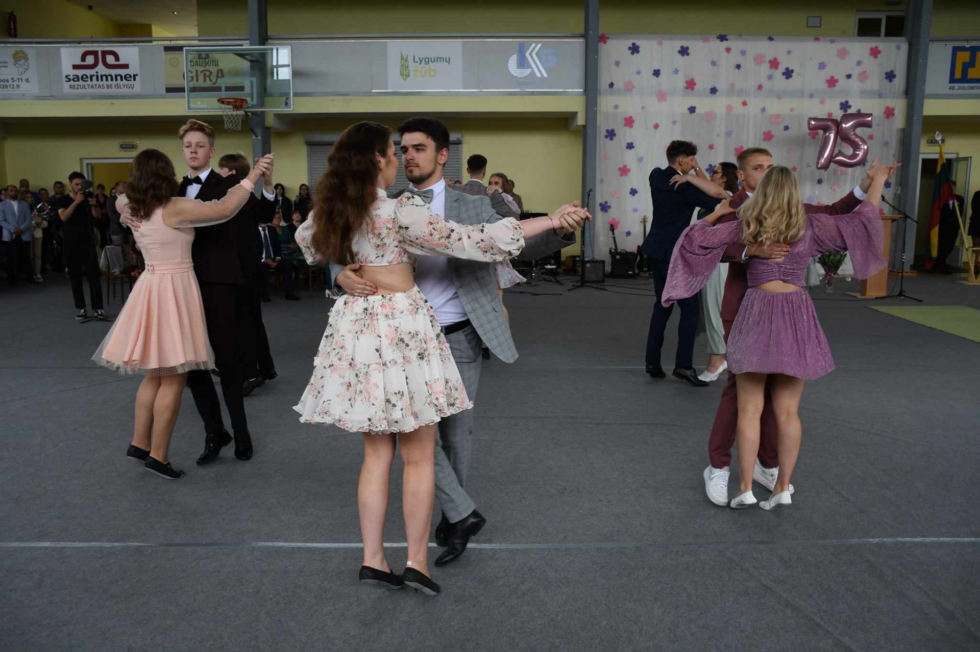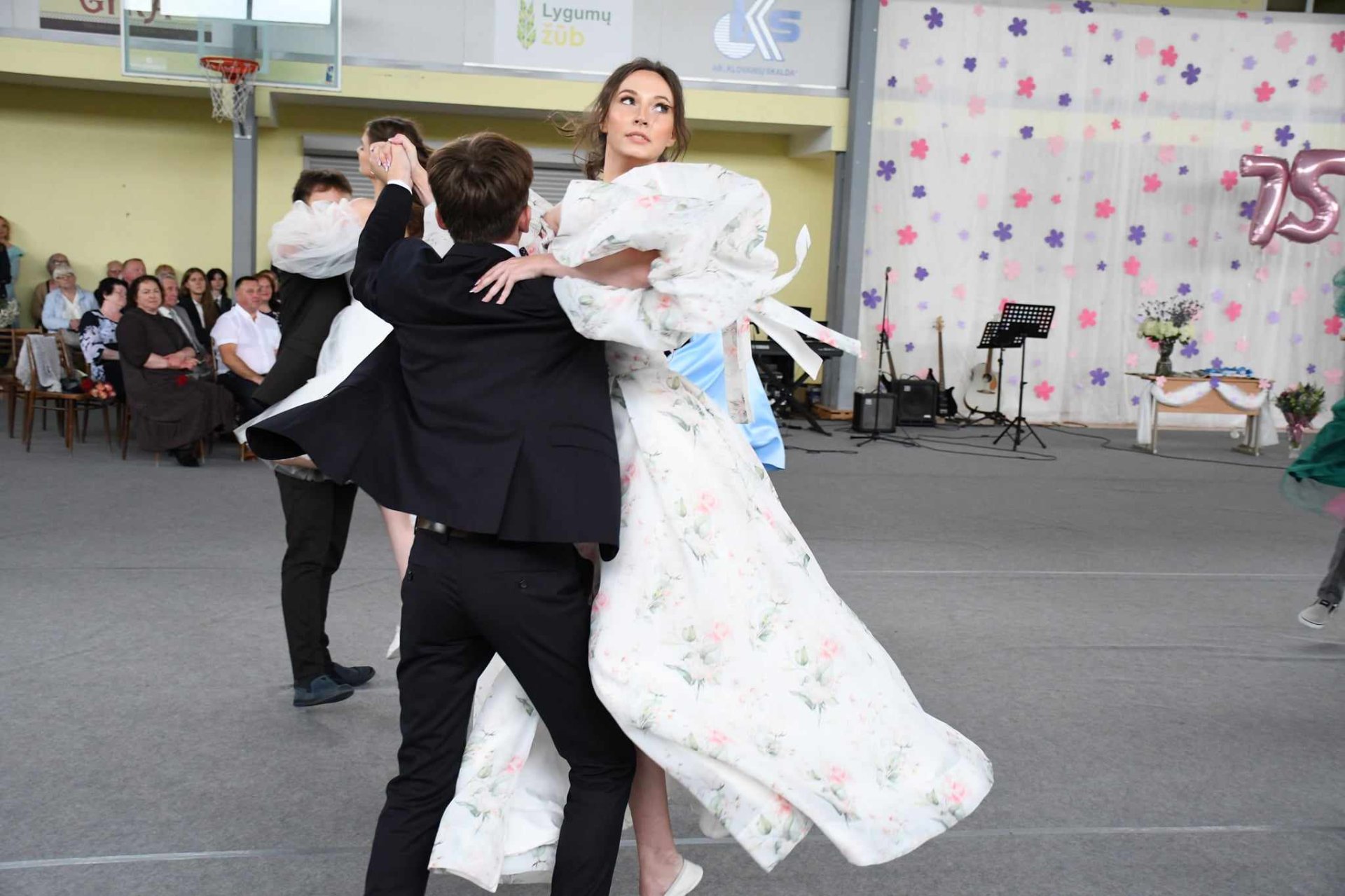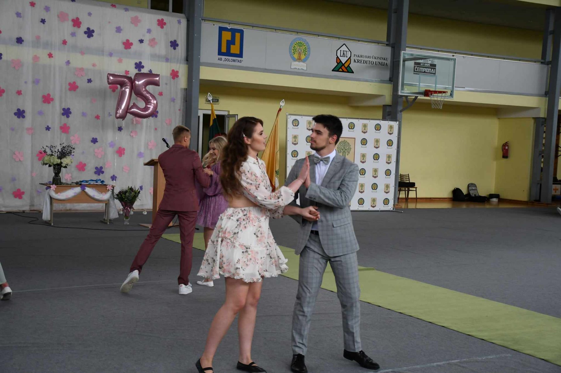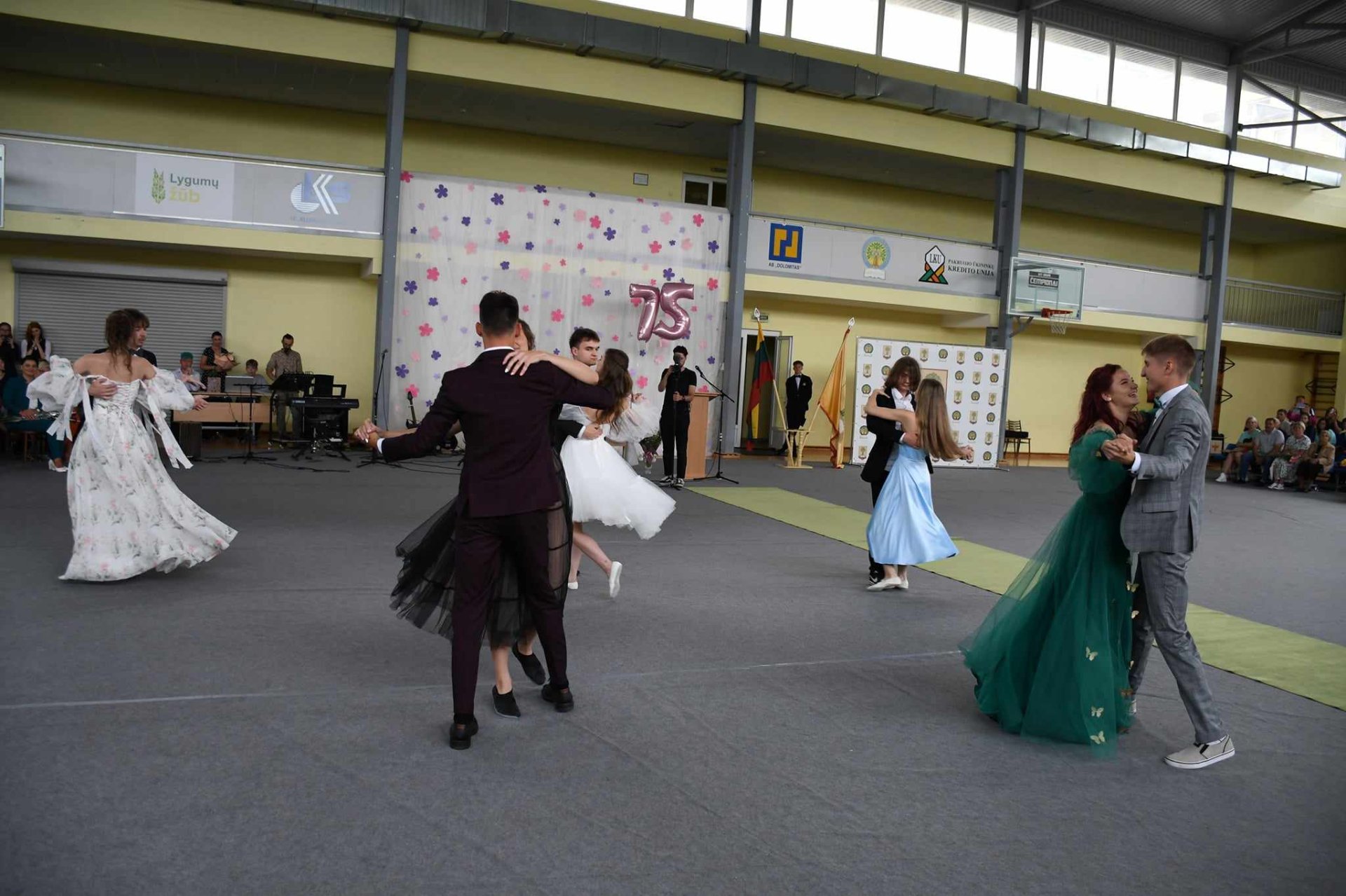 Dvi abiturientų grupės šoko valsą, kuris visada ypatingas, nes atspindi juos pačius, jų vidinį pasaulį, mintis, jausmus, svajones, polėkį ir laisvę. Stebėdama besisukančias poras, jaudinosi choreografijos mokytoja Audronė Geležinytė-Šniukienė, ne tik kūrusi nuostabų šokio reginį, bet ir ruošusi brandos atestatų įteikimo šventės programą. Abiturientų vardu padėkos žodį gimnazijos administracijai, mokytojams, tėveliams tarė abiturientė Livija Udrėnaitė. Renginį vedė trečiokai gimnazistai Ugnė Gelažiūtė ir Titas Stankūnas.