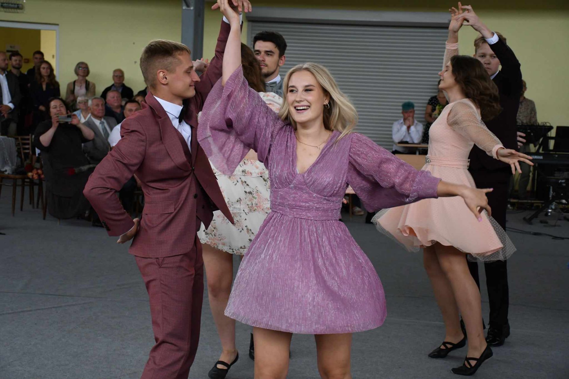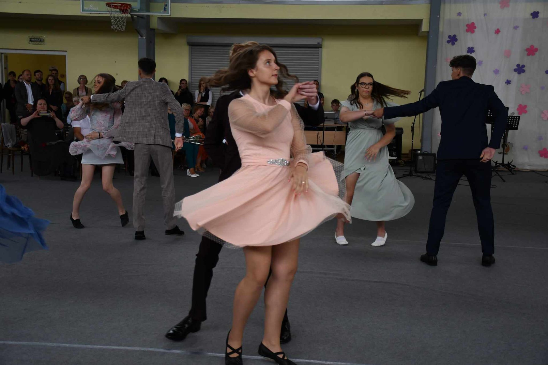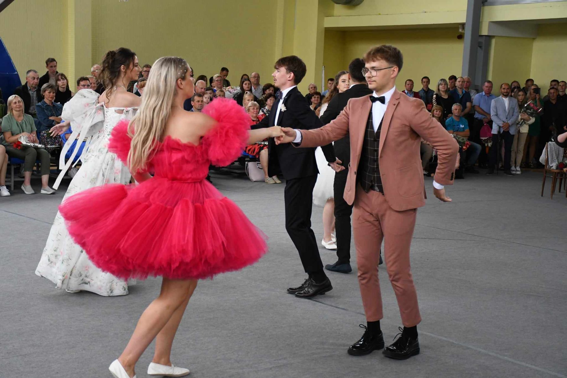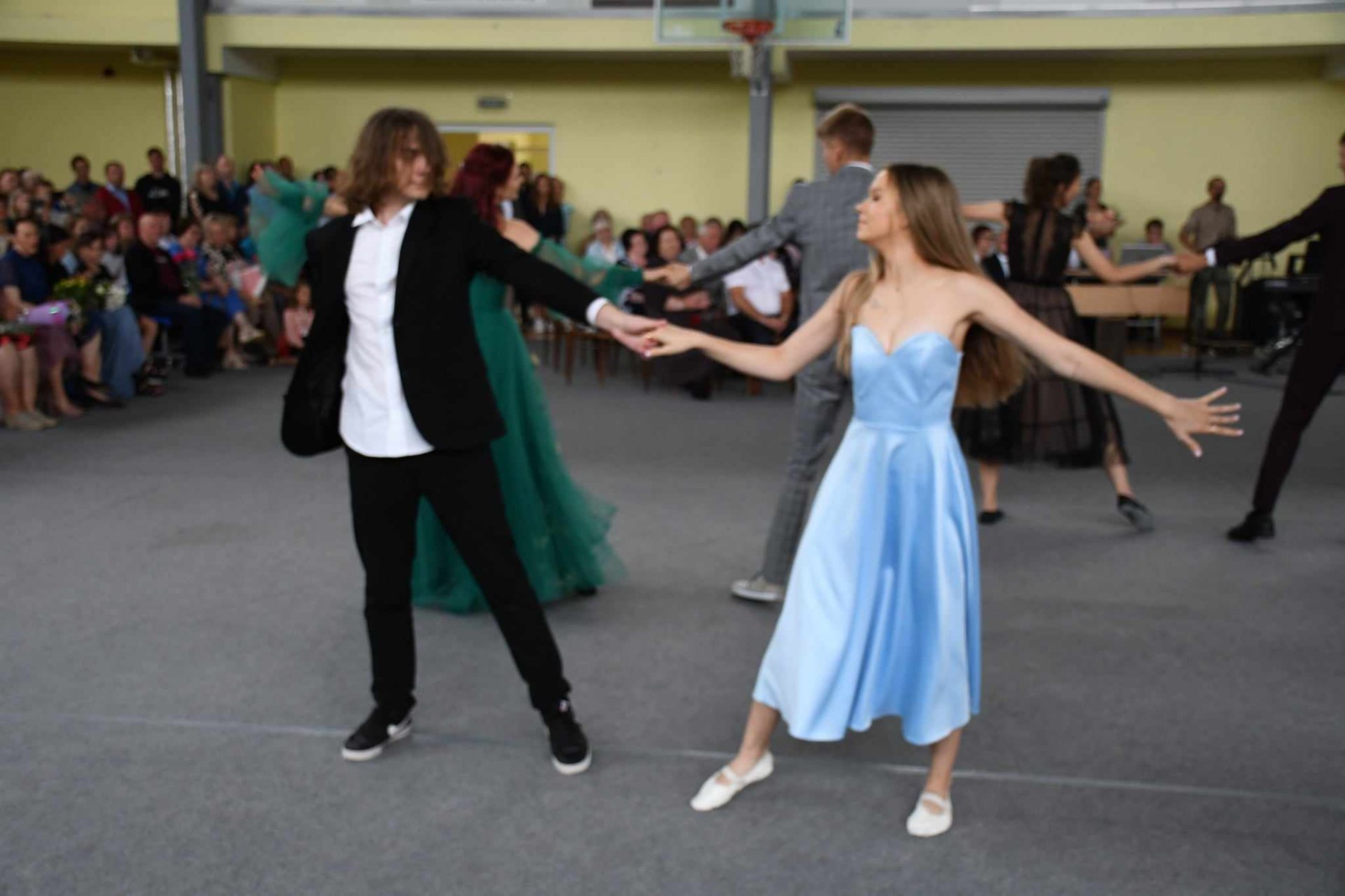 Dvi abiturientų grupės šoko valsą, kuris visada ypatingas, nes atspindi juos pačius, jų vidinį pasaulį, mintis, jausmus, svajones, polėkį ir laisvę. Stebėdama besisukančias poras, jaudinosi choreografijos mokytoja Audronė Geležinytė-Šniukienė, ne tik kūrusi nuostabų šokio reginį, bet ir ruošusi brandos atestatų įteikimo šventės programą. Abiturientų vardu padėkos žodį gimnazijos administracijai, mokytojams, tėveliams tarė abiturientė Livija Udrėnaitė. Renginį vedė trečiokai gimnazistai Ugnė Gelažiūtė ir Titas Stankūnas.