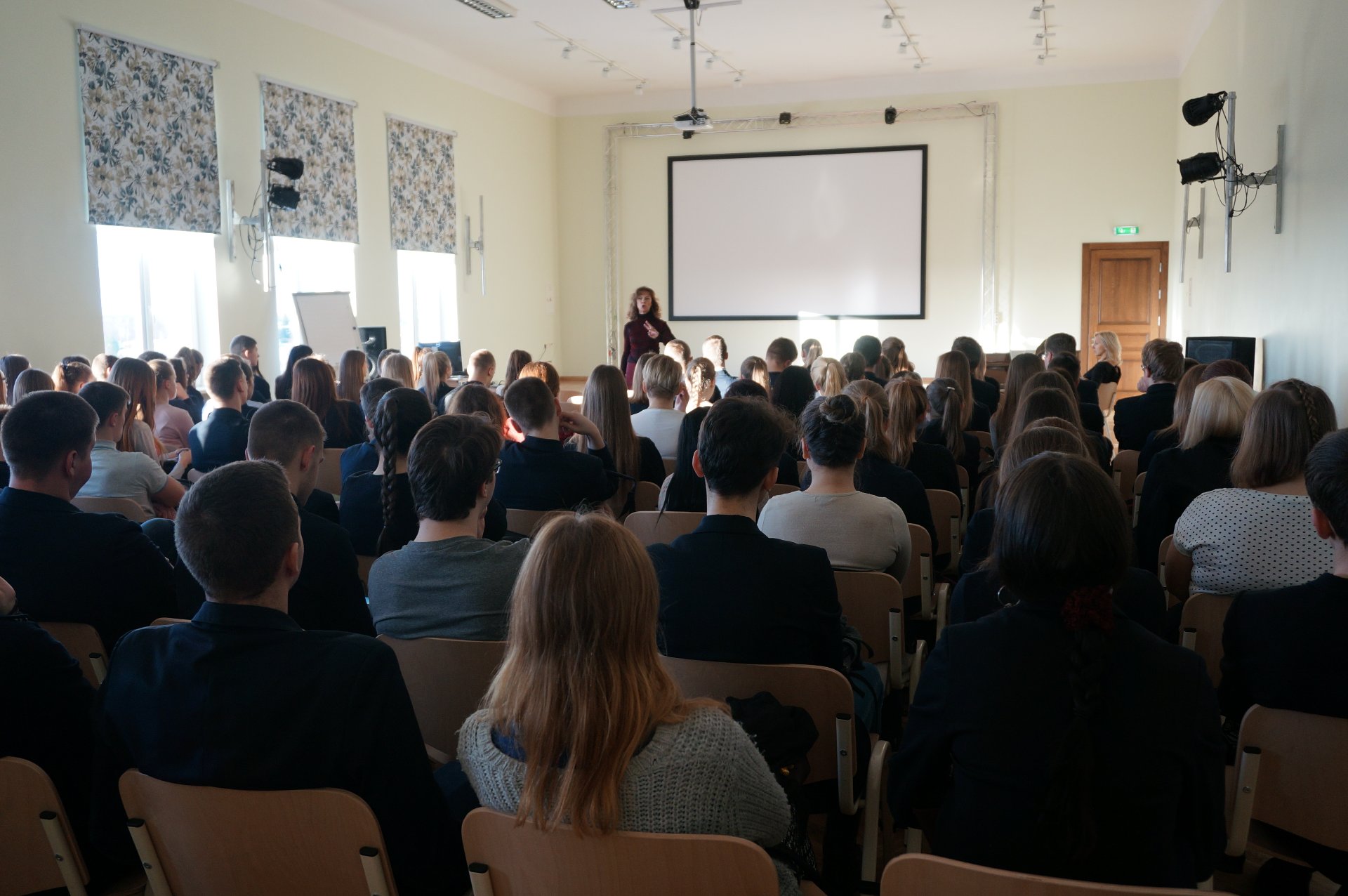 Gruodžio 1 d. gimnazijoje literatūros pamokos vyko netradicinėje erdvėje. Jas vedė aktorė, Klaipėdos universiteto docentė, režisierė, UNICEF Geros valios ambasadorė Virginija Kochanskytė.