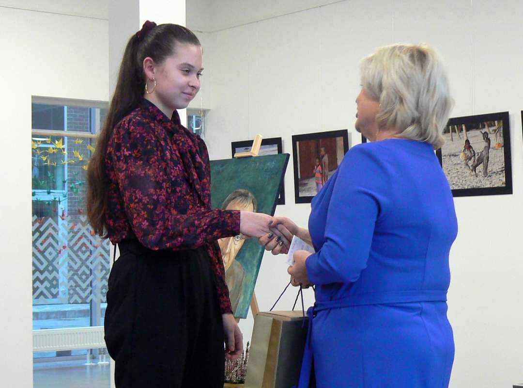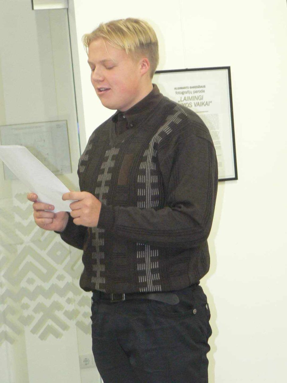 Lapkričio 18 dieną I b klasės gimnazistė Emilija Šimaitytė ir IV c klasės gimnazistas Vincentas Lekas, pusseserė ir pusbrolis, lankėsi Skuode, kur dalyvavo respublikinio eilėraščių konkurso „Gyvenimas trumpas, o laikas ir erdvė – amžini“ baigiamojoje šventėje. Nuvykę į Skuodą pirmiausia buvome pakviesti į ekskursiją, kurią vedė gidas, Romualdo Granausko viešosios bibliotekos direktorius Jonas Grušas. Šiemet Skuodas švenčia pirmojo paminėjimo rašytiniuose šaltiniuose 770 metų jubiliejų. Pamatėme Skuodo bažnyčias, dvarą, muziejų. Be to, pasivaikščiojome parke, nušviestame saulės, sukėlusios pavasario iliuziją. Po ekskursijos ėjome į Romualdo Granausko viešąją biblioteką, kuri pradėjo veikti šių metų kovo mėnesį. Biblioteka nustebino savo dydžiu, modernumu ir tautiniais motyvais. Renginys vyko bibliotekos konferencijų salėje. Emilija pelnė jauniausios konkurso dalyvės apdovanojimą. Vincentas netikėtai renginyje buvo pakviestas paskaityti neatvykusių laureatų eilėraščių. Konkurse dalyvavo 74 kūrėjai iš 29 savivaldybių. Renginį vedė Skuodo literatų klubo pirmininkė Dalia Zabitienė. Kalbą sakė ir laureatus apdovanojo komisijos pirmininkas, literatūros kritikas dr. Marijus Šidlauskas, Skuodo rajono savivaldybės meras Stasys Gutautas ir mero patarėja Daiva Jonušienė. Muzikinius kūrinius smuiku dovanojo Vilija Balsytė-Jakutienė. Džiaugiamės galėję pažinti dalelę Žemaitijos, plėsti kultūrinį ir dvasinį akiratį ir šiltai pabendrauti su renginio organizatoriais bei kūrėjais iš visos Lietuvos.