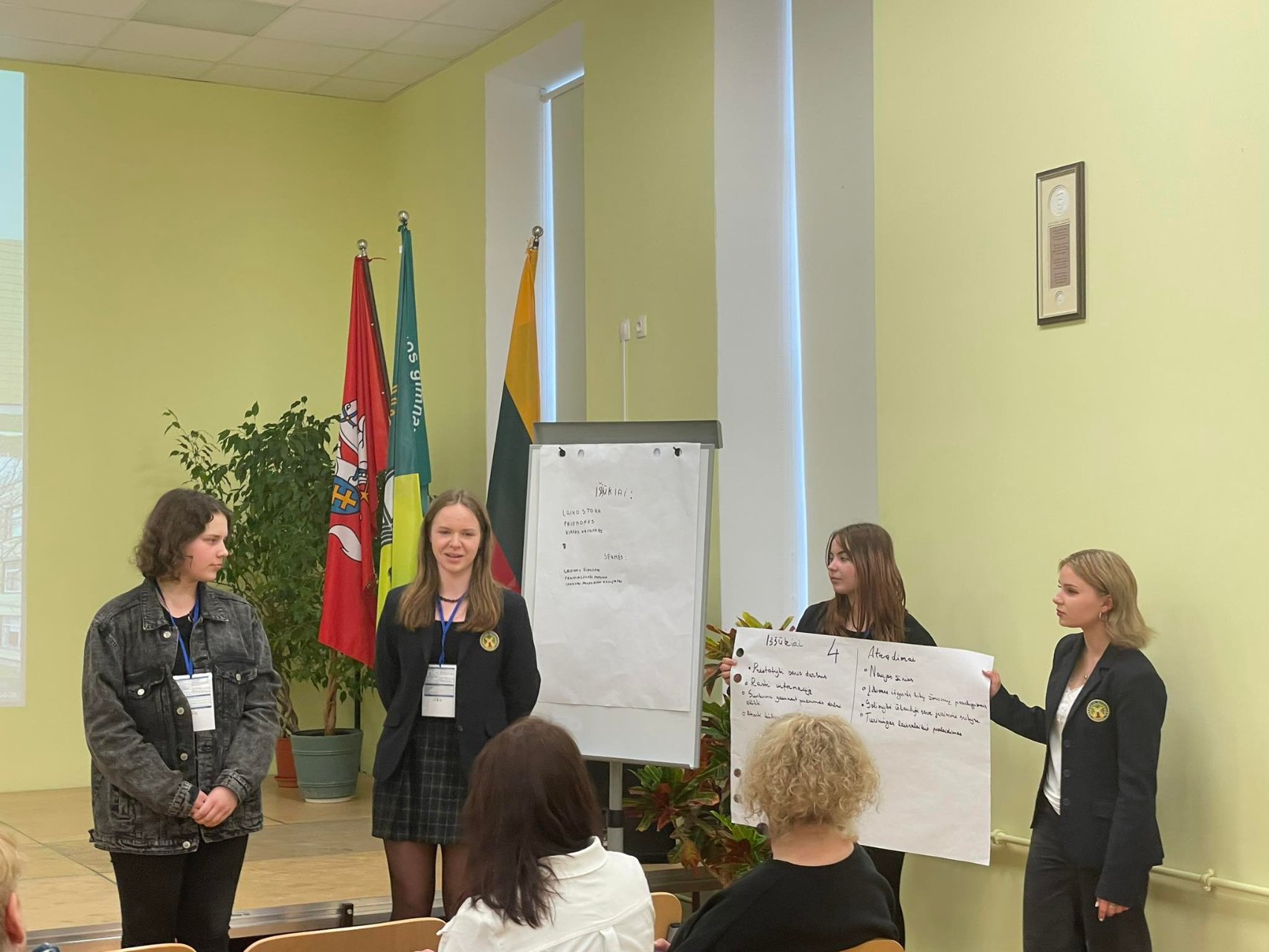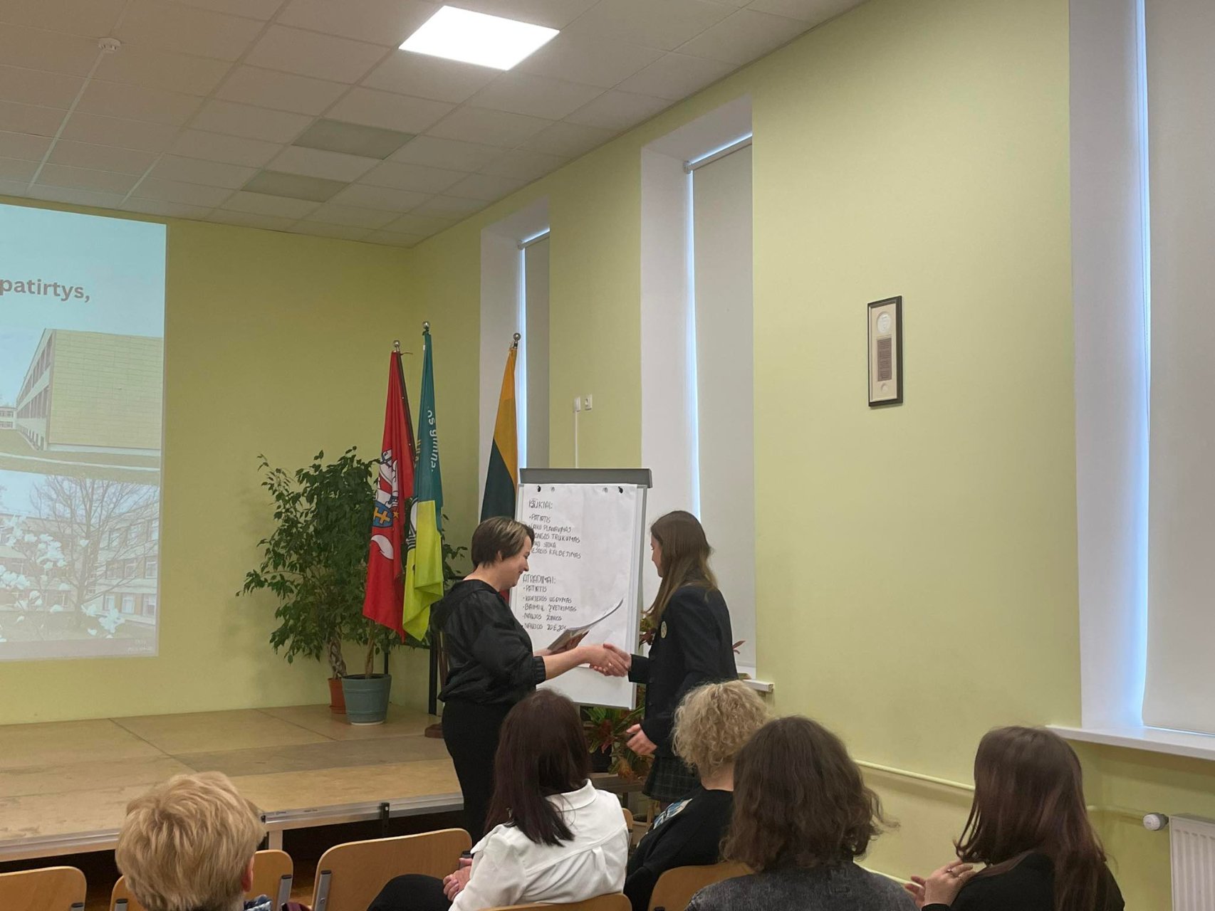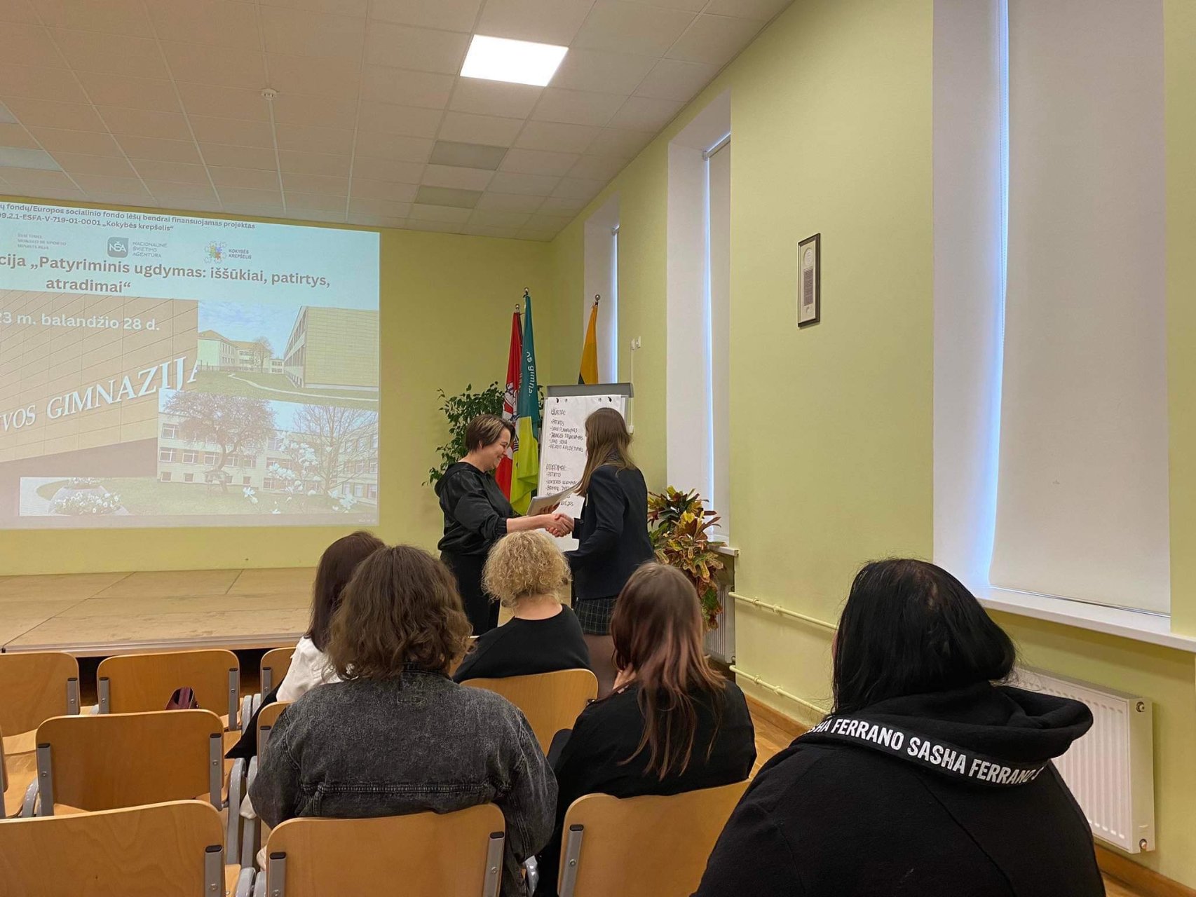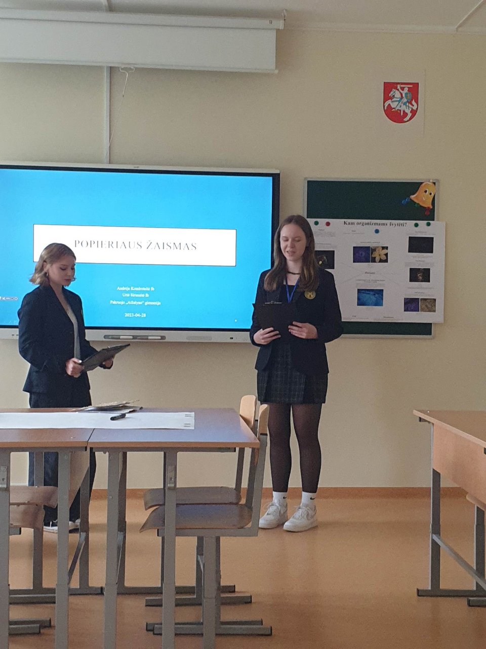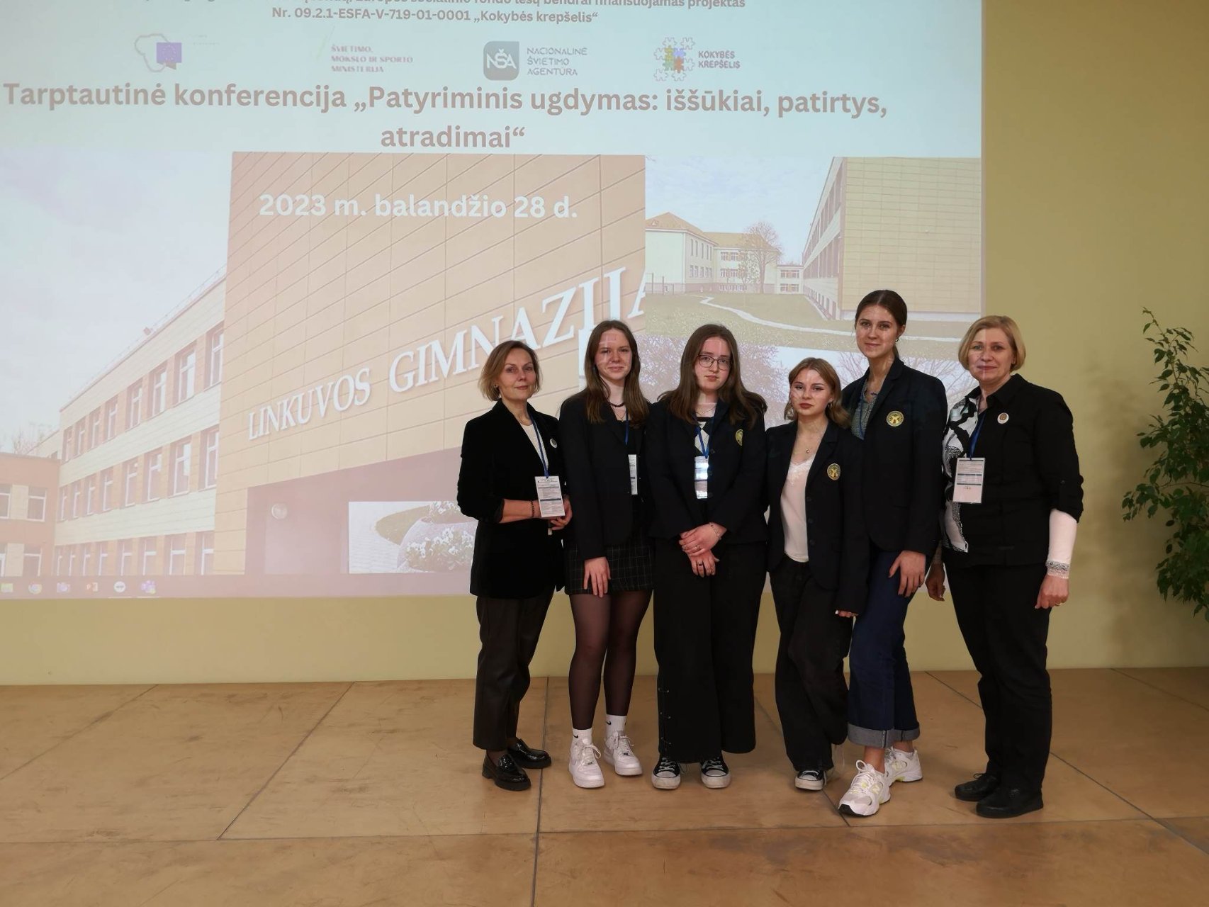 Balandžio 28 d. grupelė gimnazijos mokinių, biologijos mokytoja Daiva Makauskienė ir direktoriaus pavaduotoja ugdymui Rasa Augustinaitienė dalyvavo Pakruojo r. Linkuvos gimnazijos bendruomenės organizuotoje tarptautinėje konferencijoje „Patyriminis ugdymas: iššūkiai, patirtys, atradimai“. Konferencijoje ne tik klausėme Vilniaus universiteto mokslininkų dr. Ingos Matijošytės, dr. Pauliaus Tamošiūno pranešimų, išgirdome, kaip patyriminis ugdymas vyksta kitose mokyklose, be to, mūsų gimnazistai pristatė savo patyriminės veiklos rezultatus. I klasės mokinės Urtė Sirusaitė ir Andrėja Kondrotaitė skaitė pranešimą „Popieriaus perdirbimas“, antrokės Greta Gudaitė ir Skaistė Vaičiulytė pristatė savo tiriamąjį darbą „Atžalyno“ gimnazistas 2023 m.“ (nuoroda https://youtu.be/5Ea3rralrZw ). Trečiokas Vincentas Lekas parengė stendinį pranešimą „Kam organizmams švytėti?“. Mokinių darbų vadovė biologijos mokytoja metodininkė Daiva Makauskienė.