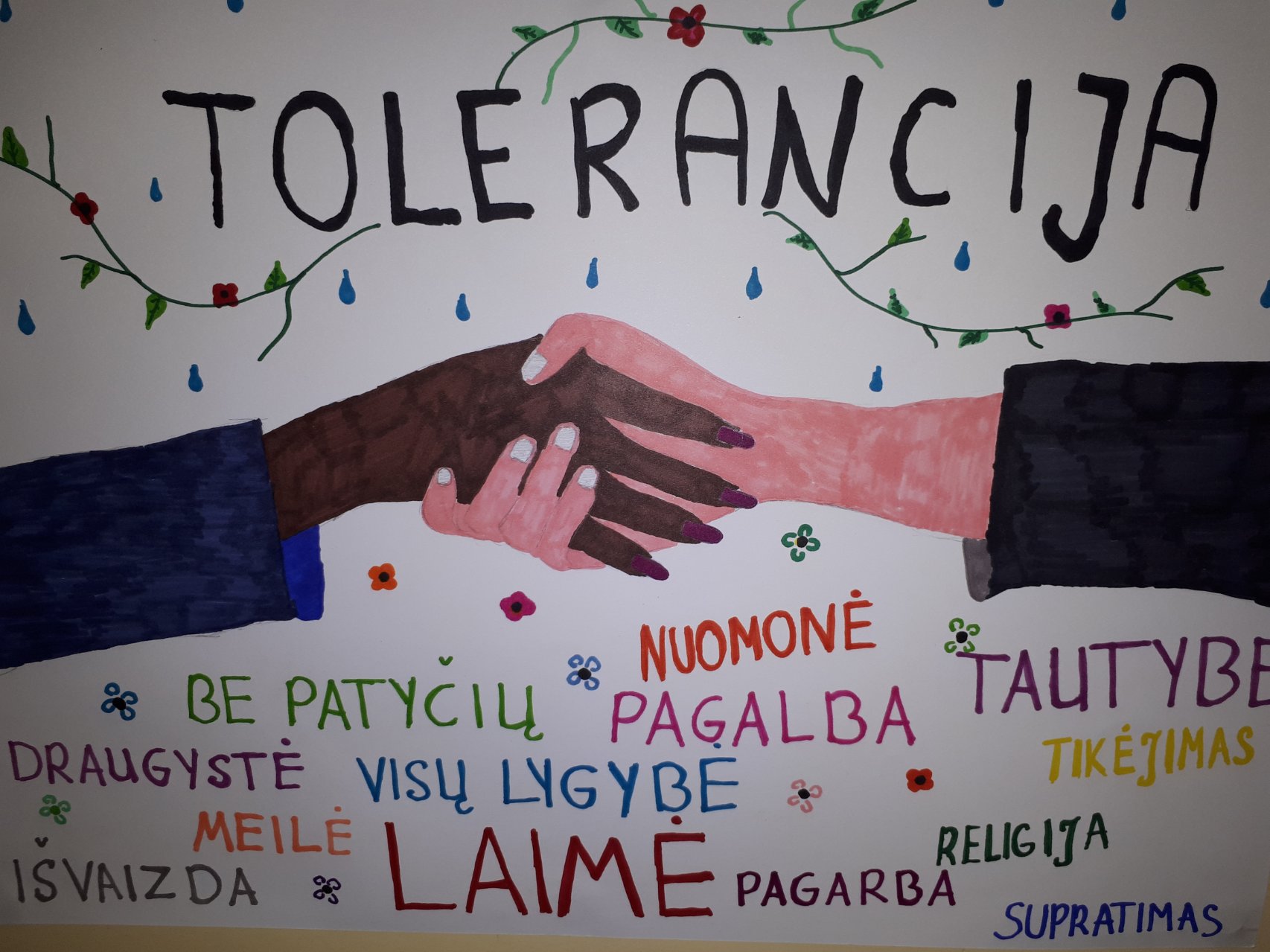 Dorinio ugdymo (etikos ir tikybos) pamokose pirmų klasių gimnazistai vykdė projektą, skirtą šiai iniciatyvai paminėti. Buvo atlikta ir kūrybinė užduotis – gimnazistai piešė plakatus, kuriuose pavaizdavo rankas – Tolerancijos dienos simbolį. Mokiniai akcentavo, kad visų rankos yra skirtingos, be to, jos gali kurti ar net griauti. Gimnazistų kūrybiniai darbai buvo aptarti ir eksponuoti gimnazijos viešosiose erdvėse.
