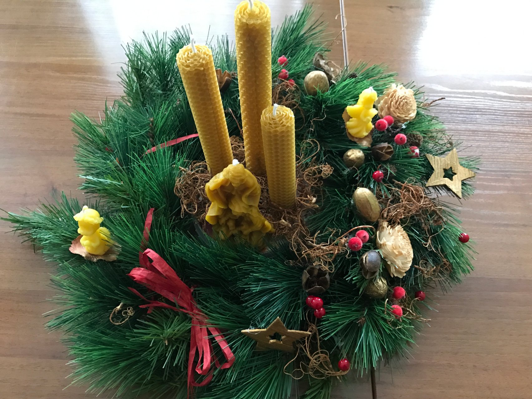 Šiandien iš tiesų įsitikinome, kad mūsų gimnazijos bendruomenėje gyvas bendravimo ir bendrumo stebuklas, dalijimosi galimybė. Širdingai dėkojame informacinių technologijų mokytojai Gražinai Gasiūnienei už mielą, nuoširdžiai kurtą advento vainiką, kuris papuošė gimnazijos mokytojų kambario stalą. Beje, visus labiausiai džiugina natūralaus bičių vaško žvakės, pagamintos pačios pedagogės. Tegu šis advento vainikas simbolizuoja šviesią viltį, liudija meilę ir kviečia pabūti kartu, pagalvoti apie artimą ir kitą, nebūtinai šalia esantį...