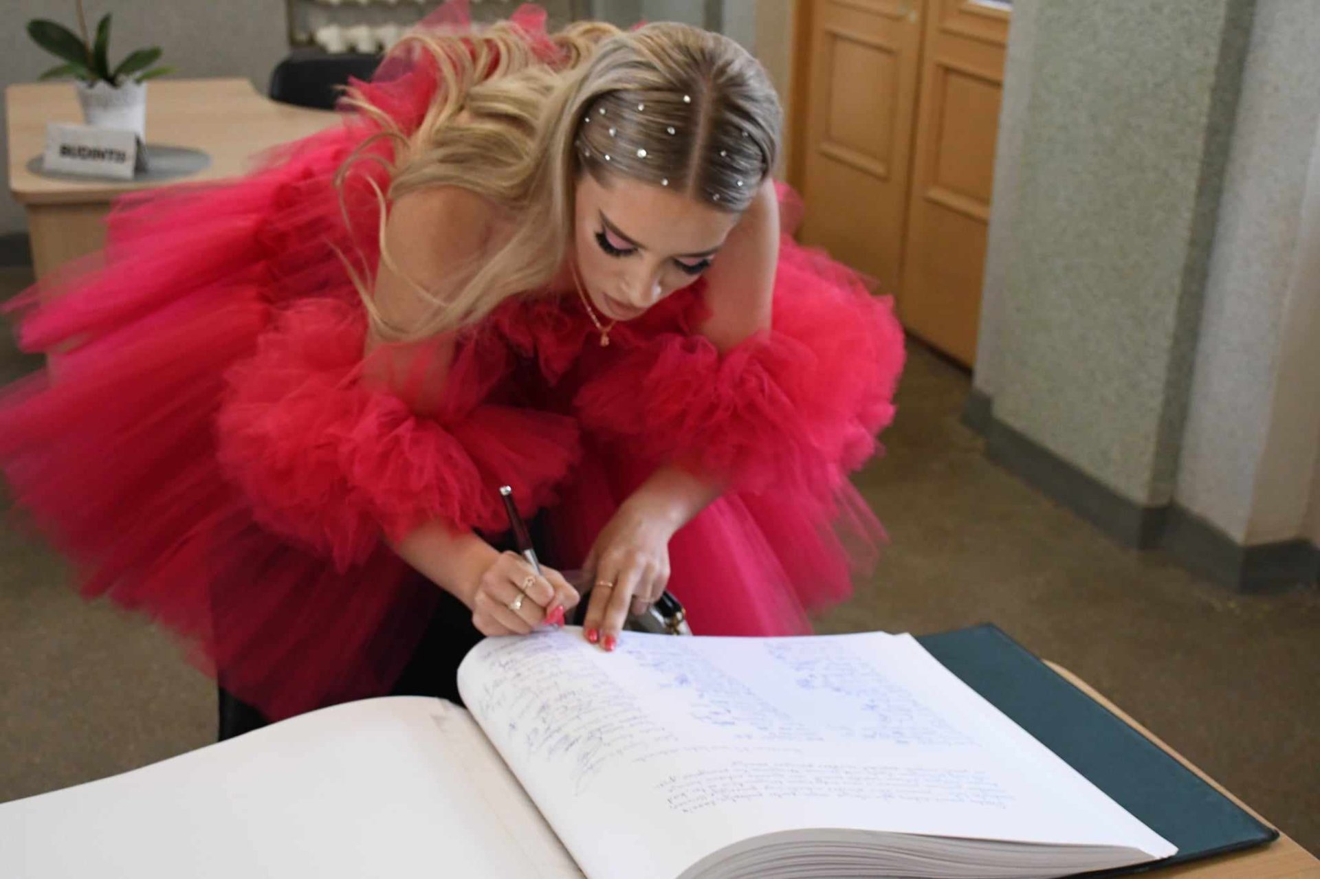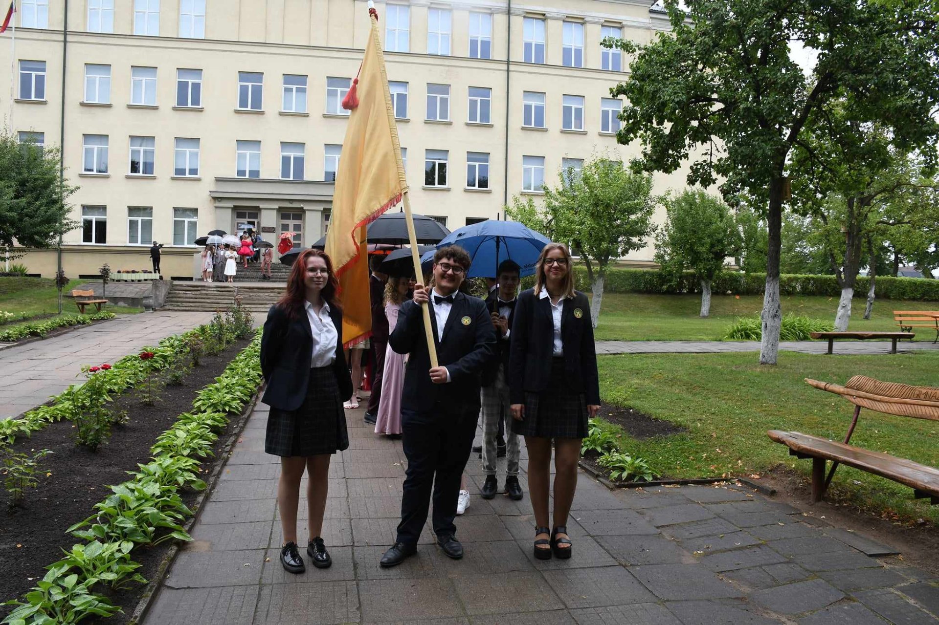 Dvi abiturientų grupės šoko valsą, kuris visada ypatingas, nes atspindi juos pačius, jų vidinį pasaulį, mintis, jausmus, svajones, polėkį ir laisvę. Stebėdama besisukančias poras, jaudinosi choreografijos mokytoja Audronė Geležinytė-Šniukienė, ne tik kūrusi nuostabų šokio reginį, bet ir ruošusi brandos atestatų įteikimo šventės programą. Abiturientų vardu padėkos žodį gimnazijos administracijai, mokytojams, tėveliams tarė abiturientė Livija Udrėnaitė. Renginį vedė trečiokai gimnazistai Ugnė Gelažiūtė ir Titas Stankūnas.
