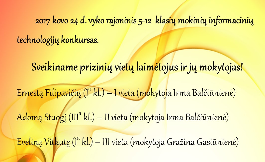 2017- 03-17 vyko teisinių žinių konkursas „Temidė“. Mūsų IIIb klasės gimnazistų komanda „Perkūnas“ užėmė III vietą rajone. Džiaugiamės šauniais dalyviais: Mindaugu Jarecku, Dovydu Levinsku, Matu Vyšniausku, Luku Svirpliu, Deividu Zaleskiu.