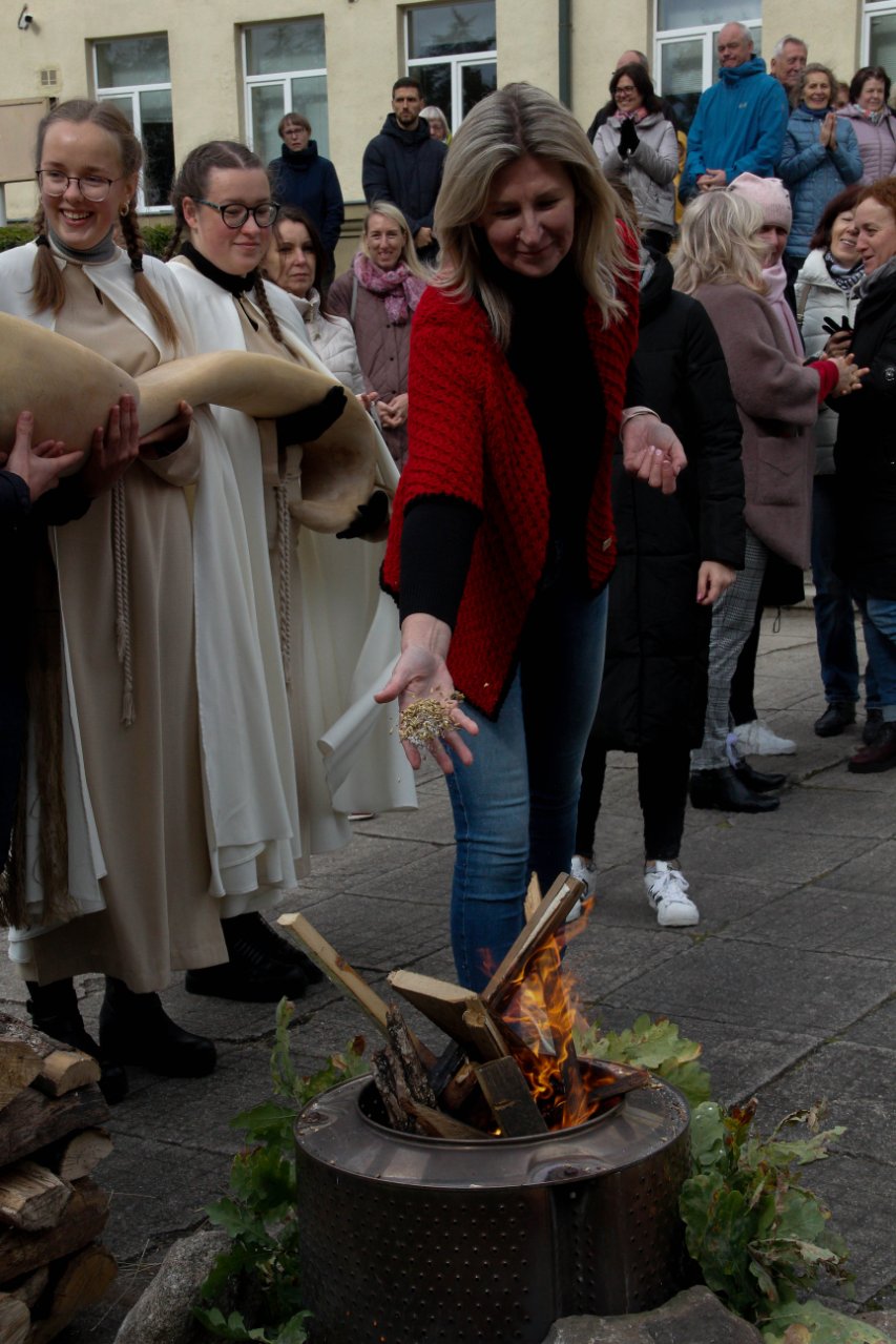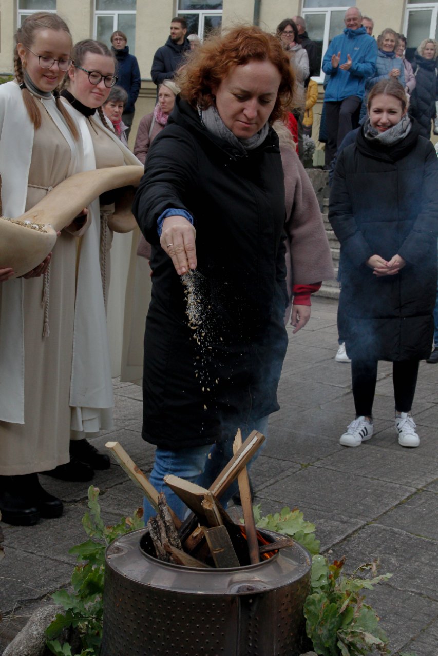 Baltų vienybės dieną išgyvenome bendrystės jausmą Sveikinimo žodį tarė šventės iniciatorė, istorijos mokytoja Gražina Kairiūkštienė. Visos klasės persikūnijo į įvairias baltų gentis, paruošė tradicinių patiekalų. Vaidilutės lydėjo oriai žengiančius prūsus, sėlius, jotvingius, aukštaičius, žemaičius, lietuvius, sūduvius, latgalius, Rytų galindus, skalvius, žiemgalius, kuršius. Kiekvienoje Baltų šventėje buvo uždegama ugnis kaip dievybės simbolis, pas mus iškilmingoms apeigoms vadovavo technologijų mokytojas Egidijus Impolis, pakvietęs direktorę ir klasių auklėtojas tarti palinkėjimą ir dar kaitriau įžiebti ugnį metant į ją saują grūdų ir druskos. Linkėta bendrystės, vienybės, tarpusavio supratimo, gyvenimo čia ir dabar...