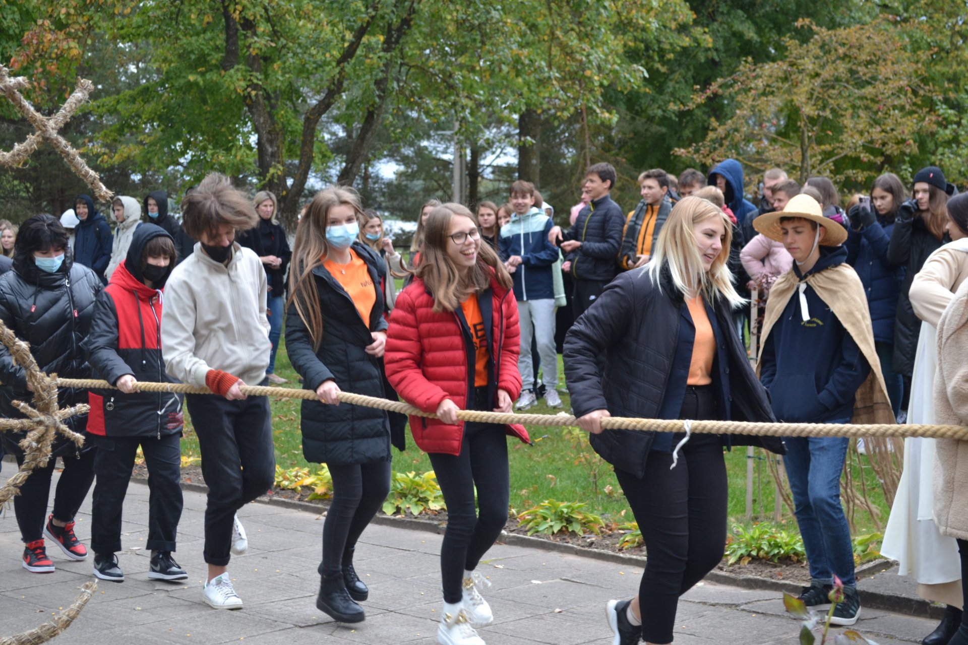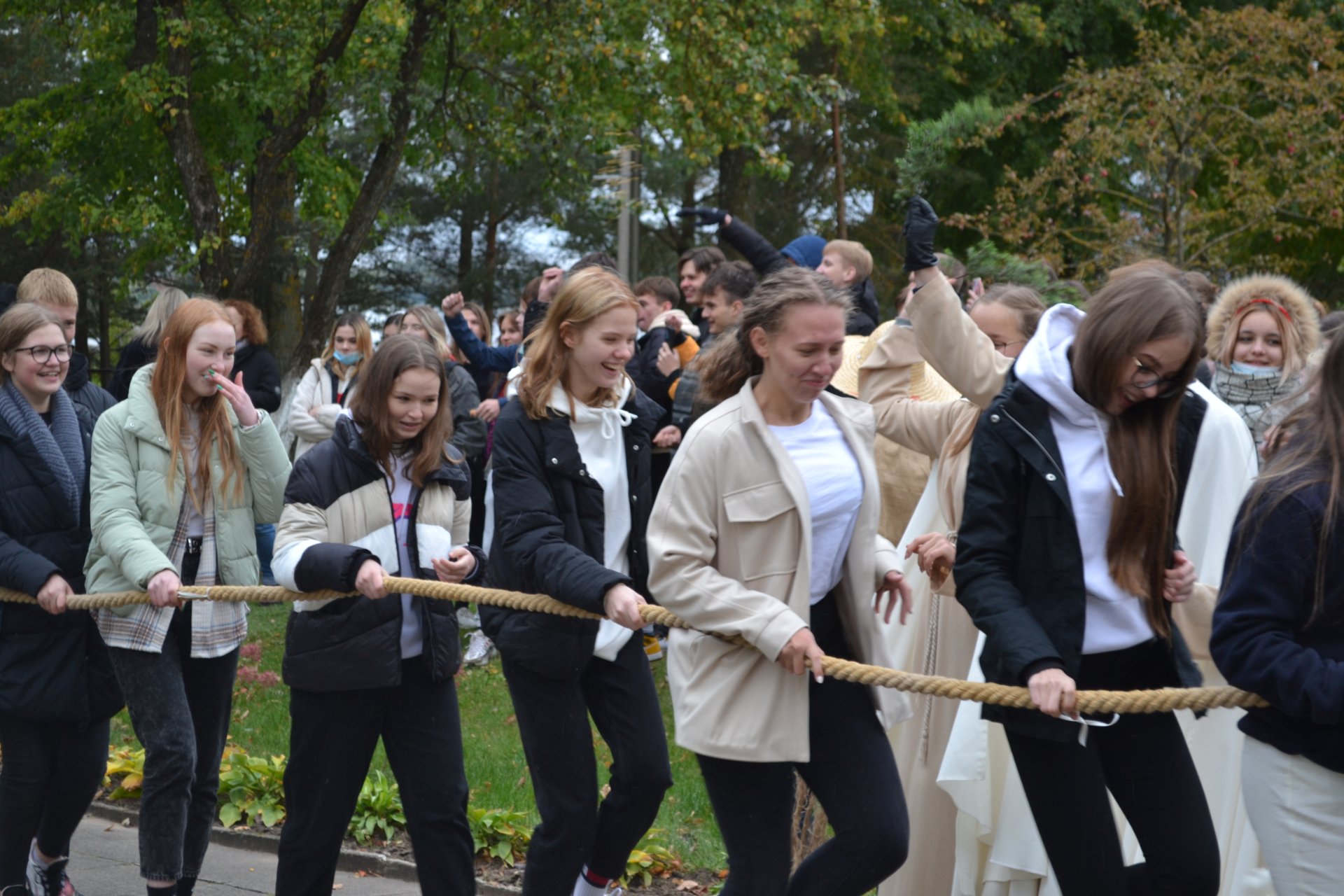 Renginyje buvo daug veiksmo. Pirmokams surengtos baltų papročių kupinos „krikštynos“, po kurių mokiniai jau tikrai įsiliejo į mūsų bendruomenę. Pavėluotas „krikštas“ laukė ir antrokų, nes pernai renginys negalėjo vykti dėl pandemijos. „Pakrikštyta“ ir naujoji gimnazijos direktorė Asta Valuntienė, kuriai reikėjo įveikti ir vieną išbandymą. Priesaikos tekstą skaitė ir gimnazijos vadovei jį įteikė mokinių prezidentė, abiturientė Sandra Jurytė, iš vaidilučių rankų – simbolinė atminimo dovanėlė ir baltų kultūros ženklas, o technologijų mokytojas Egidijus Impolis direktorei užkabino medžio dirbinį, priminsiantį šią dieną. Visi „pakrikštytieji“ buvo apdovanoti atminimo medaliais. Juos technologijų mokytojui Egidijui Impoliui pagaminti padėjo abiturientas Joris Hyovon Vaicekauskas ir IĮ „Laukinis ragas“ direktorius Gražvydas Jokantas. Vėliau prasidėjo genčių žaidynės. Dalyvius traukte traukė žaidimas ripka, kurį žaisti mokė Panevėžio rajono Ėriškių kultūros centro komanda. Gimnazistai galėjo išbandyti įvairias rungtis: šaudymą iš lanko, petankę, smiginį, galynėjimąsi su maišais, futbolą kitaip ir virvės traukimą. Taip pat žaidėjai gurkšnojo arbatą, šildėsi prie laužo. Renginyje skambėjo lietuvių liaudies dainos, užbūrė magiškas Pakruojo kultūros centro muzikanto Gintauto Gvazdausko armonikos ir technologijų mokytojo, tautodailininko Egidijaus Impolio meistriškai valdomų skrabalų skambesys.