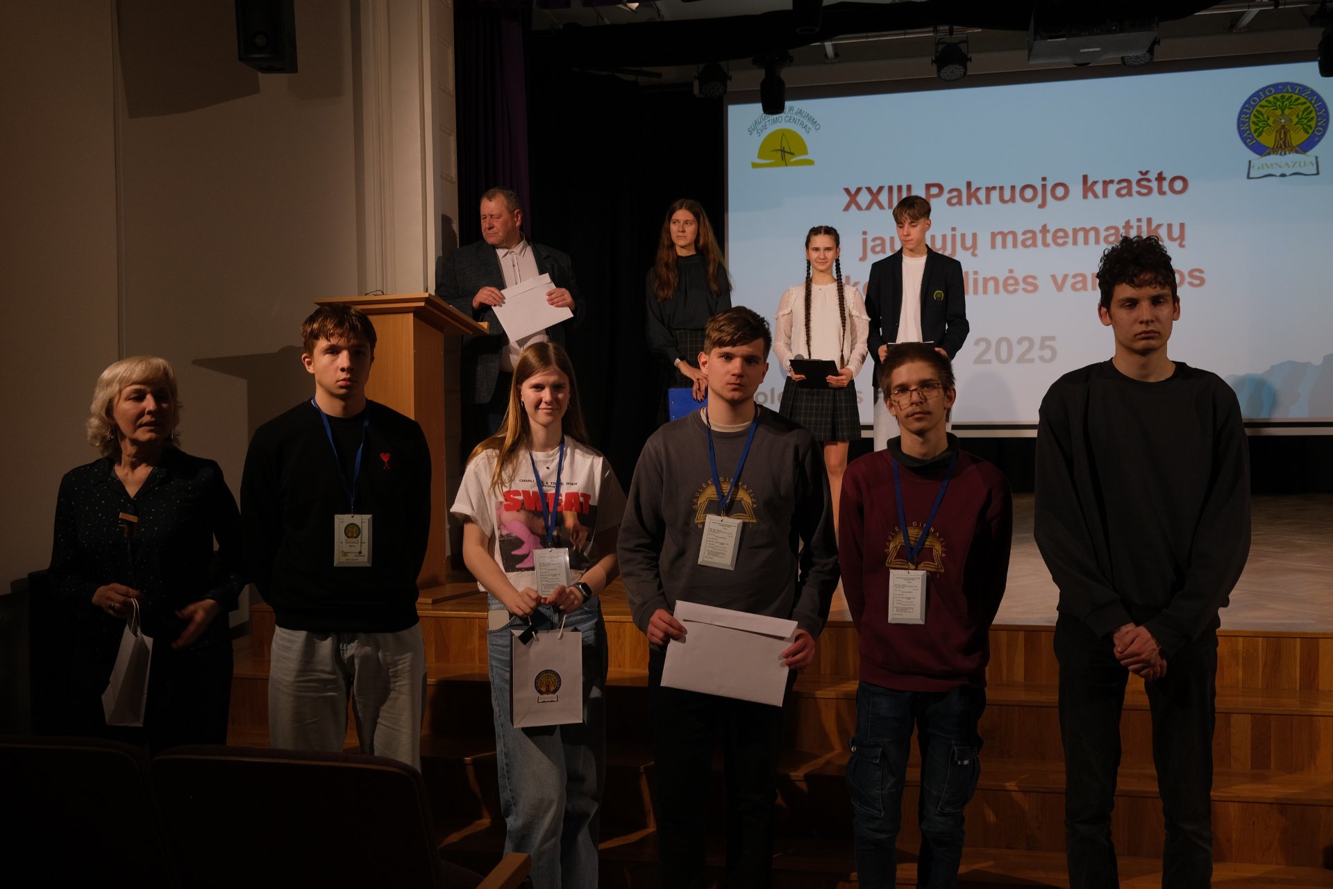 XXIII Pakruojo krašto jaunųjų matematikų komandinių varžybų I-II klasių grupėje I vietos prizą laimėjo ir aukso medaliais pasidabino Klaipėdos ,,Ąžuolyno“ gimnazijos I komanda, II vietos prizas ir sidabras atiteko Vilniaus jėzuitų gimnazijos komandai, III vietos prizas ir bronza - Panevėžio Juozo Balčikonio gimnazijos komandai. III-IV klasių grupėje auksą ir I vietos prizą laimėjo Vilniaus jėzuitų gimnazijos komanda, II vietos prizą ir sidabro medalius iškovojo Klaipėdos ,,Ąžuolyno“ gimnazijos komanda, bronzos medaliai ir III vietos prizas atiteko Alytaus jungtinei komandai.