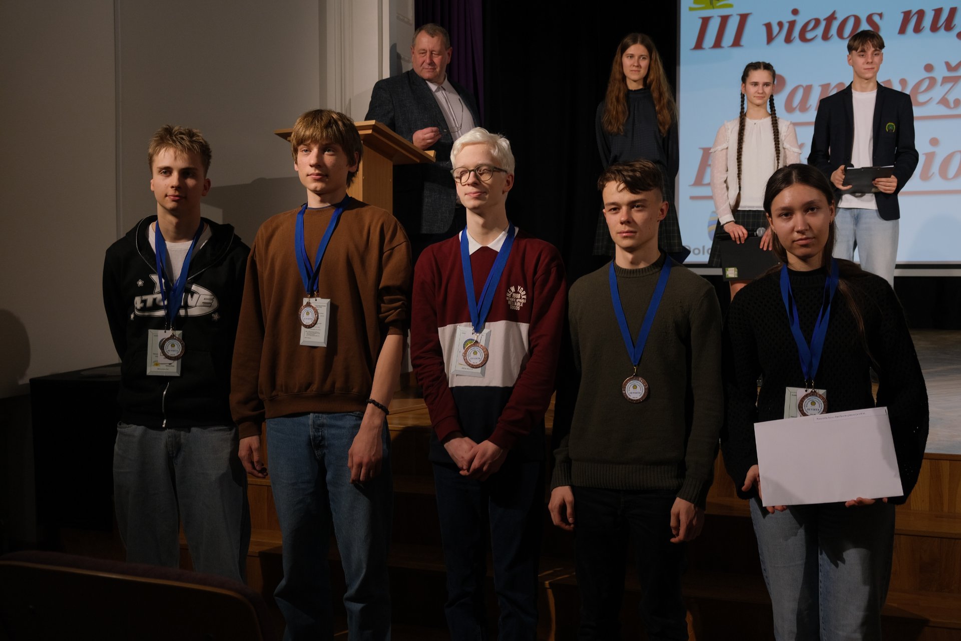 Kovo 27-ąją įvyko laukiamiausias ir didžiausias savaitės renginys MADI 2025. Jo pagrindinė dalis – XXIII Pakruojo krašto jaunųjų matematikų komandinės varžybos, kuriose susirungė 23 komandos iš Panevėžio Juozo Balčikonio, Utenos Adolfo Šapokos, Biržų „Saulės“, Vilniaus jėzuitų, Panevėžio Kazimiero Paltaroko, Pasvalio Petro Vileišio, Joniškio ,,Aušros“, Anykščių Jono Biliūno, Klaipėdos ,,Ąžuolyno“, Alytaus šv. Benedikto, Jotvingių, Adolfo Ramanausko-Vanago, Šiaulių Stasio Šalkauskio ir Pakruojo „Atžalyno“ gimnazijų. Užduotis varžyboms parengė ir komandų darbų vertinimo komisijoms vadovavo Vilniaus universiteto MIF Matematikos instituto direktorius prof. dr. D. Šiaučiūnas ir doc. dr. A. Apynis. Komandas sveikino gimnazijos direktorė Asta Valuntienė. Sėkmės linkėjo Pakruojo švietimo skyriaus vedėja Irena Mažulienė bei Pakruojo suaugusiųjų ir jaunimo švietimo centro direktorė Rima Juozapavičienė.