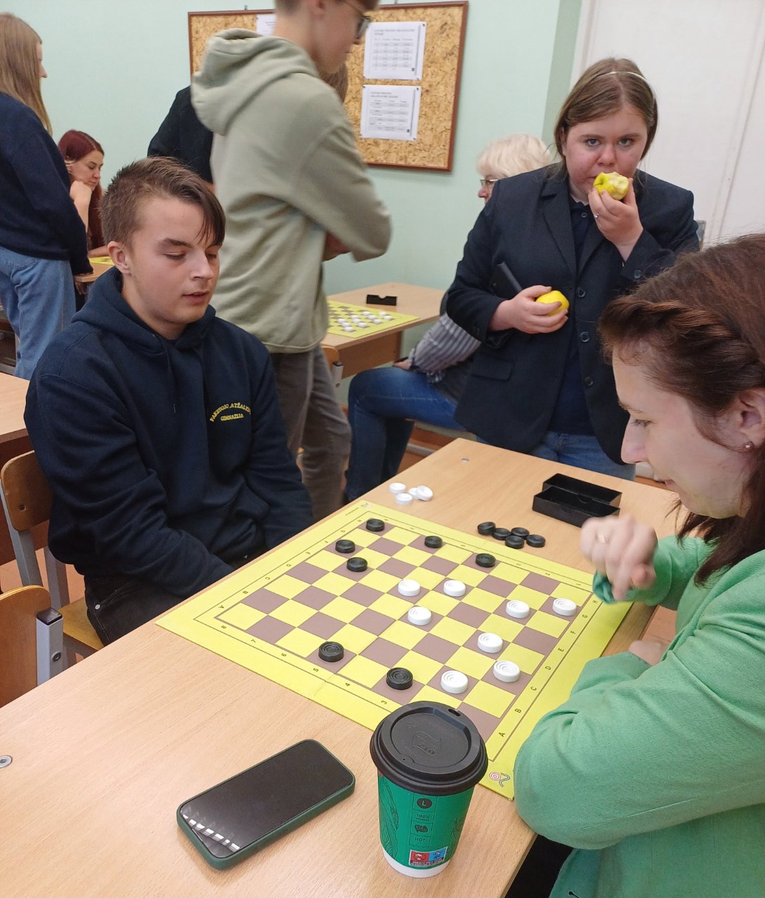 2024 m spalio 1-3 dienomis Pakruojo „Atžalyno“ gimnazijoje vyko kasmetinis mokytojų ir mokinių šaškių turnyras, kuriame dalyvavo 16 mokytojų ir 13 mokinių. Buvo sužaistos 24 šaškių partijos, iš kurių 10 baigėsi lygiosiomis. Gimnazistų nuomone, įdomu išmėginti jėgas su mokytojais, kai yra lygiavertė pozicija, be to, gali bent truputį pasijusti ekspertas. Įspūdžių būta įvairių: vieni norėjo pažiūrėti, kiek mokytojai prisimena šaškių taisykles (pavyzdžiui, Ąžuolas), kiti prisipažino, kad bijojo, bet buvo smalsu, kaip seksis (taip atrodė Dominykui, Mantui, Vakariui), tretiems labai patiko ir jie norėtų dar kartą sužaisti (be abejo, Tadas, Matas, Rokas). Andriui buvo įdomu, nes privertė pamąstyti dėl kiekvieno ėjimo, Vytui – smagu, nes mokytojai juokavo, Pauliui patiko, nes tai lavina protą. Džiaugiuosi Rusne ir Urte, kurios jau antrus metus varžosi prie languotos lentos. Sulaukėme ir keliolikos žiūrovų, kurie palaikė klasės draugus patarimais ar padrąsinimais. Jie pabijojo sėstis prie stalo, bet emocingai reagavo į žaidimo eigą. Visi gimnazistai teigė, kad tai buvo smagi patirtis ir kad gimnazijoje galėtų būti daugiau tokių varžybų.