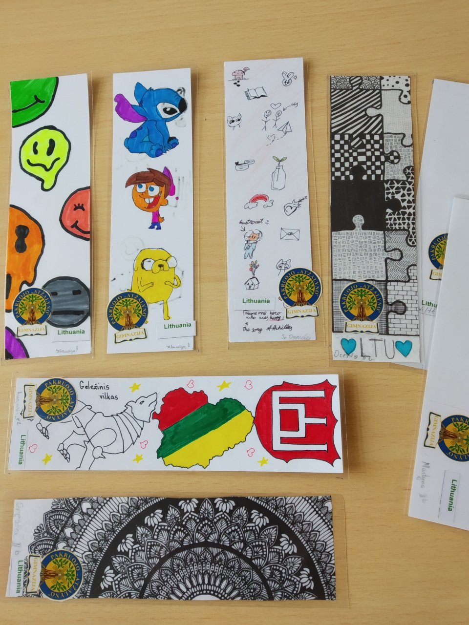 Trečius metus iš eilės mūsų gimnazijos biblioteka dalyvauja tarptautiniame knygų skirtukų mainų projekte „Bookmark Exchange Project“. Gimnazistai kuria skirtukus ir jais keičiasi su kitų pasaulio šalių mokymo įstaigų mokiniais. Praeitais metais darbeliai pasiekė Vengrijos ir Kroatijos mokinius. Šiais metais mūsų gimnazijos partnerė Delio pasaulinė viešoji mokykla Ludhianoje (Delhi World Public School Ludhiana).