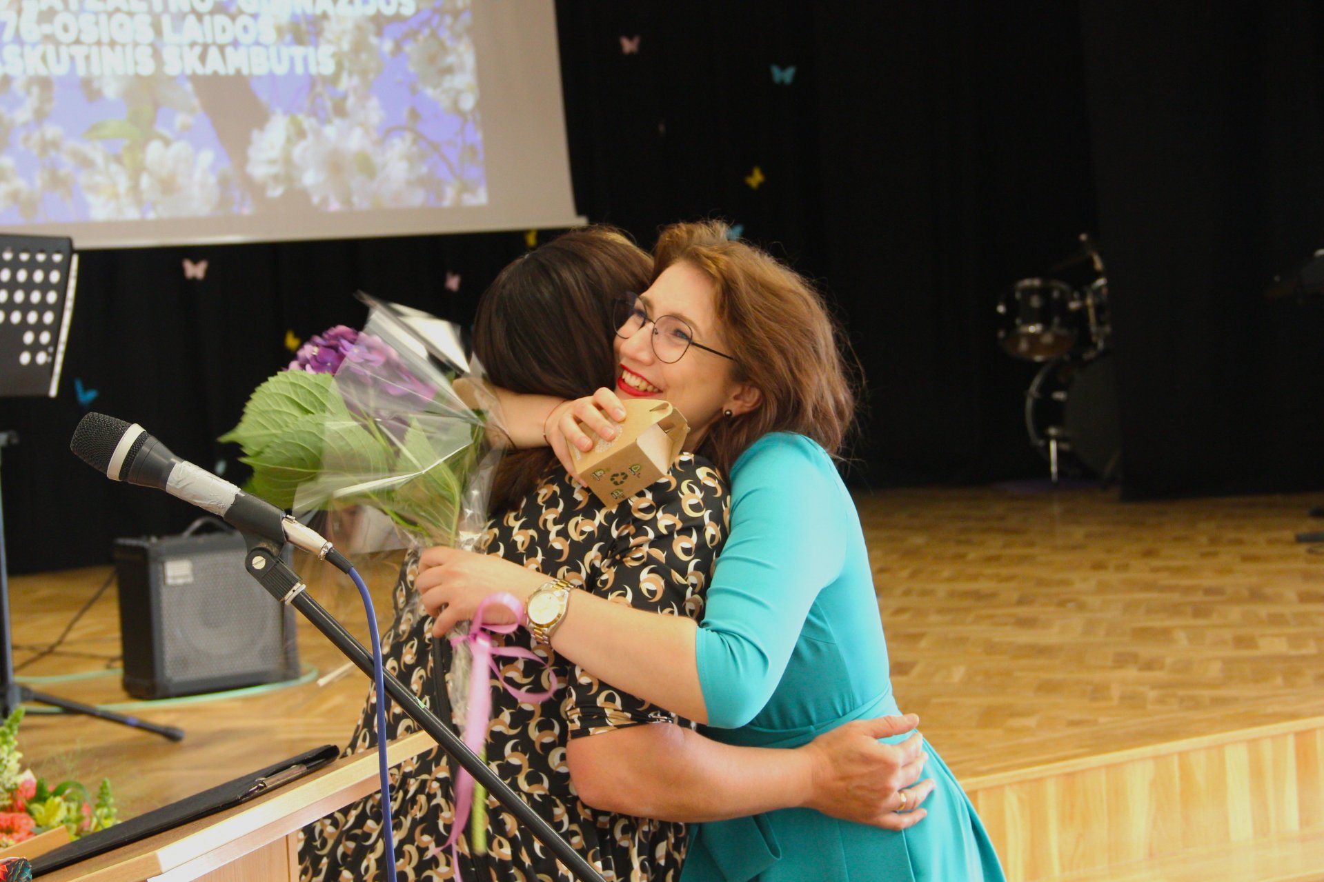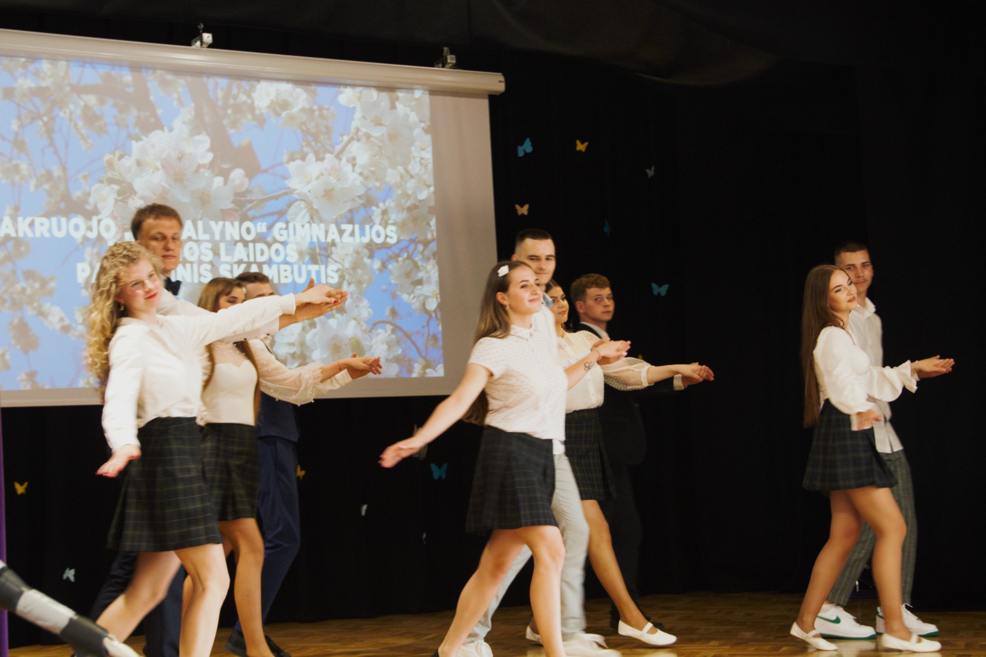 Renginyje šios emocijos tik dar kartą sustiprėjo, kai ketvirtokams kūrinius atliko grupės „Code A“, „Miražas“, Juozo Pakalnio menų mokyklos vaikinų ansamblis ir merginų tercetas. Direktorė Asta Valuntienė nuoširdžiai didžiavosi abiturientais, linkėjo jiems drąsiai priimti sprendimus, sėkmingai laikyti brandos ir gyvenimo egzaminus. Jautriai sveikino ir pirmosios 76-osios laidos abiturientų mokytojos bei auklėtojos. Sujaudino abituriento Vincento Leko atliktas kūrinys fortepijonu ir ketvirtokų valso šokis. Direktoriaus pavaduotoja ugdymui Rasa Augustinaitienė padėkojo abiturientams už aktyvią veiklą, puikius olimpiadų, konkursų rezultatus ir direktorė įteikė padėkos raštus. Trečiokų kurtas vaizdo įrašas priminė abiturientams jų svarbias, gražias ir juokingas gyvenimo akimirkas, kurios ilgai dar išliks jų širdyse. Abiturientai taip pat tarė savo žodį, padėkojo visiems mokyklos darbuotojams, mokytojams, kuratorei, tėveliams ir perdavė raktą trečiokams. Mielieji 76-osios laidos abiturientai, Jūs šioje gimnazijoje palikote pėdsaką, kurio mes nepamiršime. Gaila, bet Paskutinis skambutis Jus pakvietė į platųjį pasaulį, tegul jame bus įdomu ir smagu.
