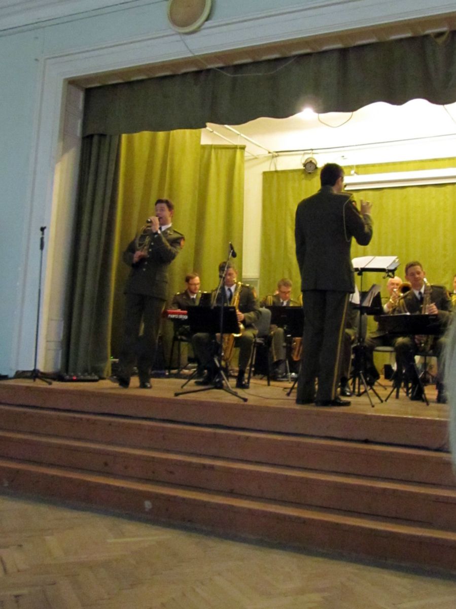 Krašto apsaugos savanorių pajėgų bigbendas koncertuoja Lietuvoje ir užsienyje - puoselėja kultūrines vertybes, kelia Lietuvos kariuomenės prestižą. Įsimintina kolektyvui išvyka į Afganistaną - ten koncertavo misiją atliekantiems lietuvių kariams. Surengti koncertą gimnazijoje nuspręsta neatsitiktinai. Bigbendo kolektyve garso operatoriumi dirba buvęs mūsų gimnazijos mokinys Dainius Kazilionis, mokytojos Gražinos Kairiūkštienės auklėtinis. Maloniai visus prieš koncertą nuteikė šilta buvusios auklėtojos ir auklėtinio susitikimo akimirka. Koncerte skambėjo įvairūs kūriniai, po kurių aidėjo garsūs mokinių plojimai. Nuoširdumu sužavėjo solistas Jurgis Brūzga, kurio paskatinta visa salė atsistojusi atliko Marijono Mikutavičiaus dainą „Aš tikrai myliu Lietuvą“.