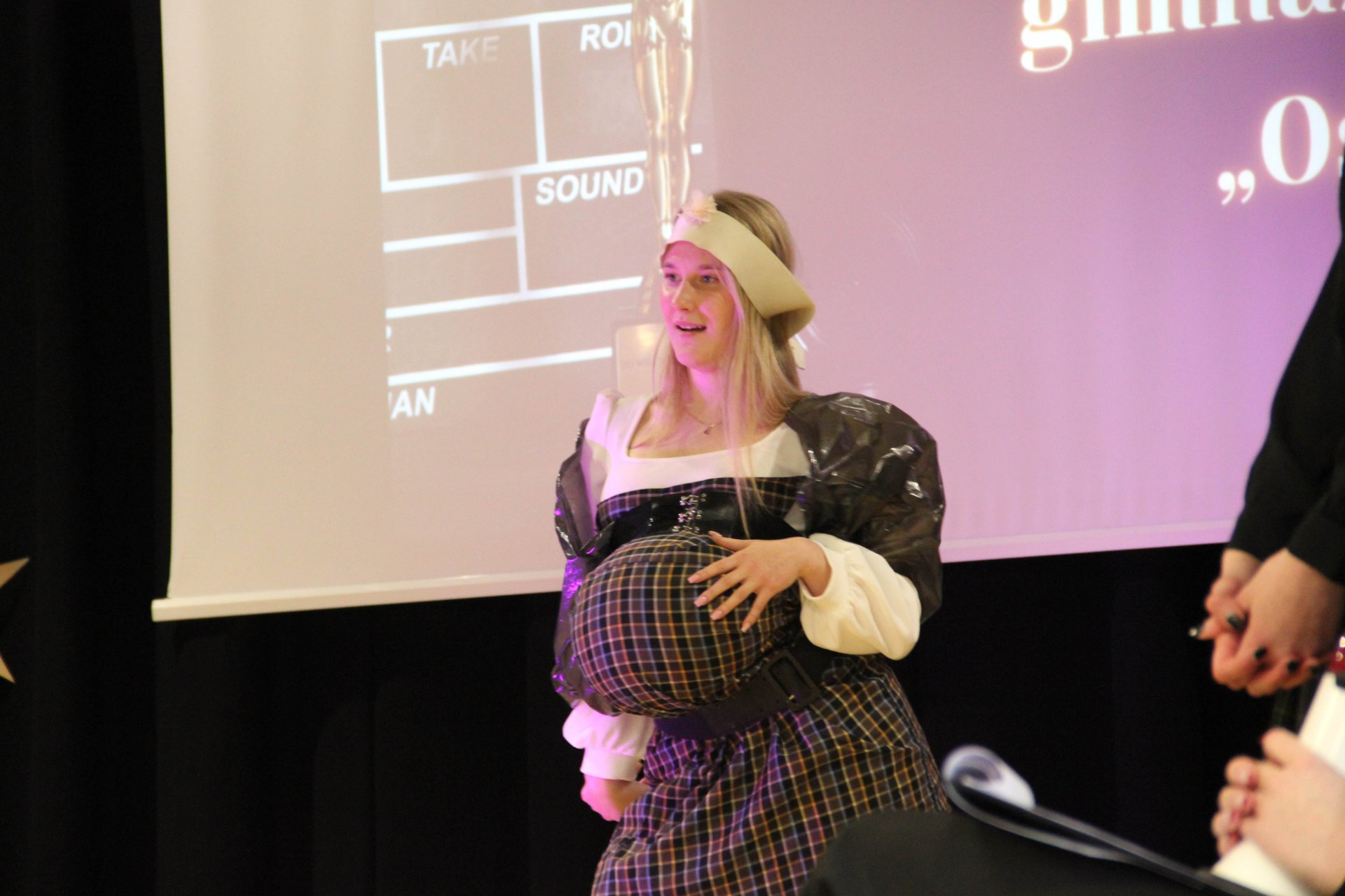 Abiturientams ir jų auklėtojoms buvo įteikta dešimt „Oskarų“ už įvairias nominacijas, pavyzdžiui, „Metų klasės siela“, „Geriausiai savo mokinius pažįstanti auklėtoja“, „Metų smegenys“, „Metų n raidžių puokštė“. Renginyje netrūko ir užduočių. Auklėtojos turėjo atpažinti savo mokinius matydamos tik dalį mokinio nuotraukos. Abiturientai tapo stilistais bei dizaineriais ir iš duotų medžiagų kūrė aprangos stilių, taip pat turėjo suvaidinti įvairių filmų trumpas ištraukas, atpažinti Holivudo aktorius vaikystėje ir atspėti dirbtinio intelekto sukurtas mokytojų nuotraukas. Muzikinius kūrinius dovanojo instrumentinis ansamblis „Ukulėliai“ (muzikos mokytoja Vaiva Klupšienė), abiturientė Inesa Skridulytė ir pirmokė gimnazistė Martyna Jurevičiūtė. Už linkėjimus, padrąsinimą abiturientams žengti likusiu šimto dienų keliu šioje mokykloje dėkojame direktorei, auklėtojoms, ir mokinių prezidentei Gretai Gudaitei.
