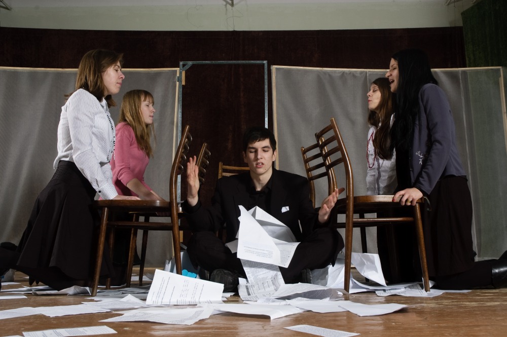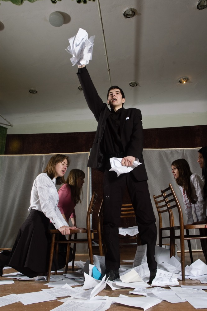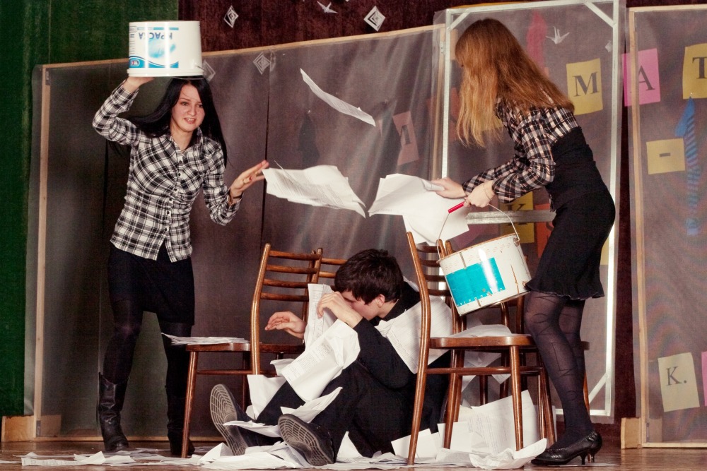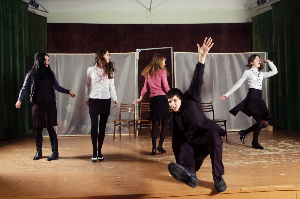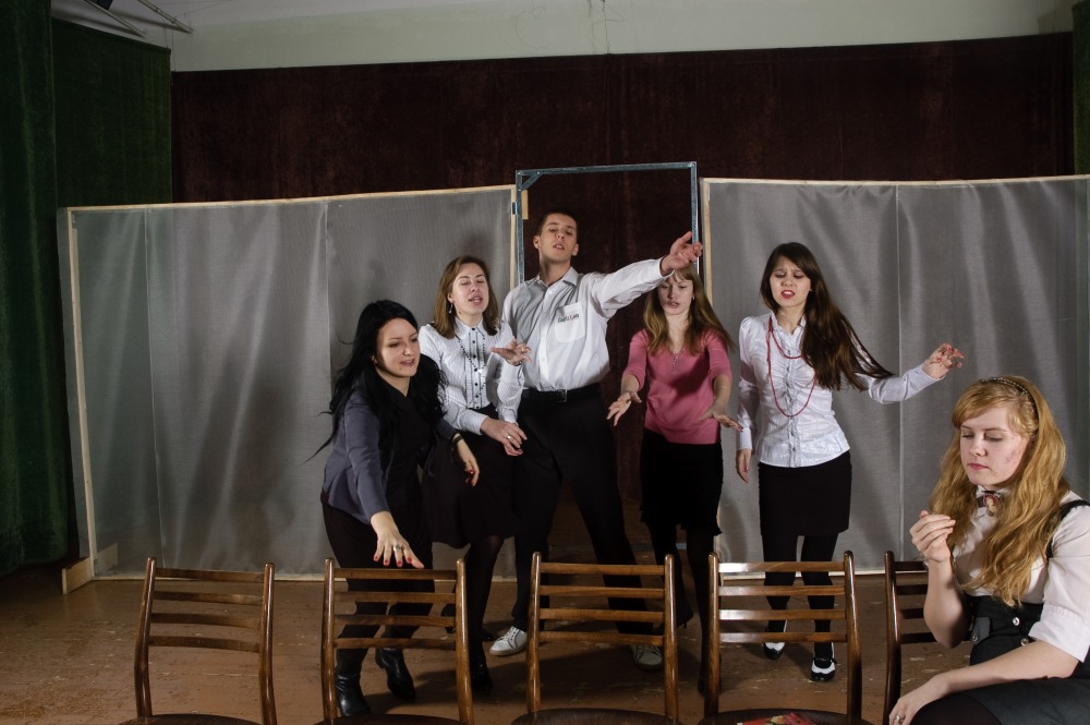 Spektaklio draugai: Mindaugas, Jurgita, Gvidas.