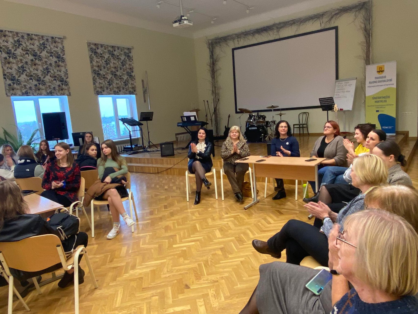 Po 7 pamokų visi susirinko į posėdžių ir konferencijų salę pasidalyti įspūdžiais. Direktorė Asta Valuntienė padėkojo abiturienei „direktorei“ Austėjai Mališevičiūtei ir jos komandai, įteikė atminimo dovanėles. Ketvirtokai pastebėjo, jog didžioji dalis gimnazistų jų klausė, noriai atliko užduotis. Abiturientams ačiū tarė ir jų kuratorė Inesa Tamulionytė-Poškauskienė, kuri džiaugėsi sėkminga bei turininga diena.