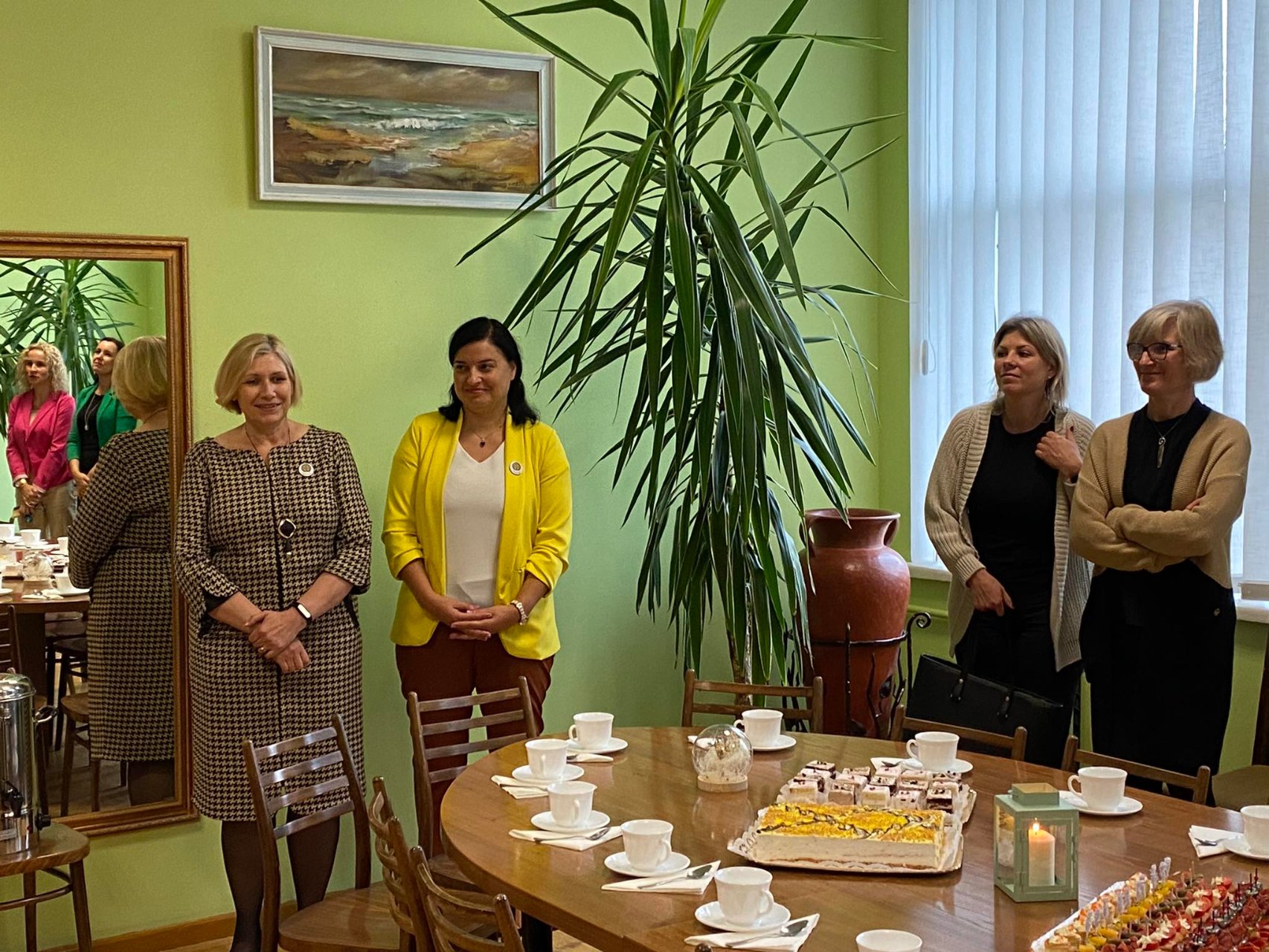 Po trijų pamokų mūsų mylimi pedagogai buvo kviečiami į mokytojų kambarį - jų laukė vaišės ir „zuikiai“, kurie įteikė nuotraukas.